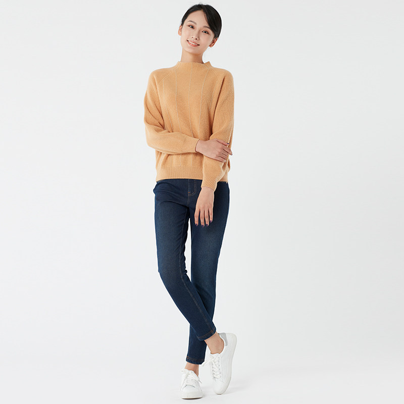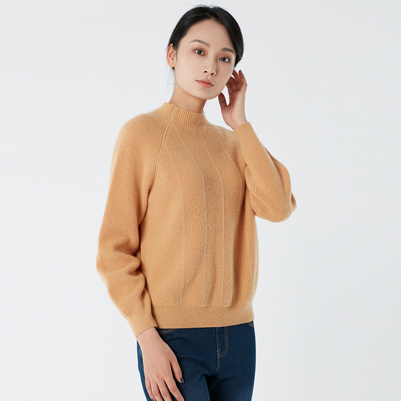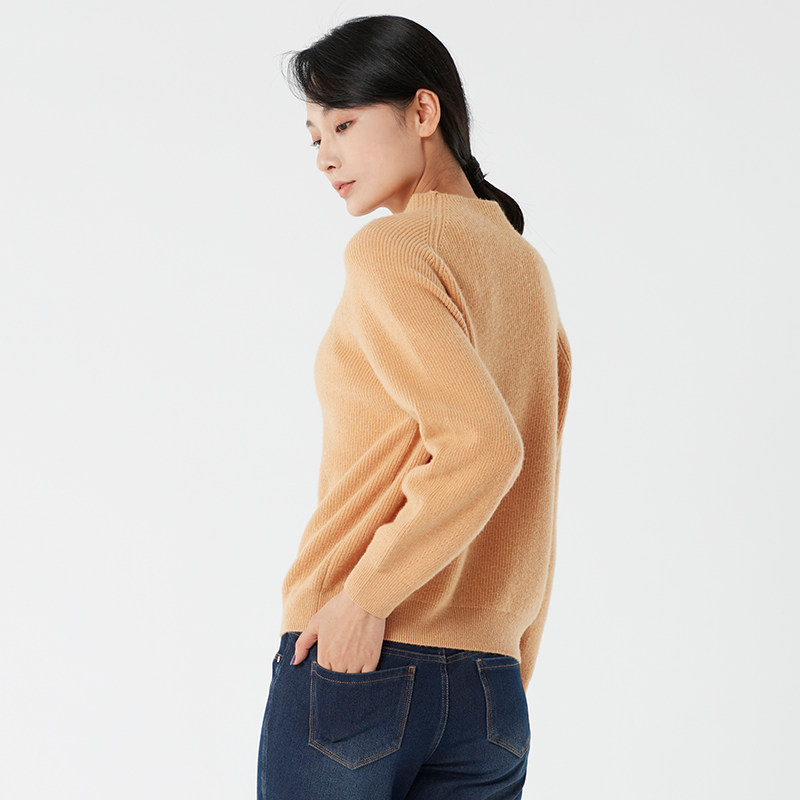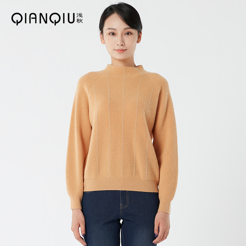 浅秋 Шерстяной демисезонный трикотажный базовый свитер, высокий воротник, облегающий крой