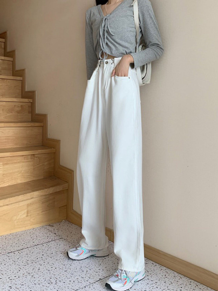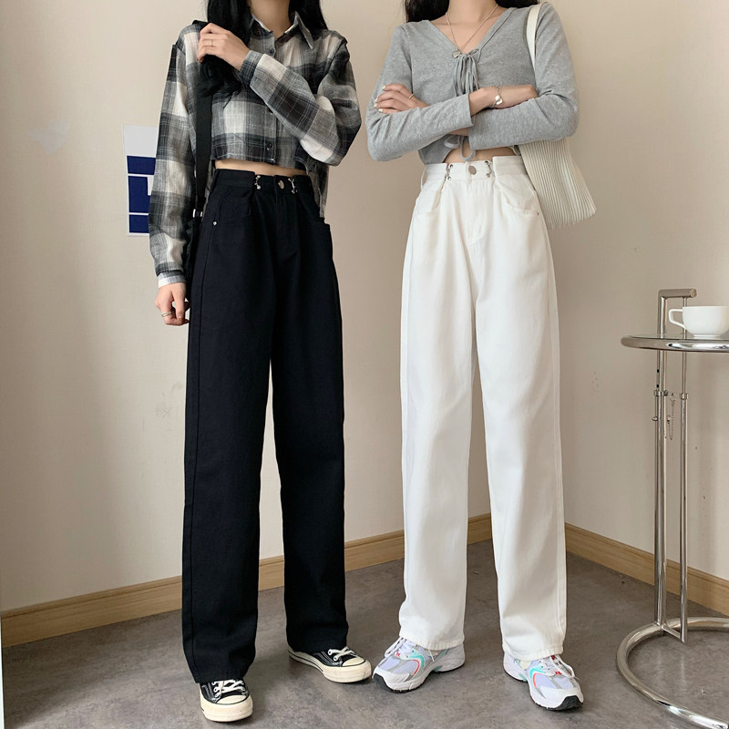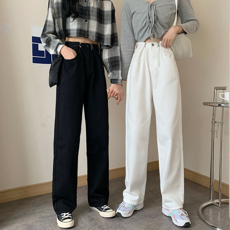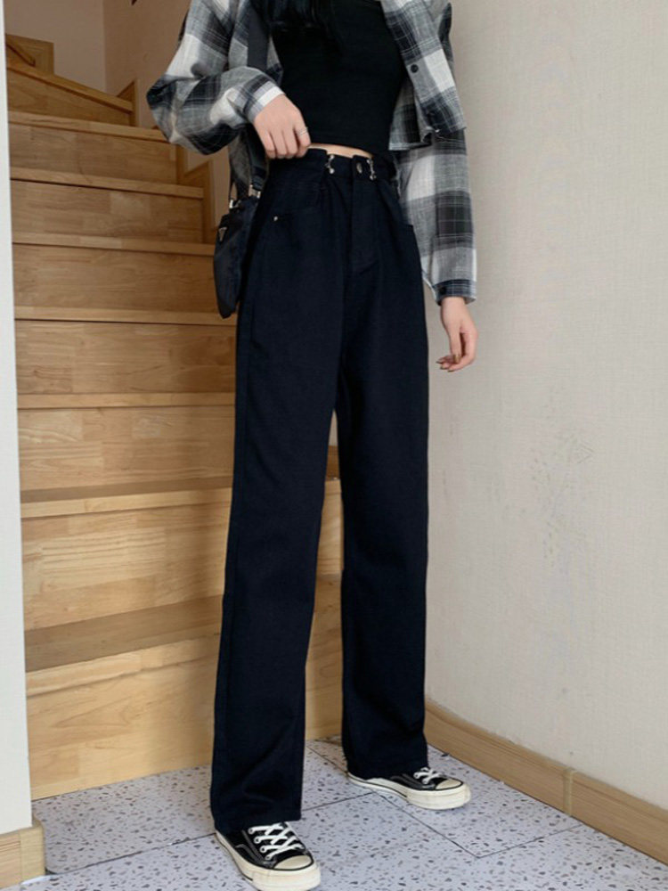 Джинсы, демисезонные осенние штаны для школьников и студентов, коллекция 2023, высокая талия, свободный прямой крой, стройный силуэт