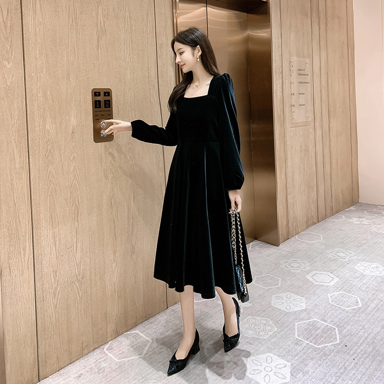 Весеннее бархатное длинное платье, по фигуре, квадратный вырез, популярно в интернете, большой размер
