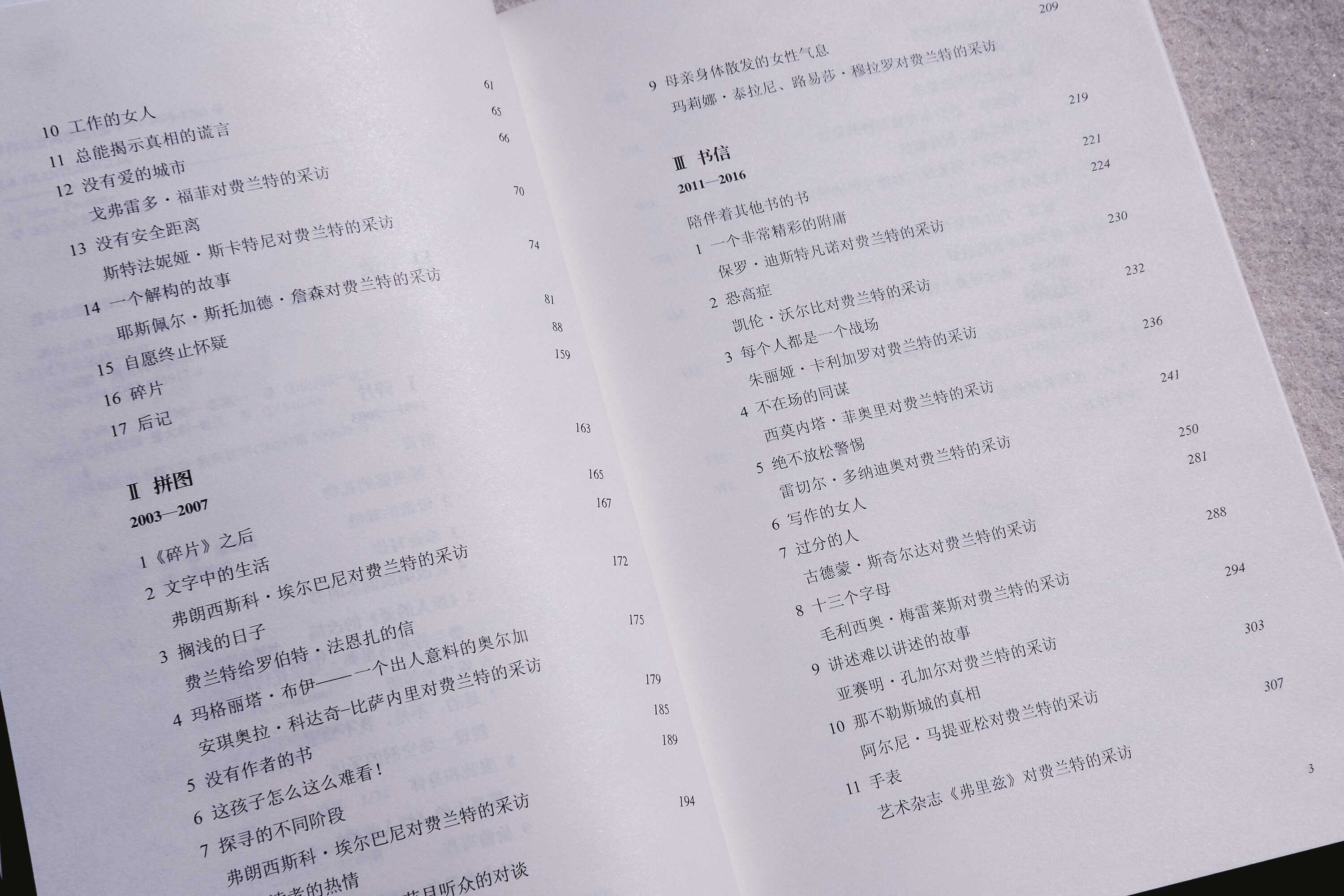 Книга разделена на три серии в соответствии с возрастом: часть D“—2003&Rdquo;“—2007&Rdquo;“—2016”“ Четвертый терминал Неаполя&Некоторые письменные интервью, принятые писателем с момента публики, были опубликованы.