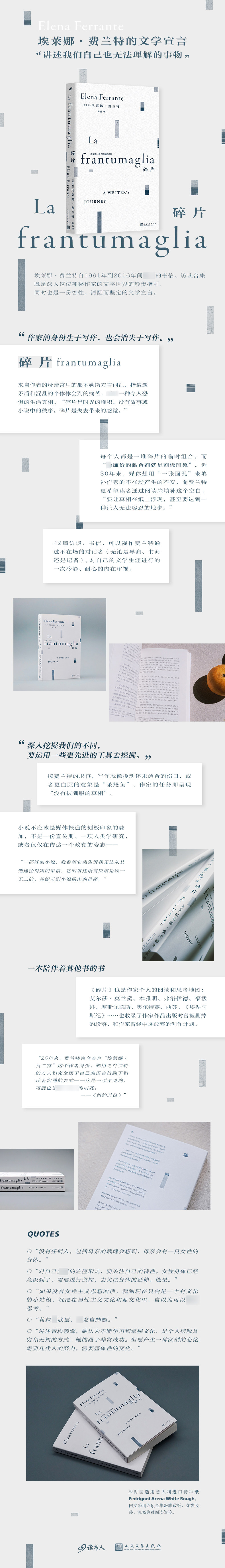 «Фрагмент» (2016) - итальянский писатель Елена&Middot;Писатель раскрыл свое исследование стиля письма и темы в книге и рассмотрел самостоятельные и прорывы, которые он испытал.«Фрагмент» - это не только руководство литературного SJ Ferrant, но и интеллектуальное, четкое и твердое литературное декларацию.