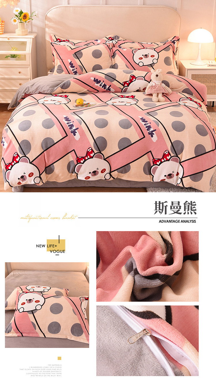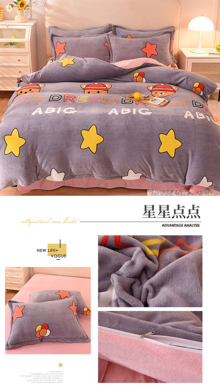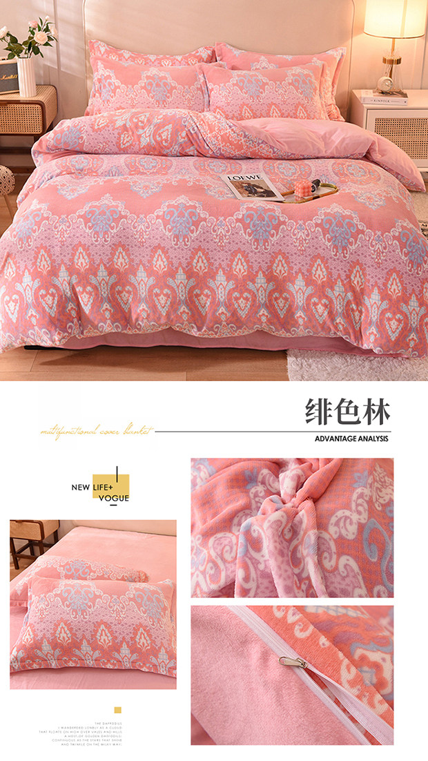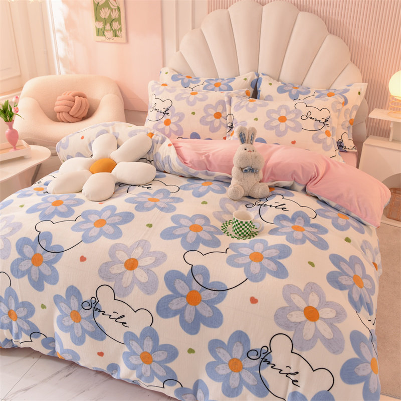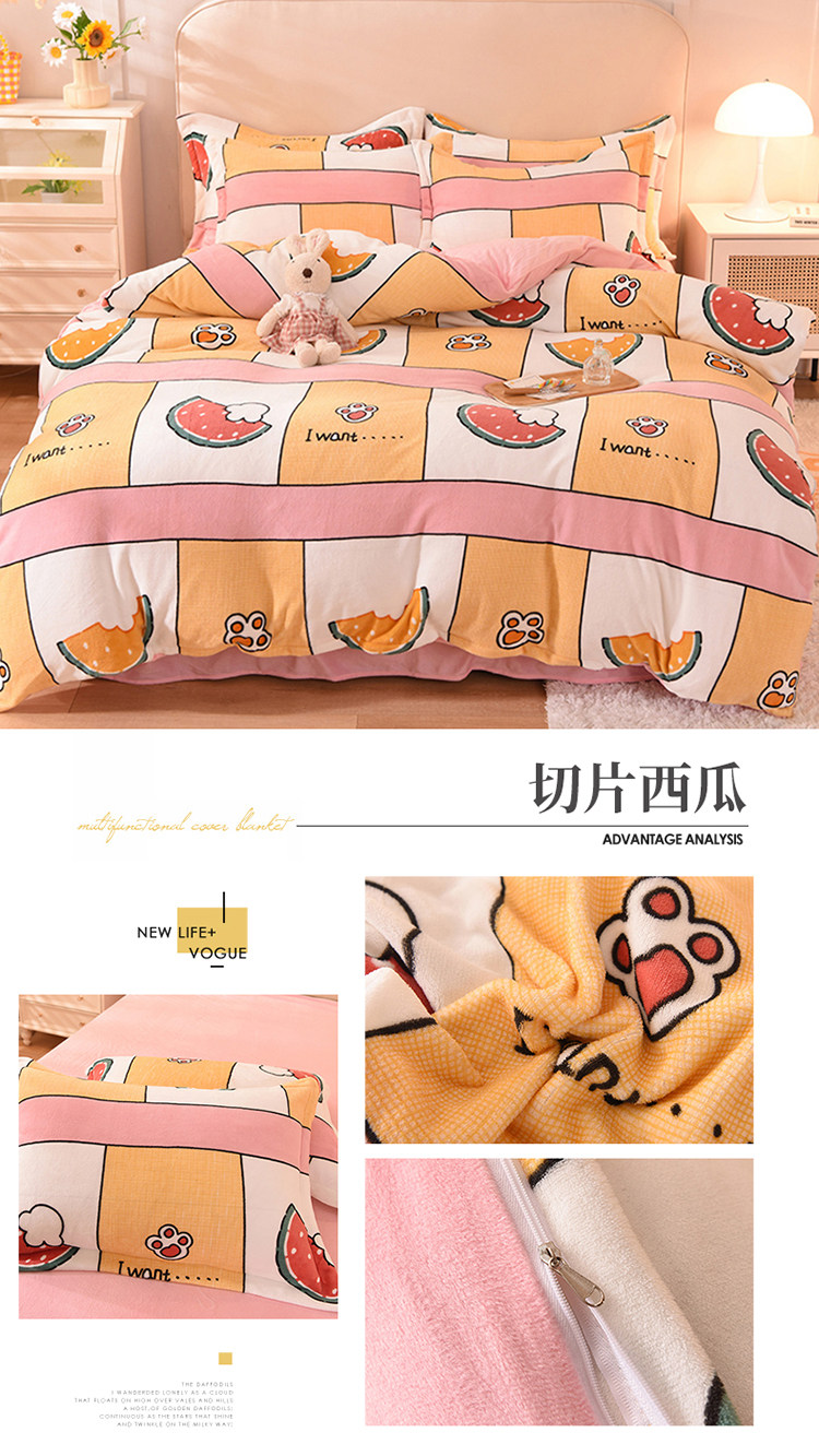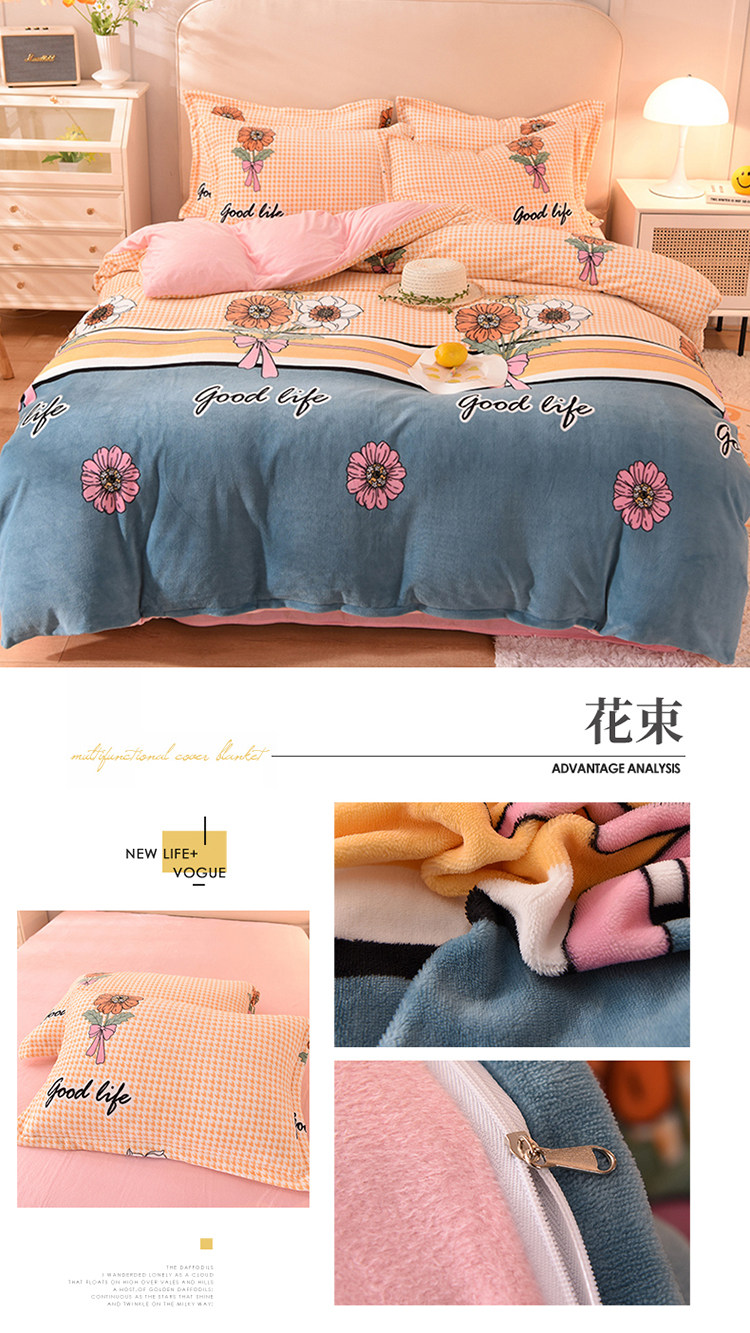 Демисезонный двусторонний комплект, фланелевая коралловая простыня, покрывало, 4 предмета