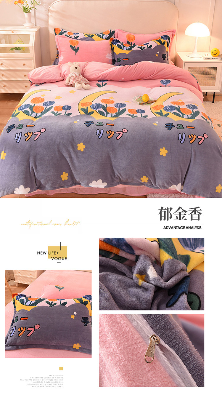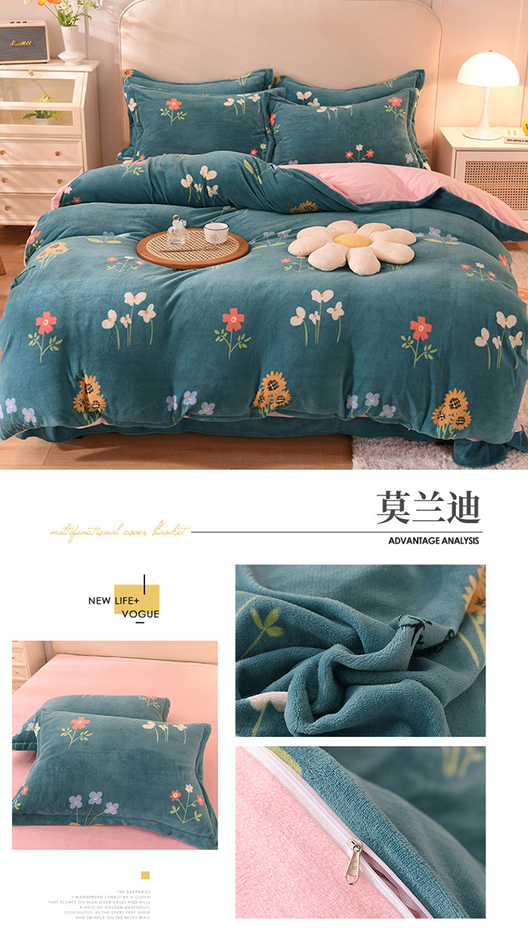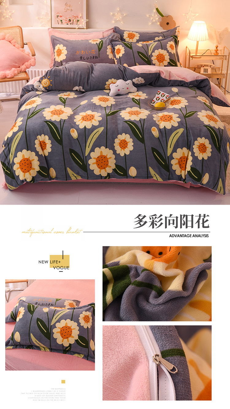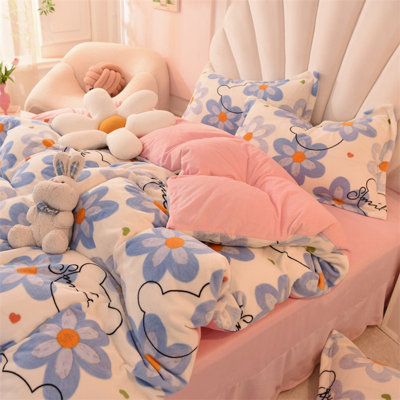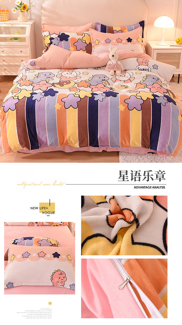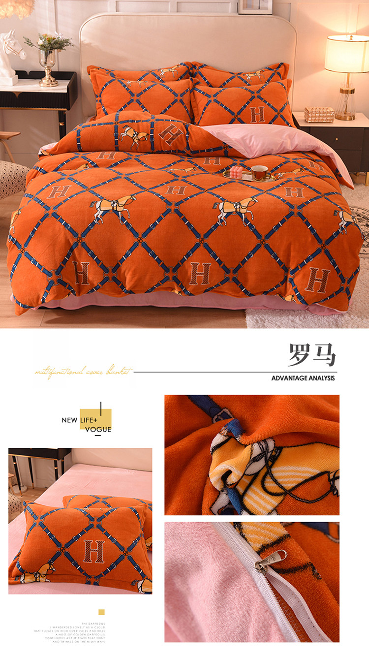 Демисезонный двусторонний комплект, фланелевая коралловая простыня, покрывало, 4 предмета