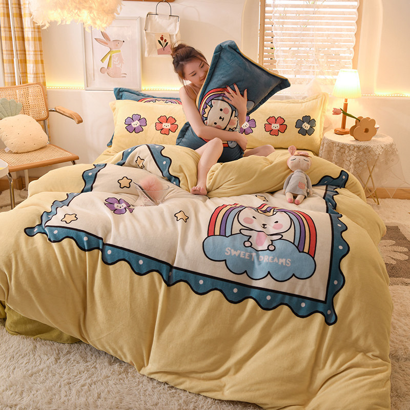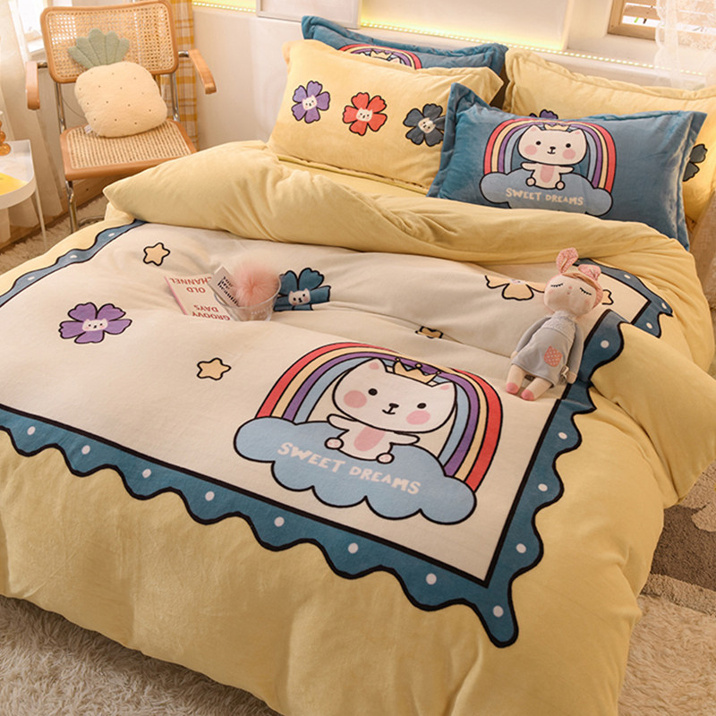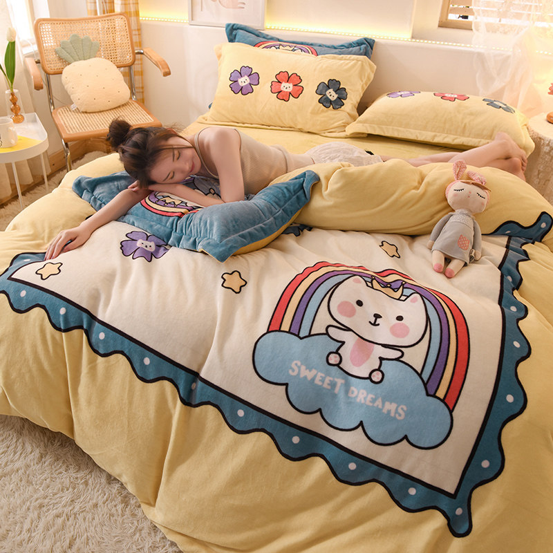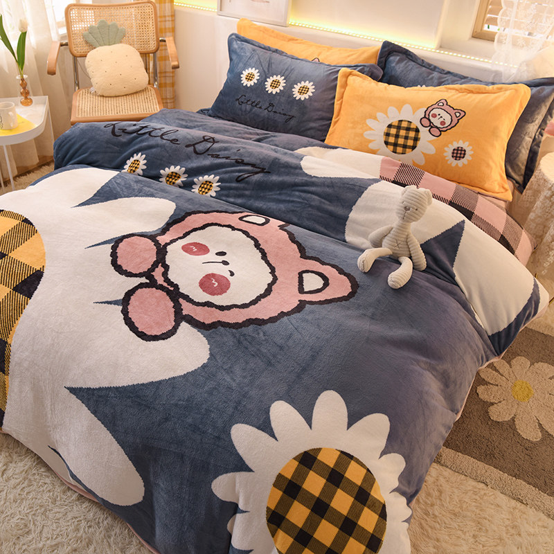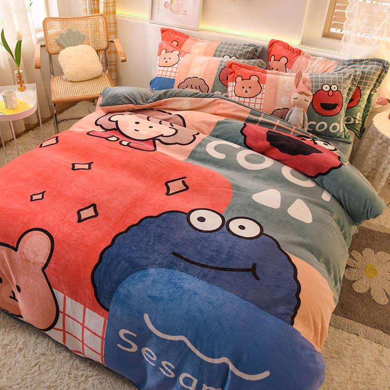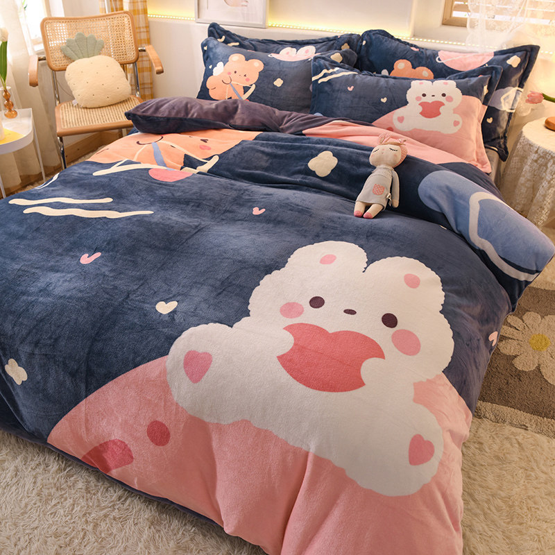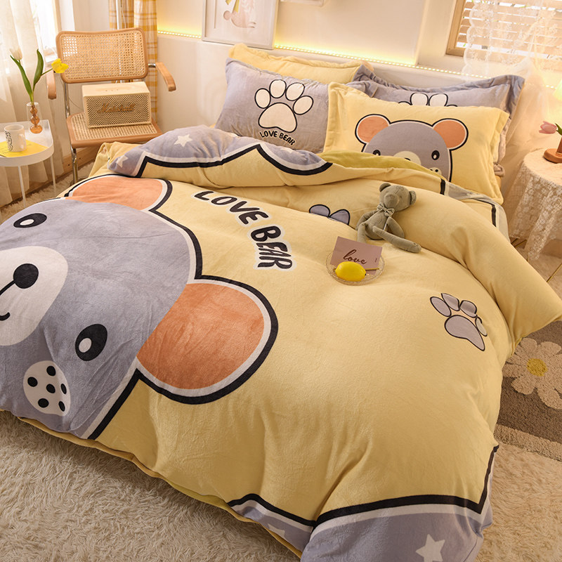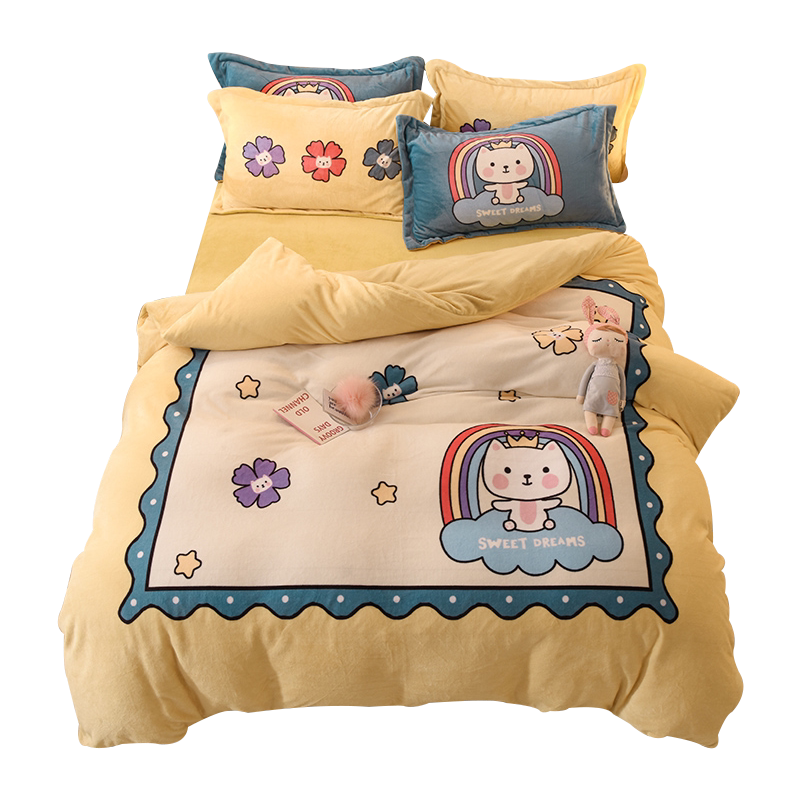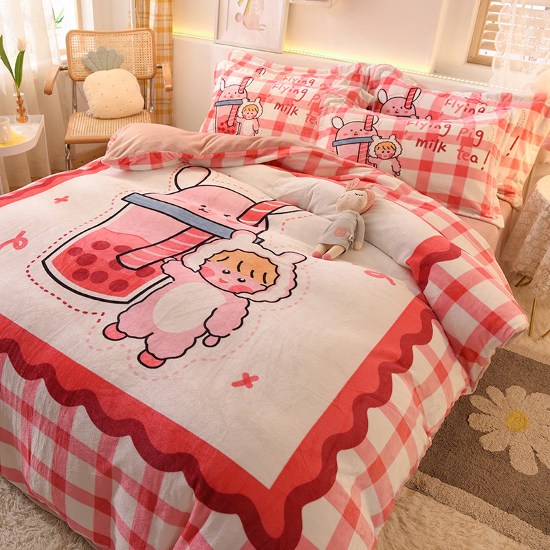 Зимний коралловый фланелевый замшевый комплект, двусторонная утепленная простыня, 4 предмета, 3 предмета