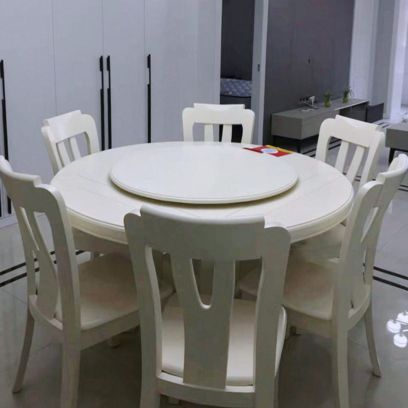 Пасторальная слоновая кость белый сплошной древесина Обеденный столик и стул Комбинированный современный квадратный стол, большой круглый стол, 12 человек телескопический круглый обеденный стол