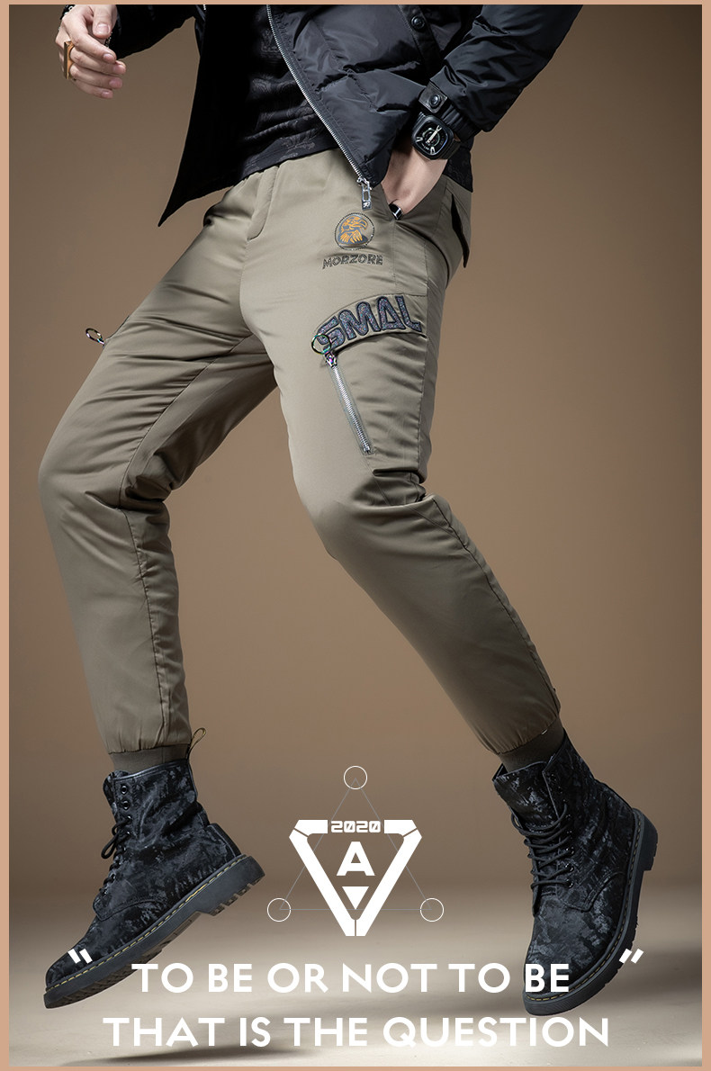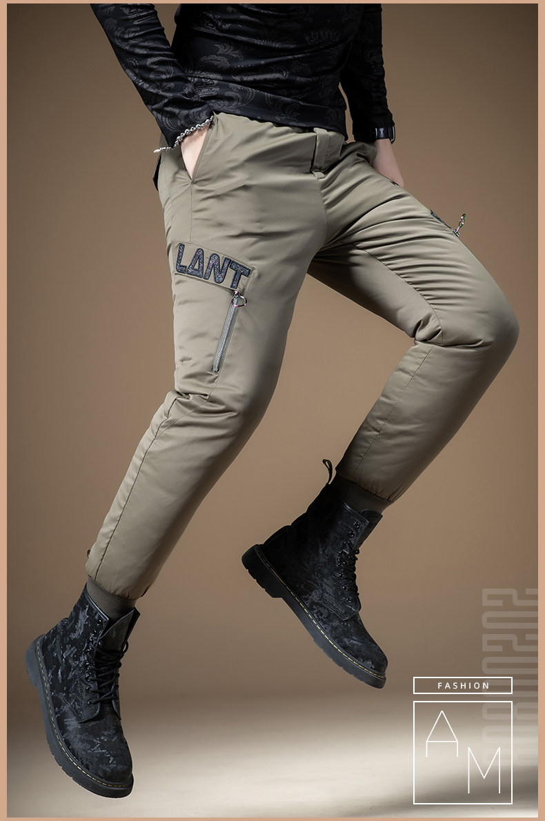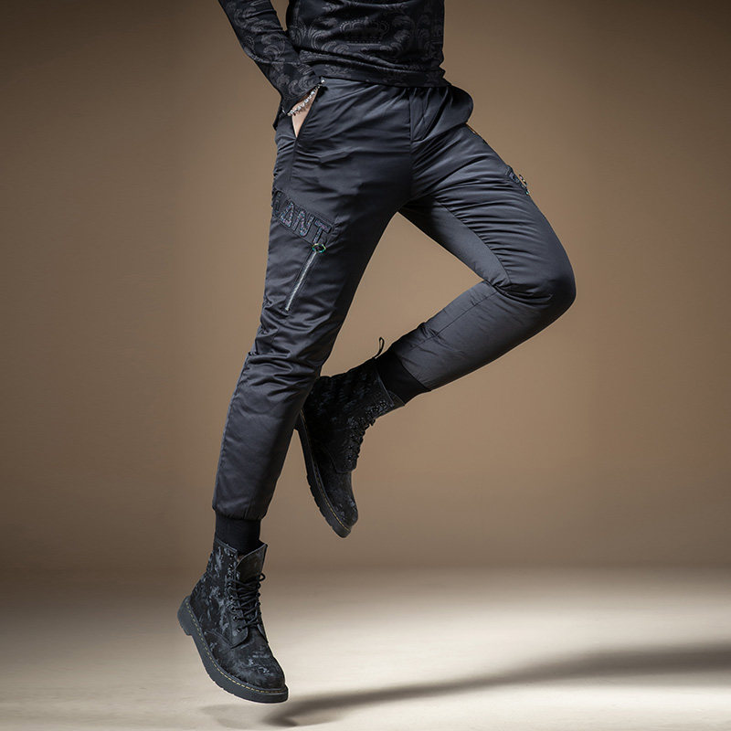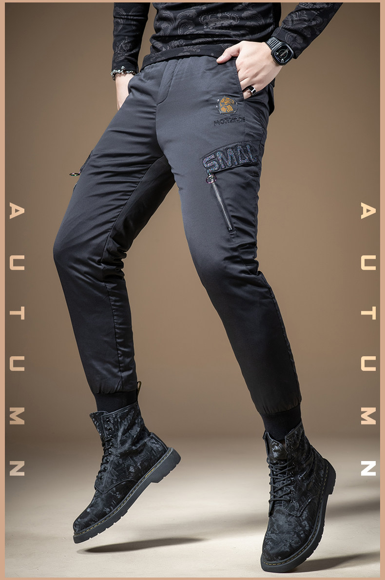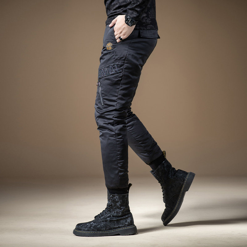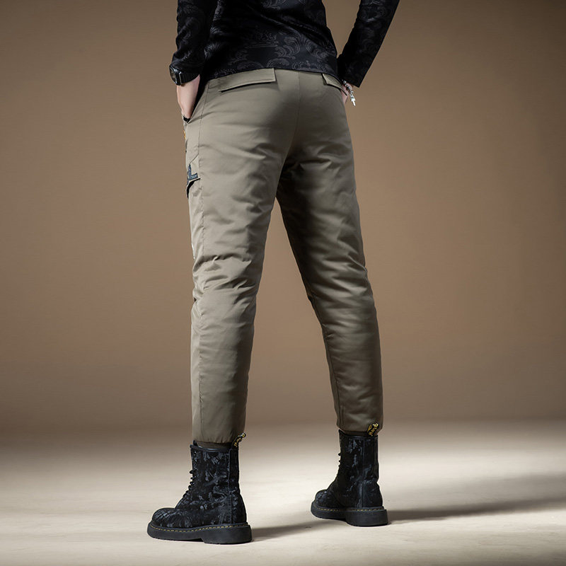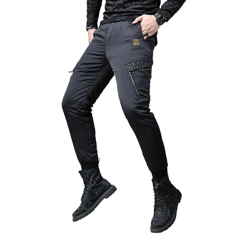 Мужские зимние штаны с молнией с пухом, увеличенная толщина