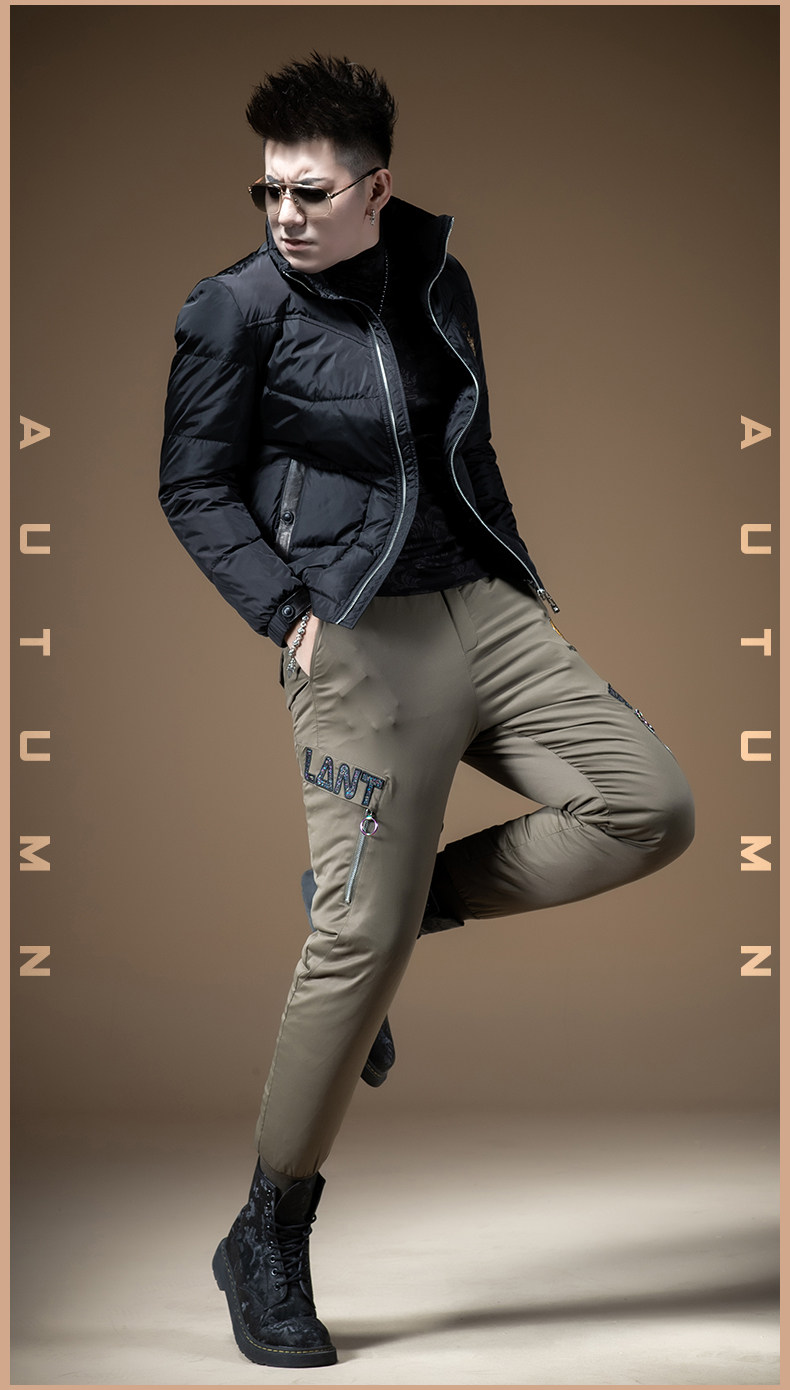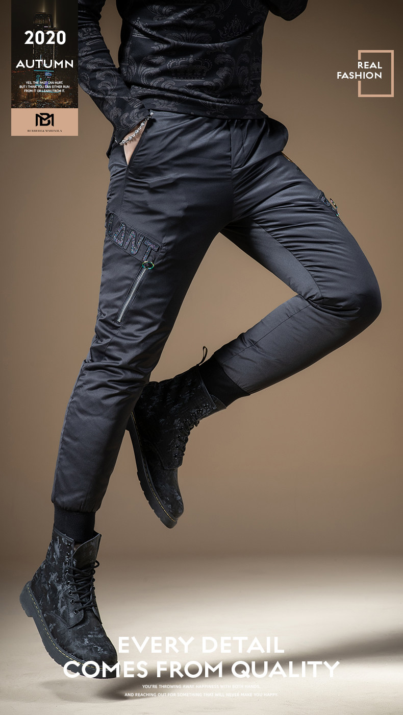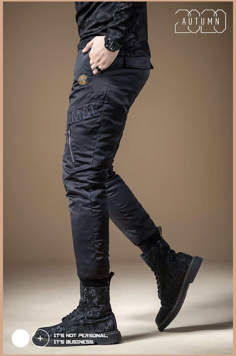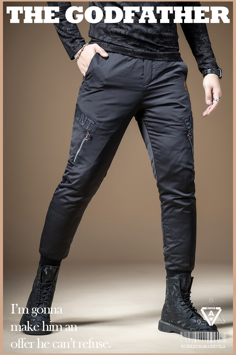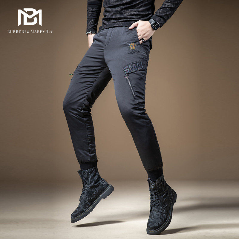 Мужские зимние штаны с молнией с пухом, увеличенная толщина