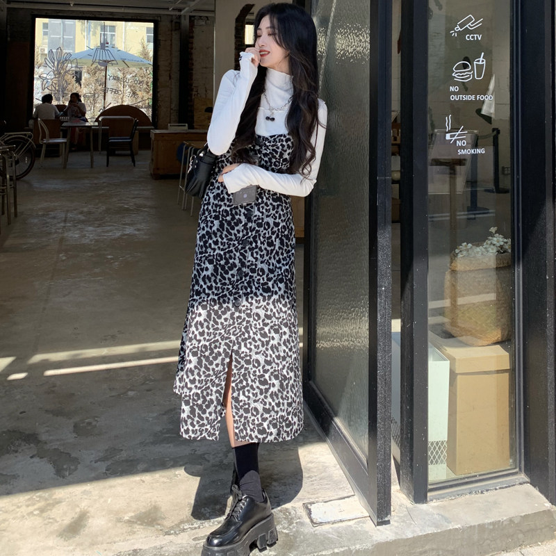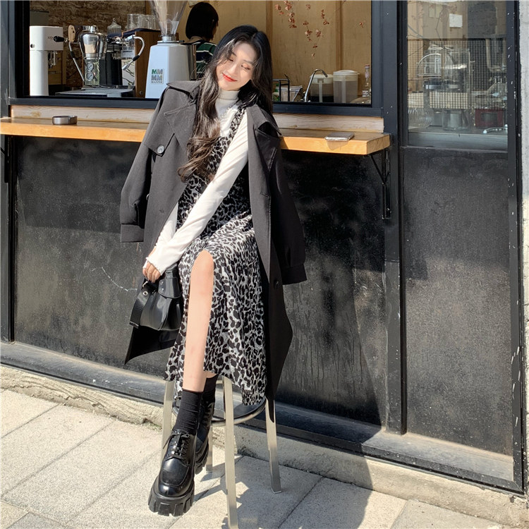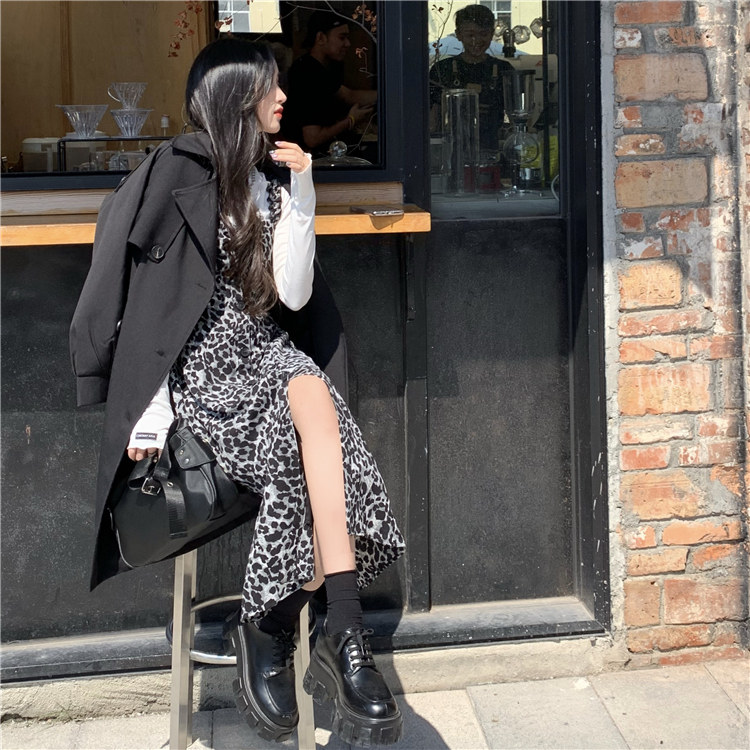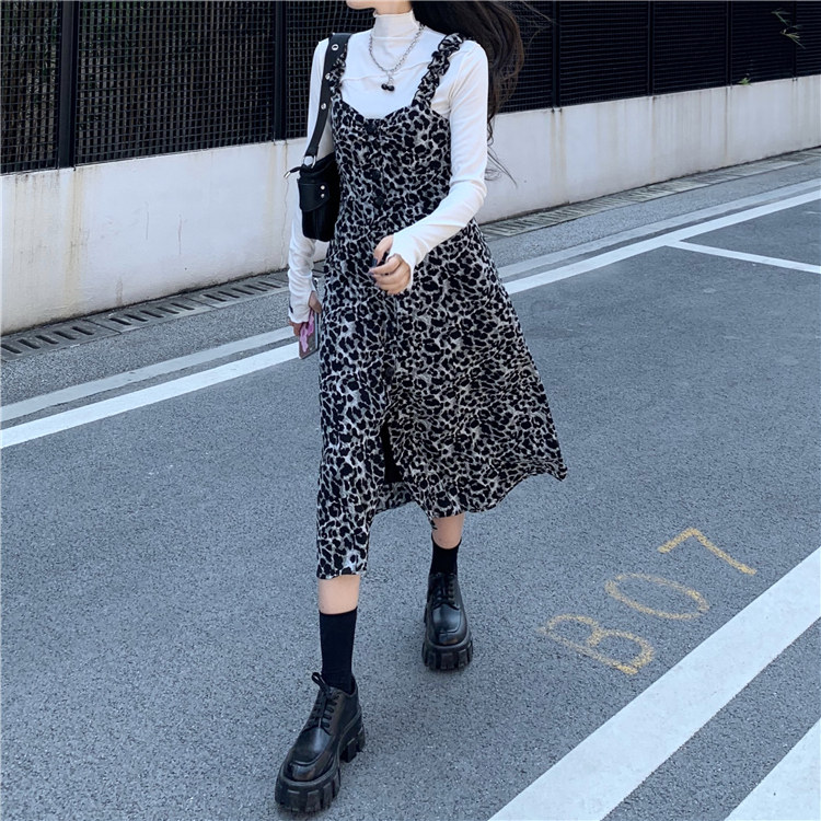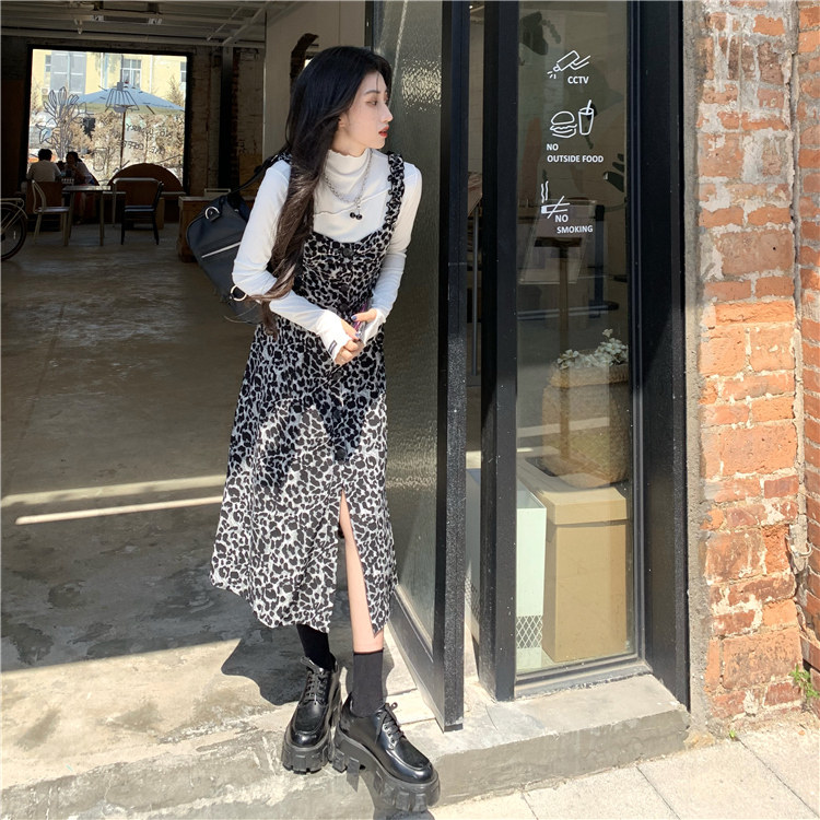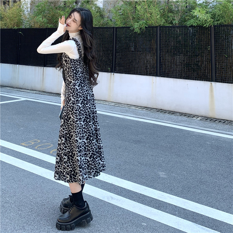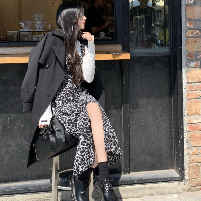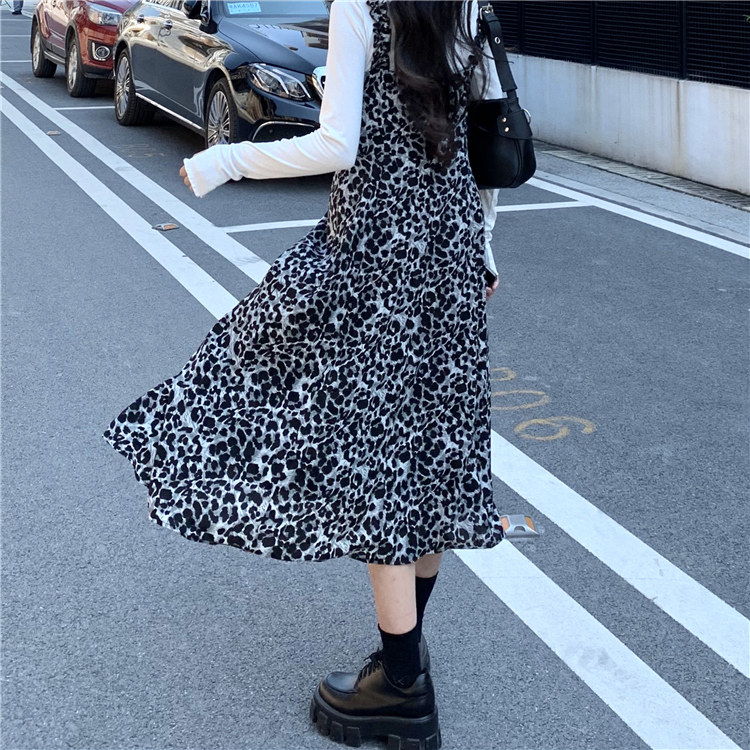 Демисезонное ретро длинное платье, платье-комбинация, в корейском стиле, длина миди