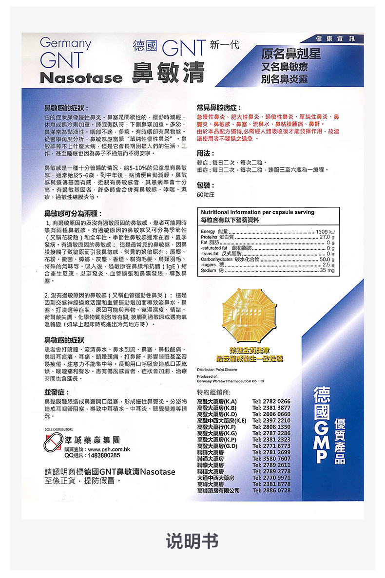 Германия gnt насалиста очистка 60 капсул/коробку на носовом заводе.