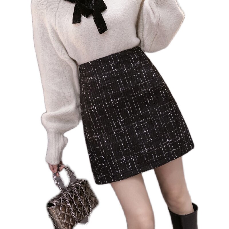 Шерстяная клетчатая демисезонная юбка, приталенное защитное белье, мини-юбка, в стиле Шанель, А-силуэт