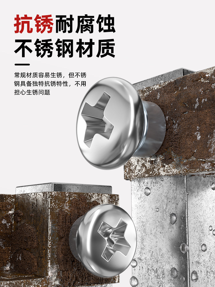 Нержавеющая сталь 304, крестообразный винт с цилиндрической головкой, несъемный винт с круглой головкой, болт с полурезьбой M3M4M5M6Mm