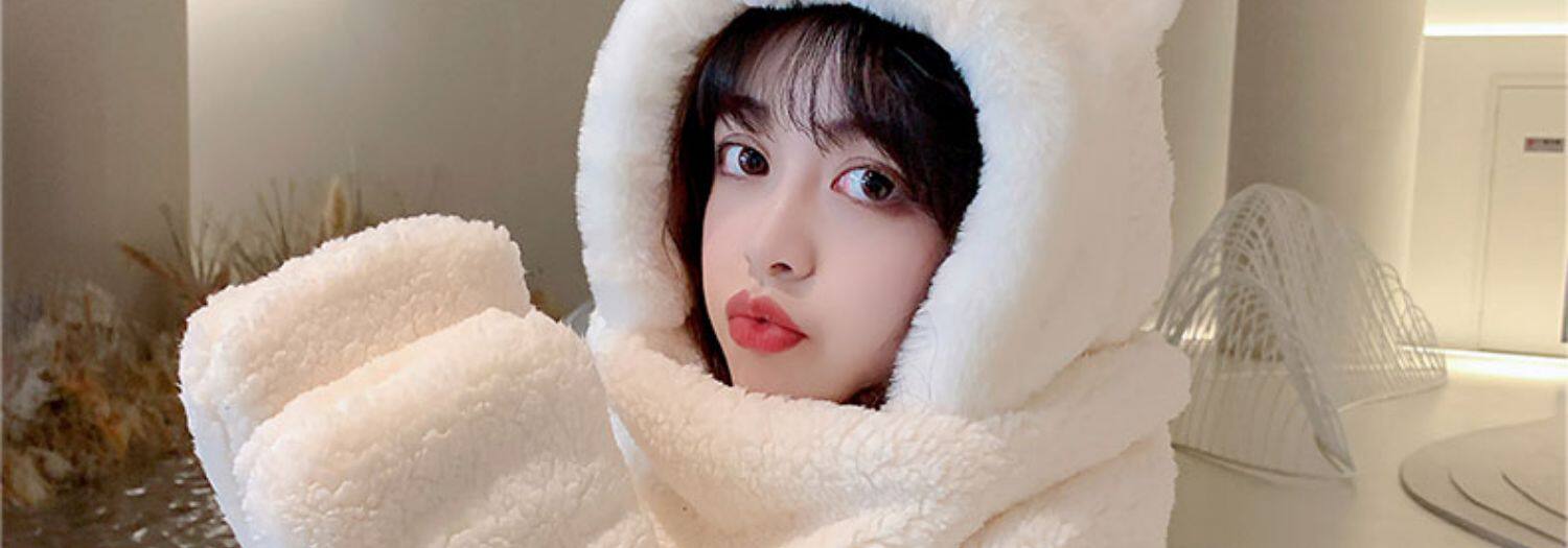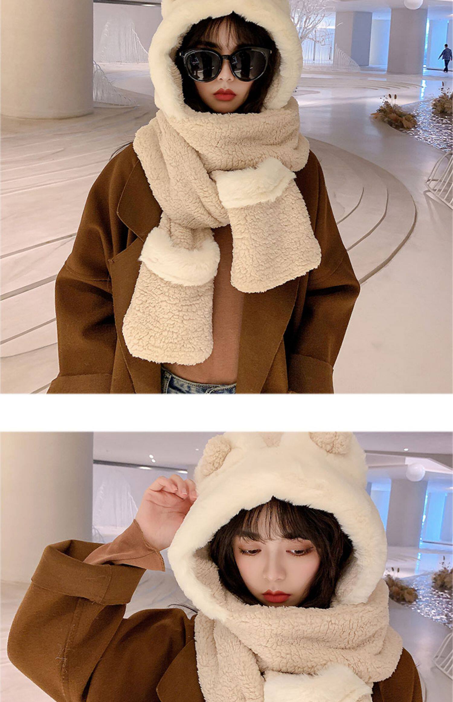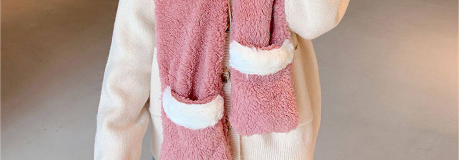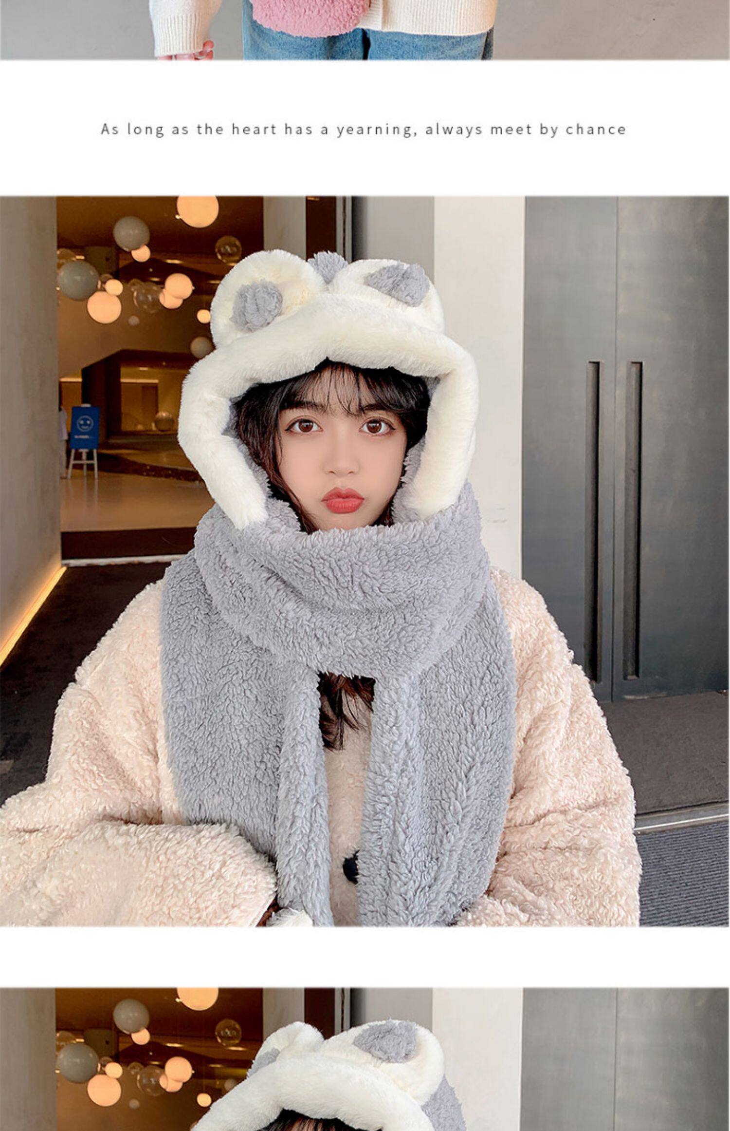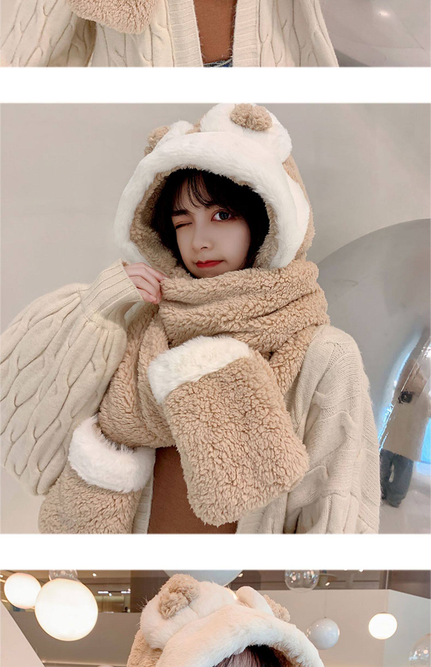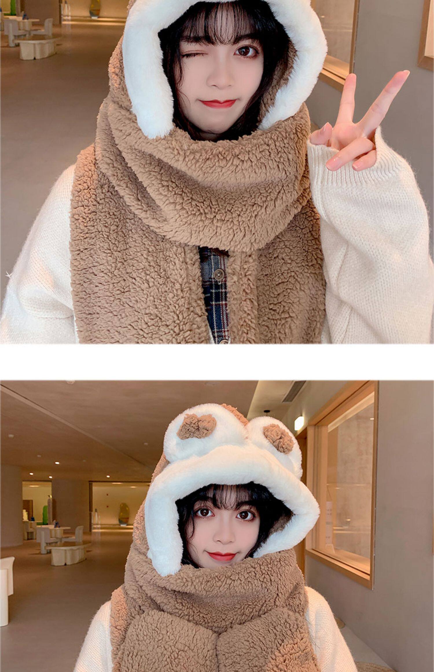 Демисезонная шапка, универсальный бархатный милый шарф, удерживающие тепло перчатки для школьников и студентов, комплект, в корейском стиле, 3 предмета