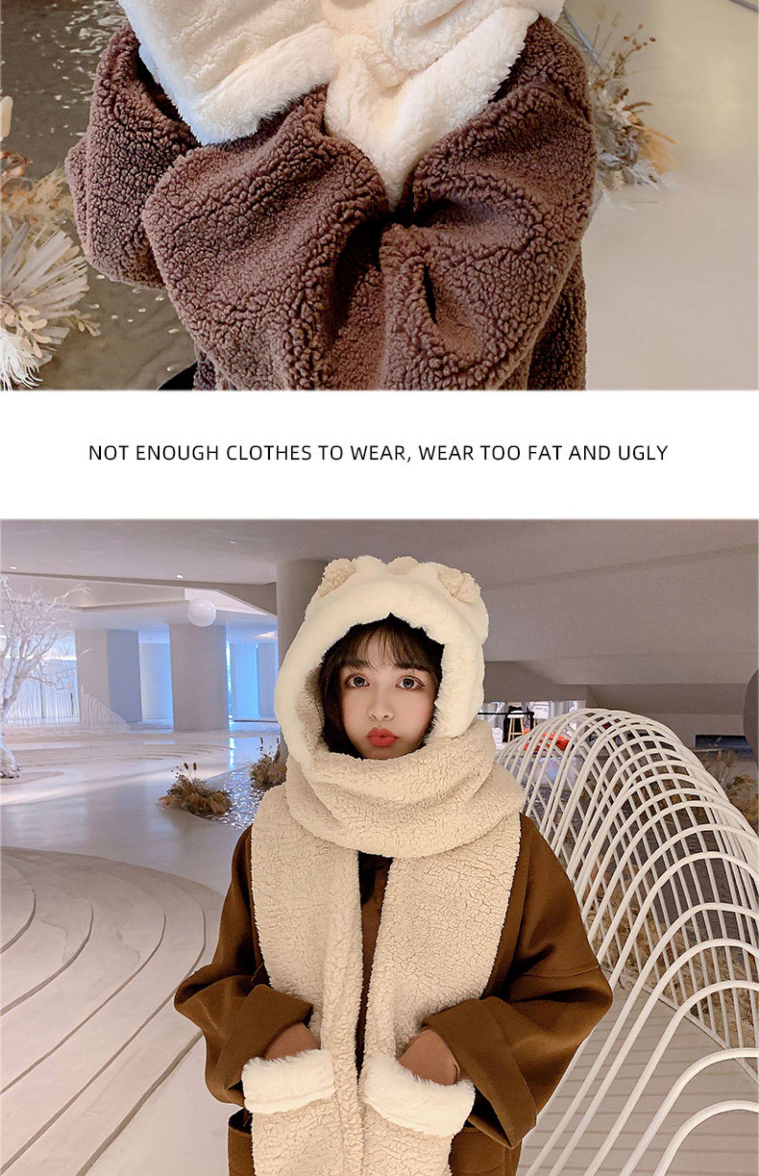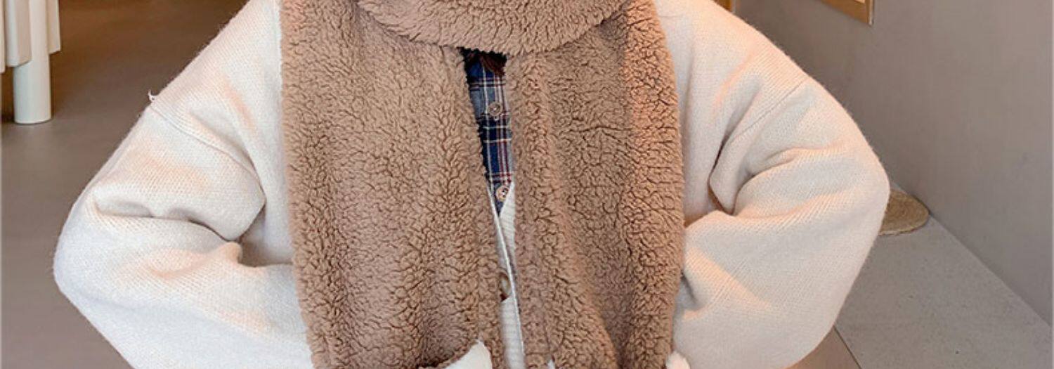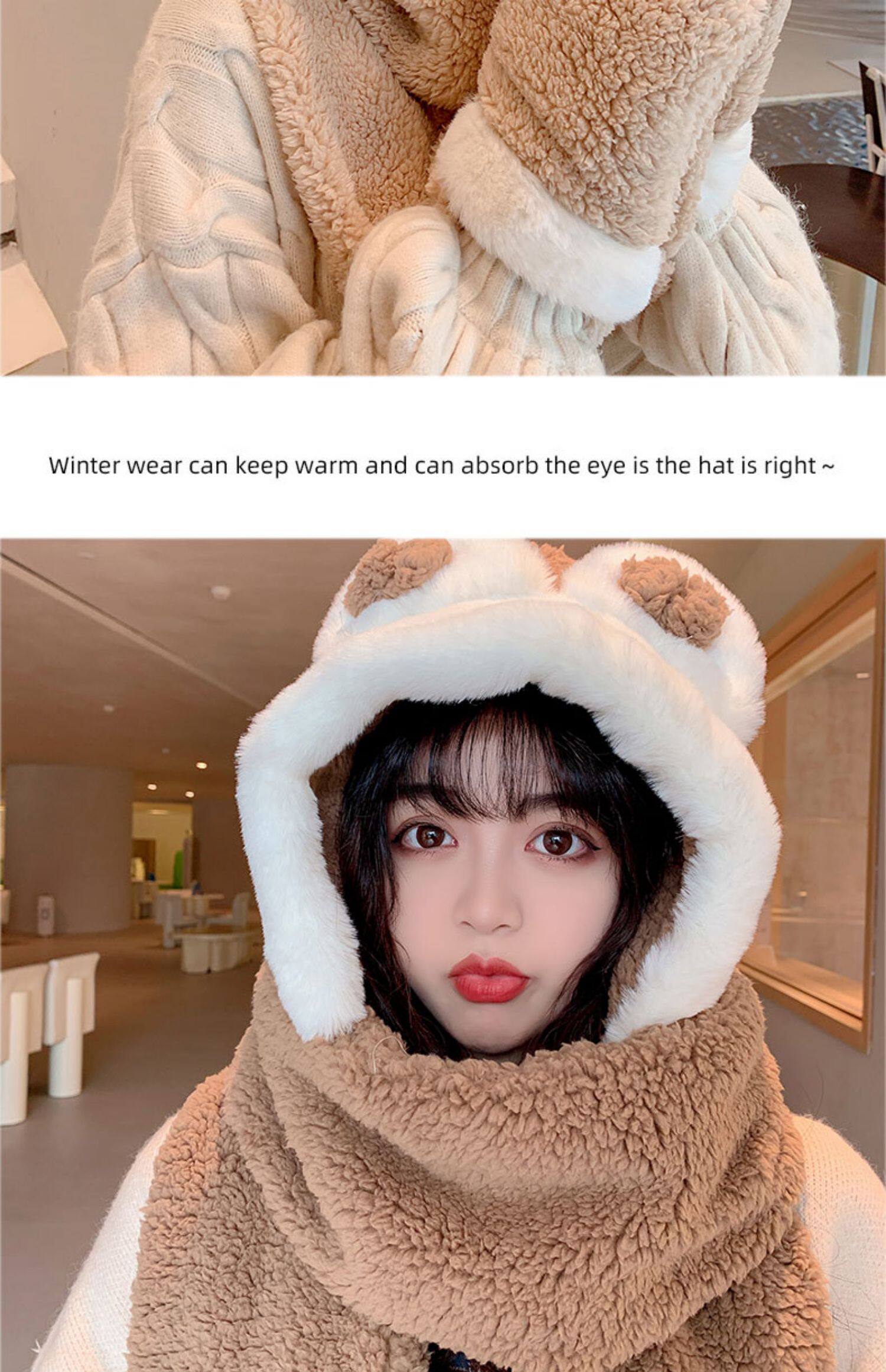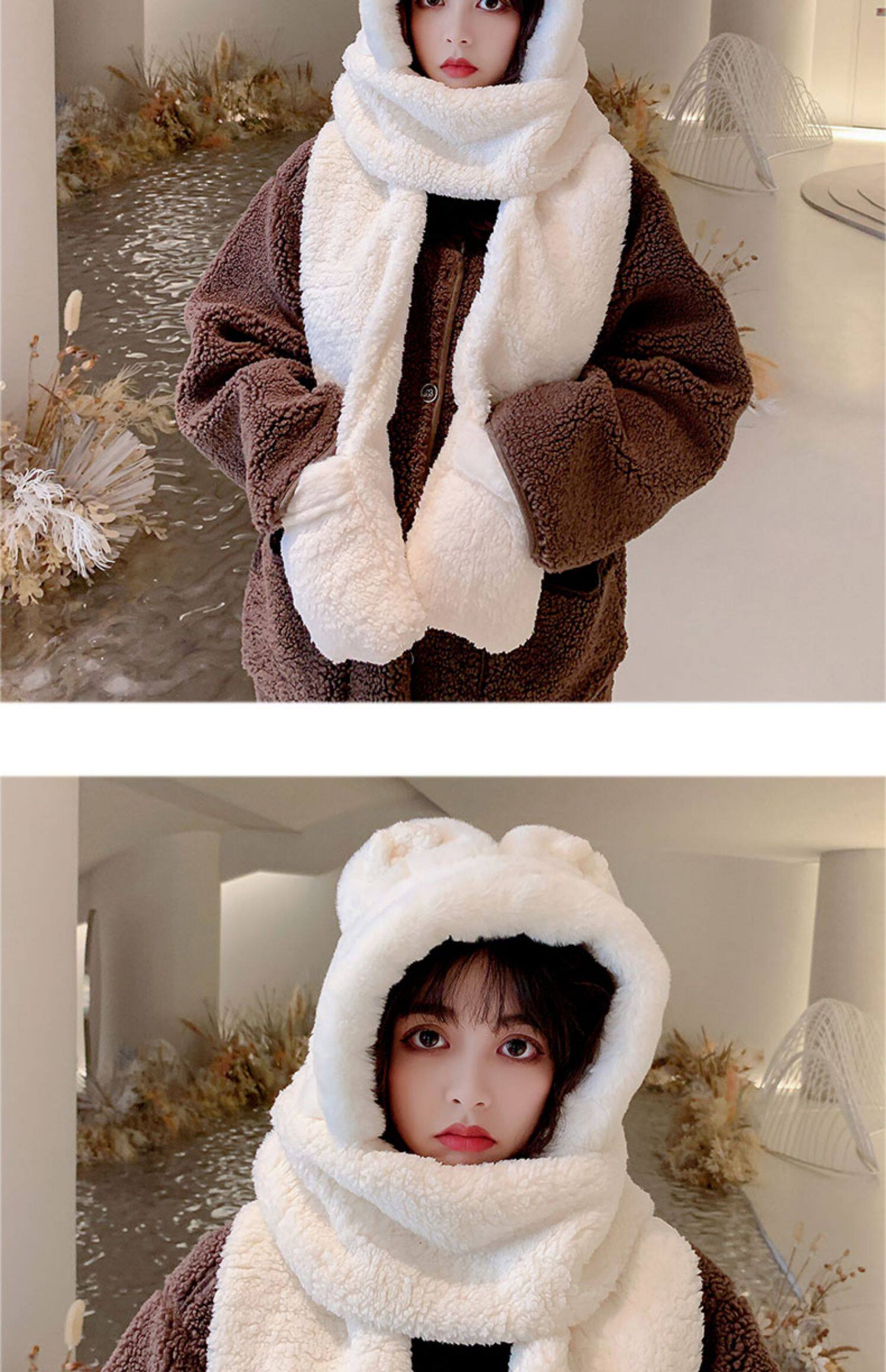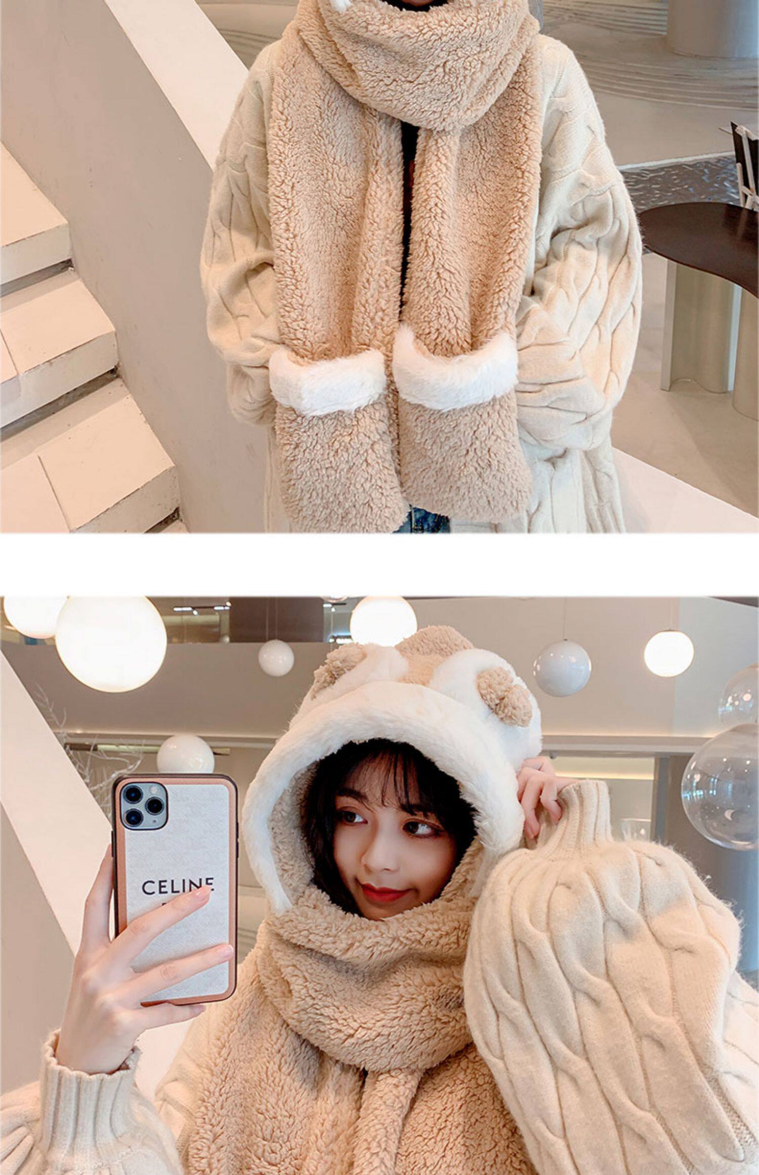 Демисезонная шапка, универсальный бархатный милый шарф, удерживающие тепло перчатки для школьников и студентов, комплект, в корейском стиле, 3 предмета