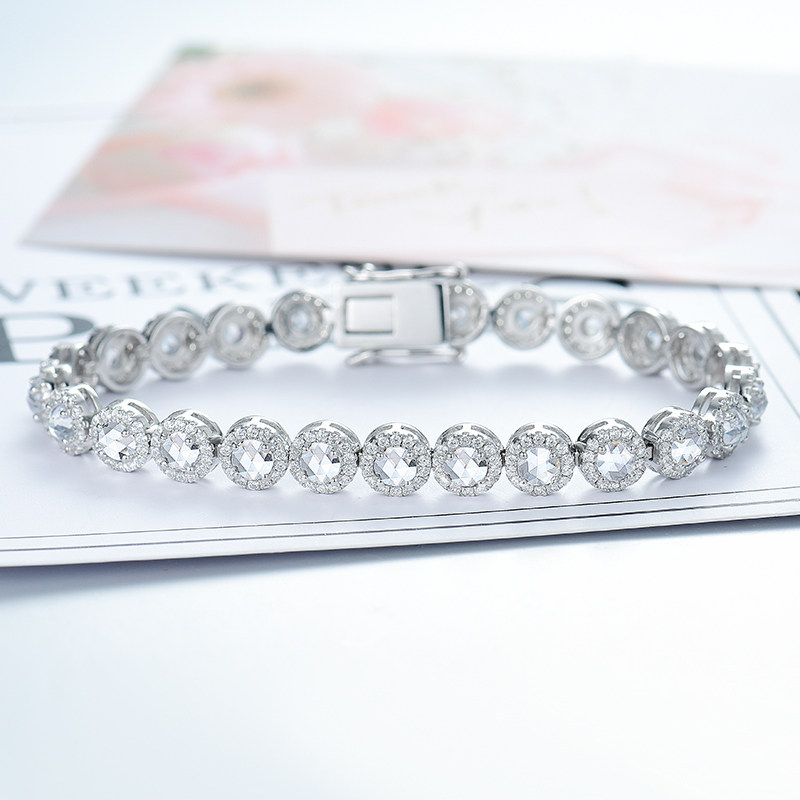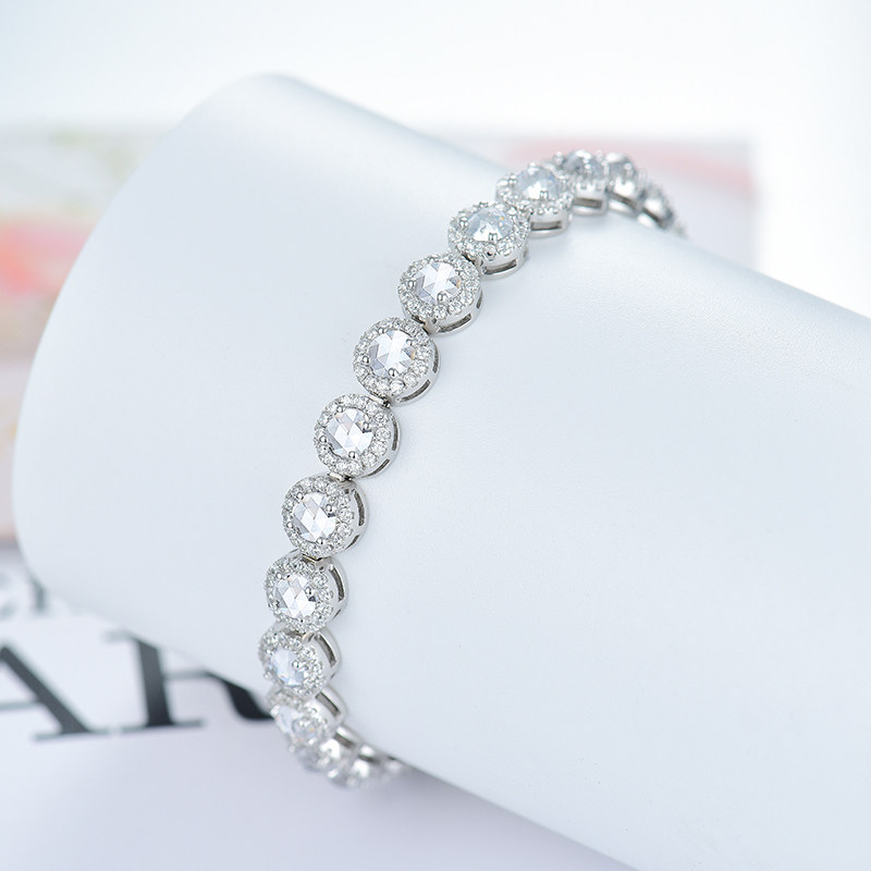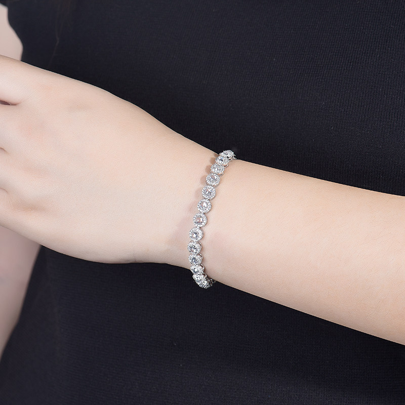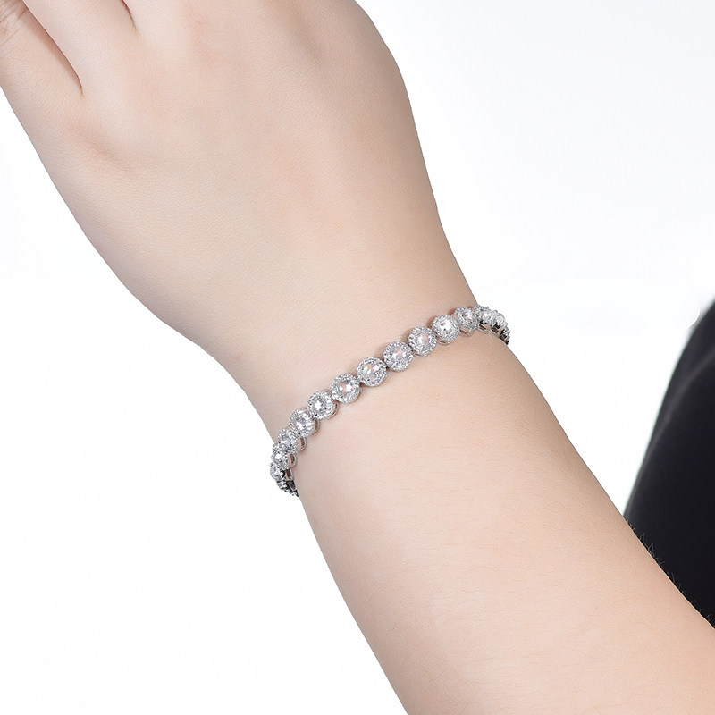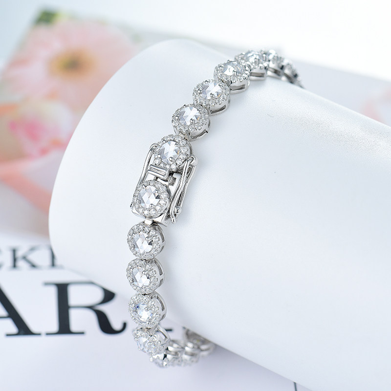 Ювелирное украшение, бриллиантовый платиновый браслет из натурального камня, инкрустировано бриллиантами, серебро 925 пробы