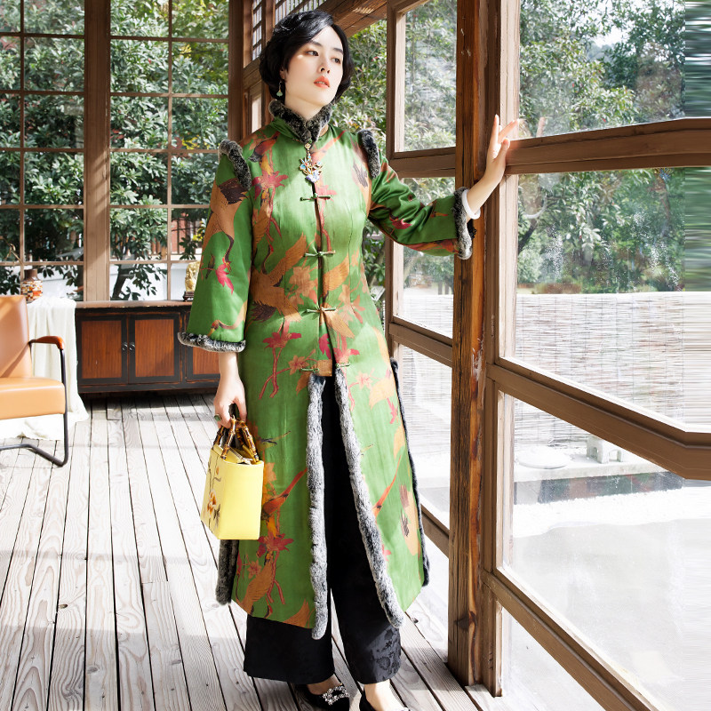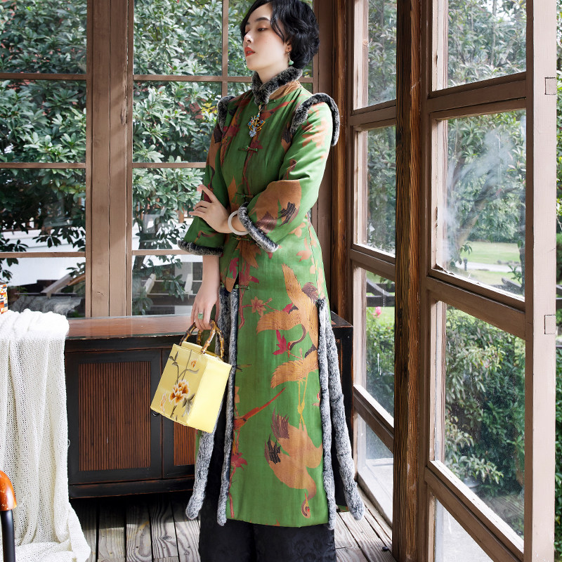 Оригинальное дизайнерское длинное ретро ципао, хлопковый плащ, увеличенная толщина