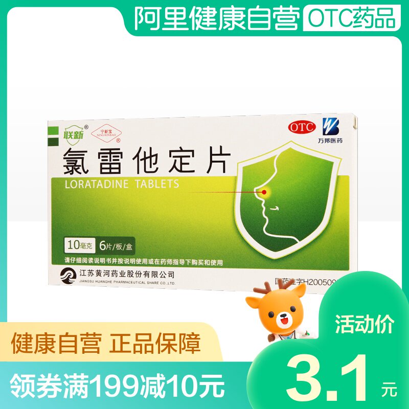宁新宝 Clotereta фиксирована таблетка 10 мг*6 таблеток/коробки носовой боли на носовом зуде, ринит, застой назального, аллергический зуд, жирный нос и чихание
