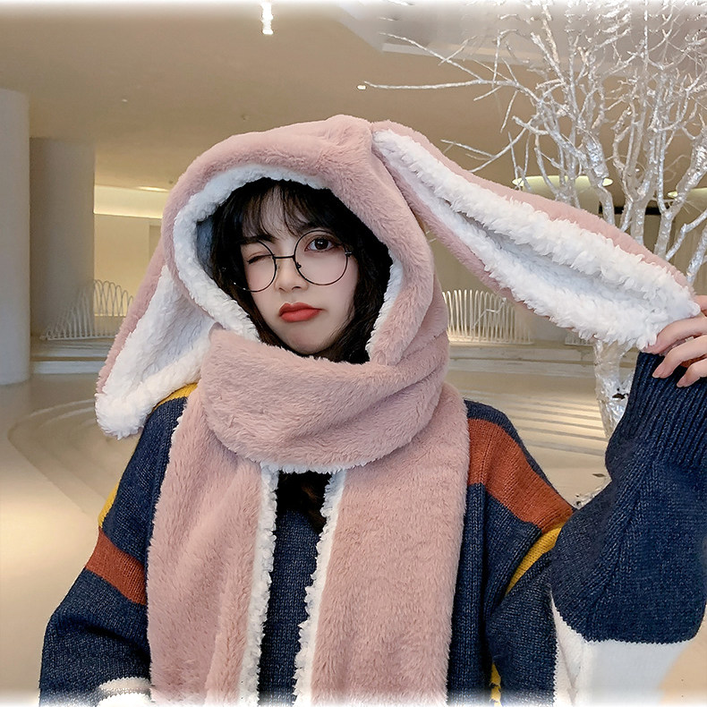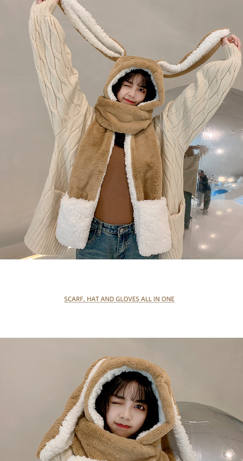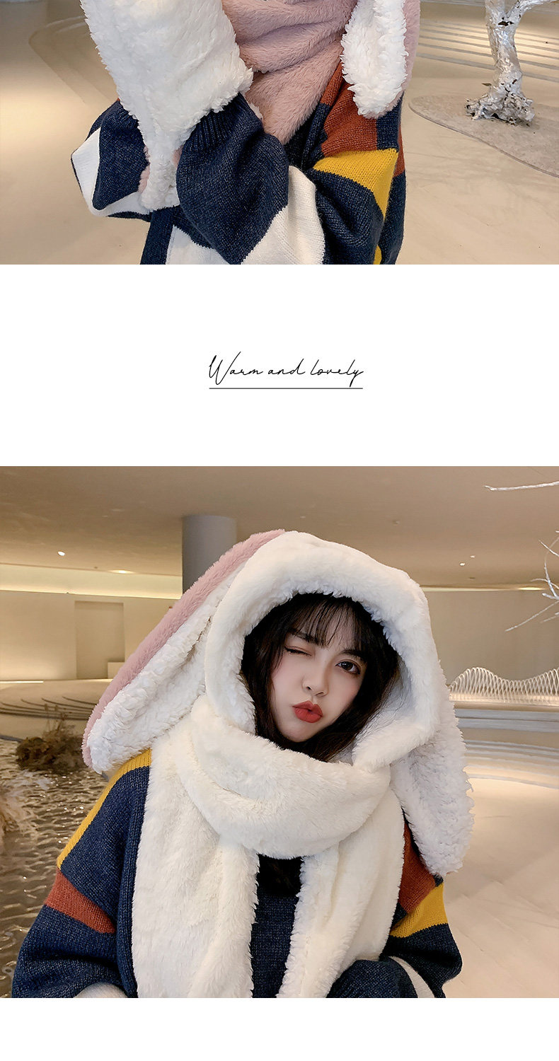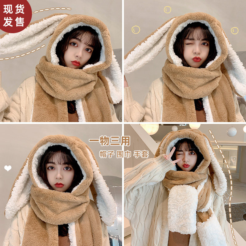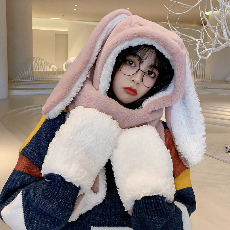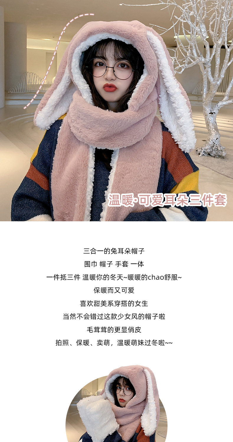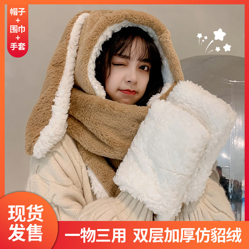 Универсальный демисезонный шарф для школьников и студентов, перчатки с капюшоном, шапка, милый комплект, флисовый удерживающий тепло кролик, 3 предмета