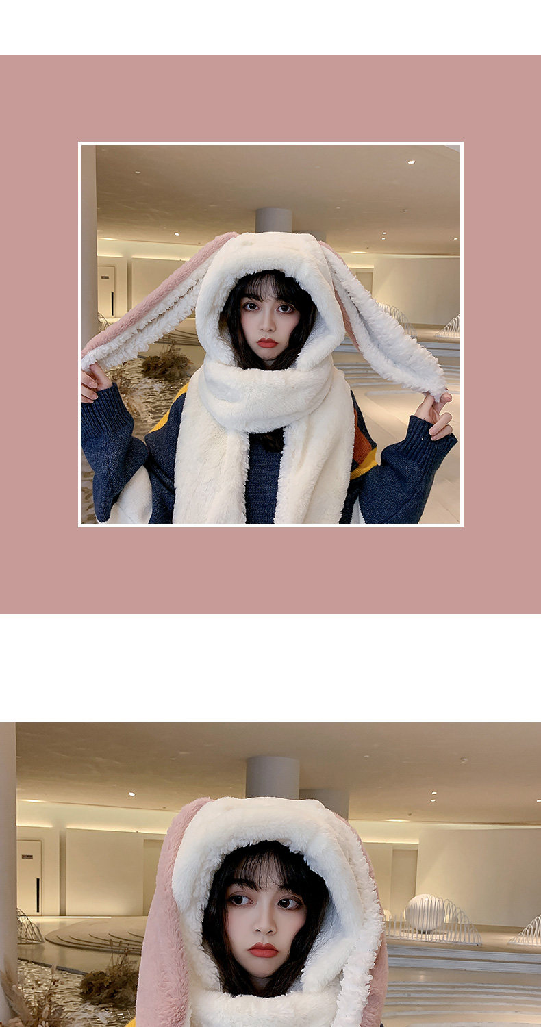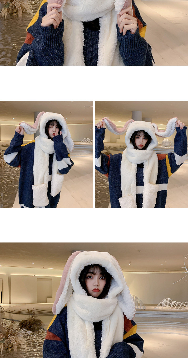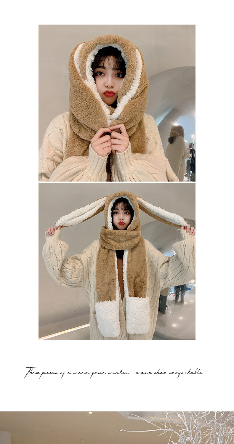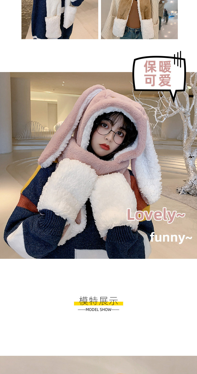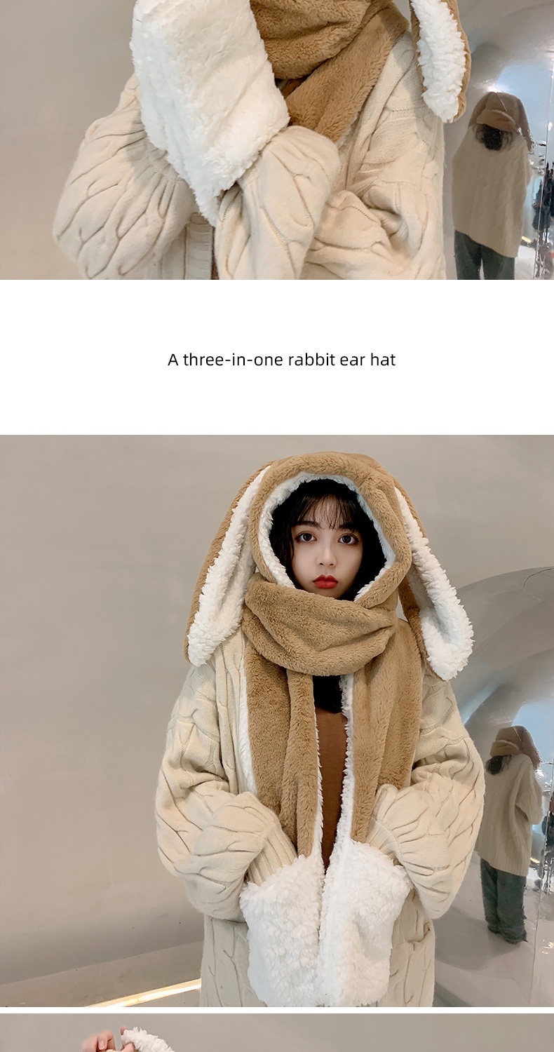 Универсальный демисезонный шарф для школьников и студентов, перчатки с капюшоном, шапка, милый комплект, флисовый удерживающий тепло кролик, 3 предмета