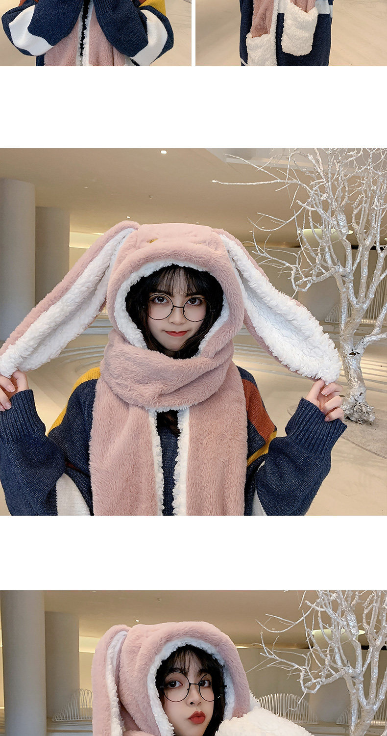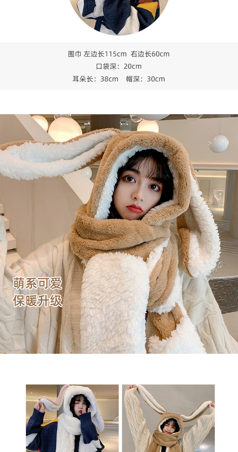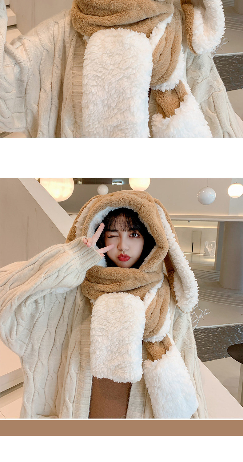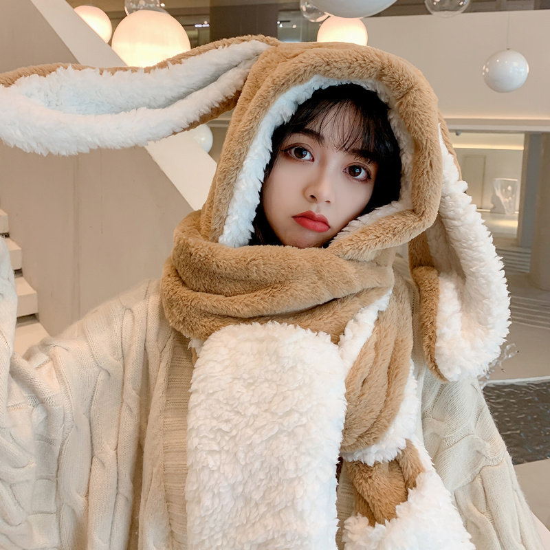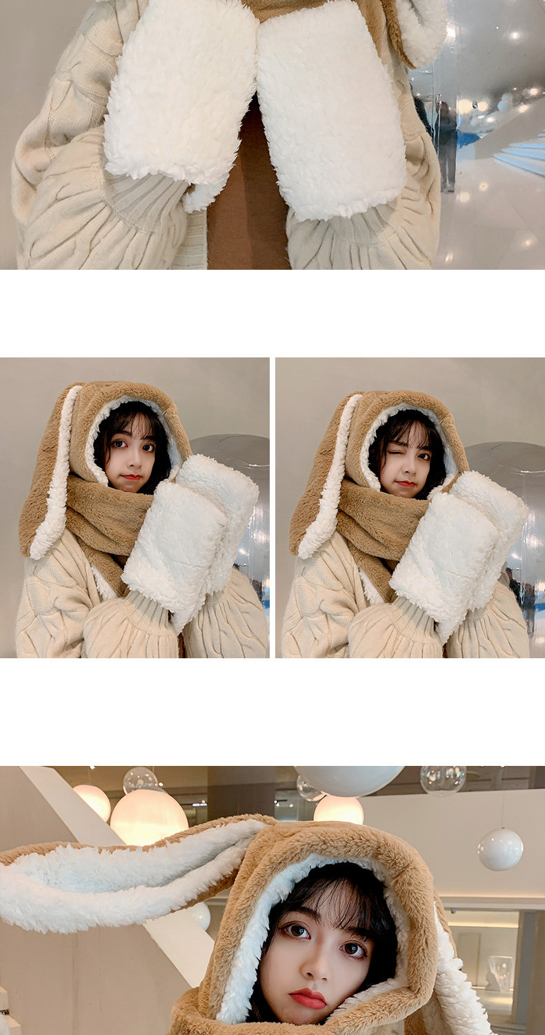 Универсальный демисезонный шарф для школьников и студентов, перчатки с капюшоном, шапка, милый комплект, флисовый удерживающий тепло кролик, 3 предмета