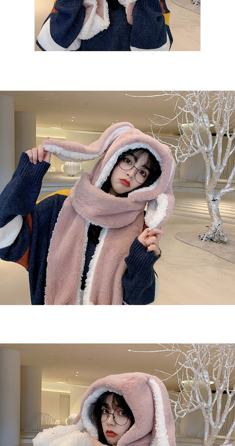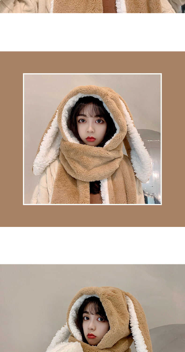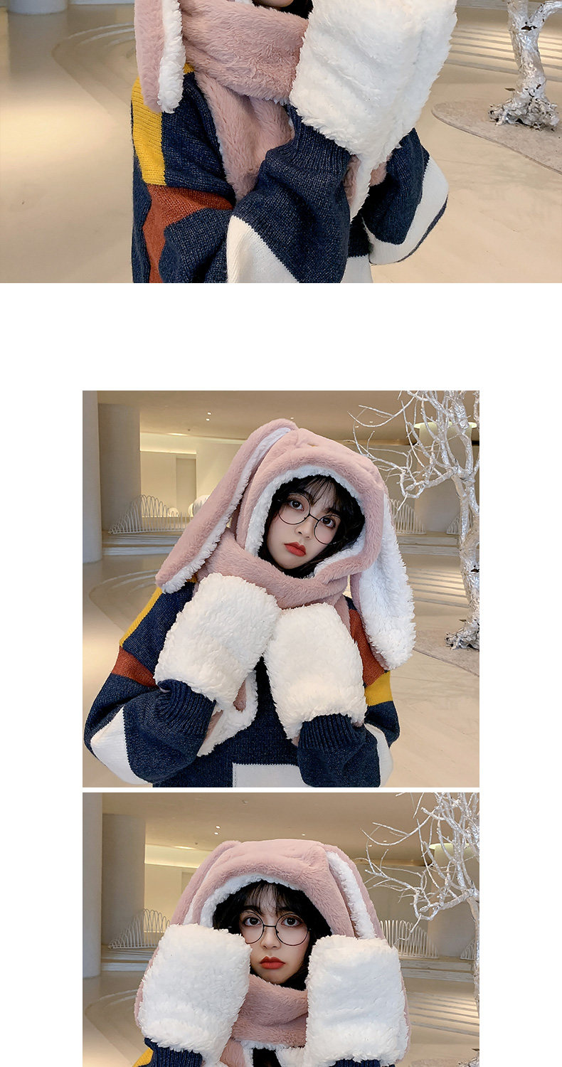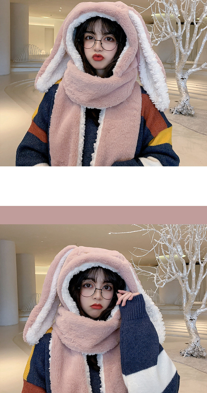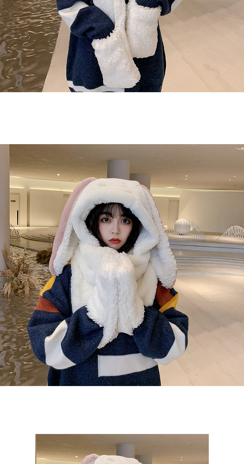 Универсальный демисезонный шарф для школьников и студентов, перчатки с капюшоном, шапка, милый комплект, флисовый удерживающий тепло кролик, 3 предмета