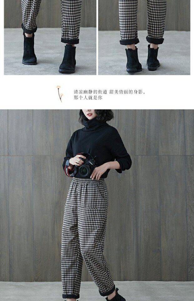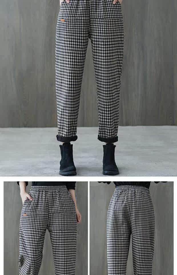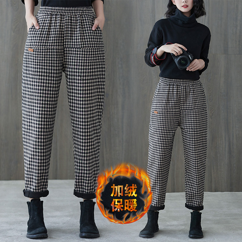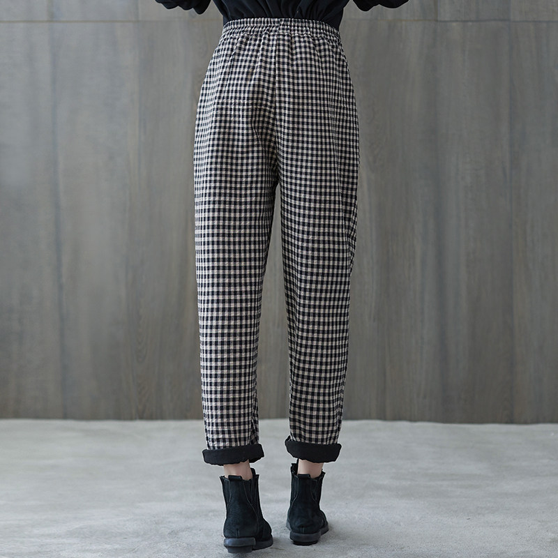 Зимние приталенные утепленные штаны, высокая талия, из хлопка и льна, эластичная талия, оверсайз