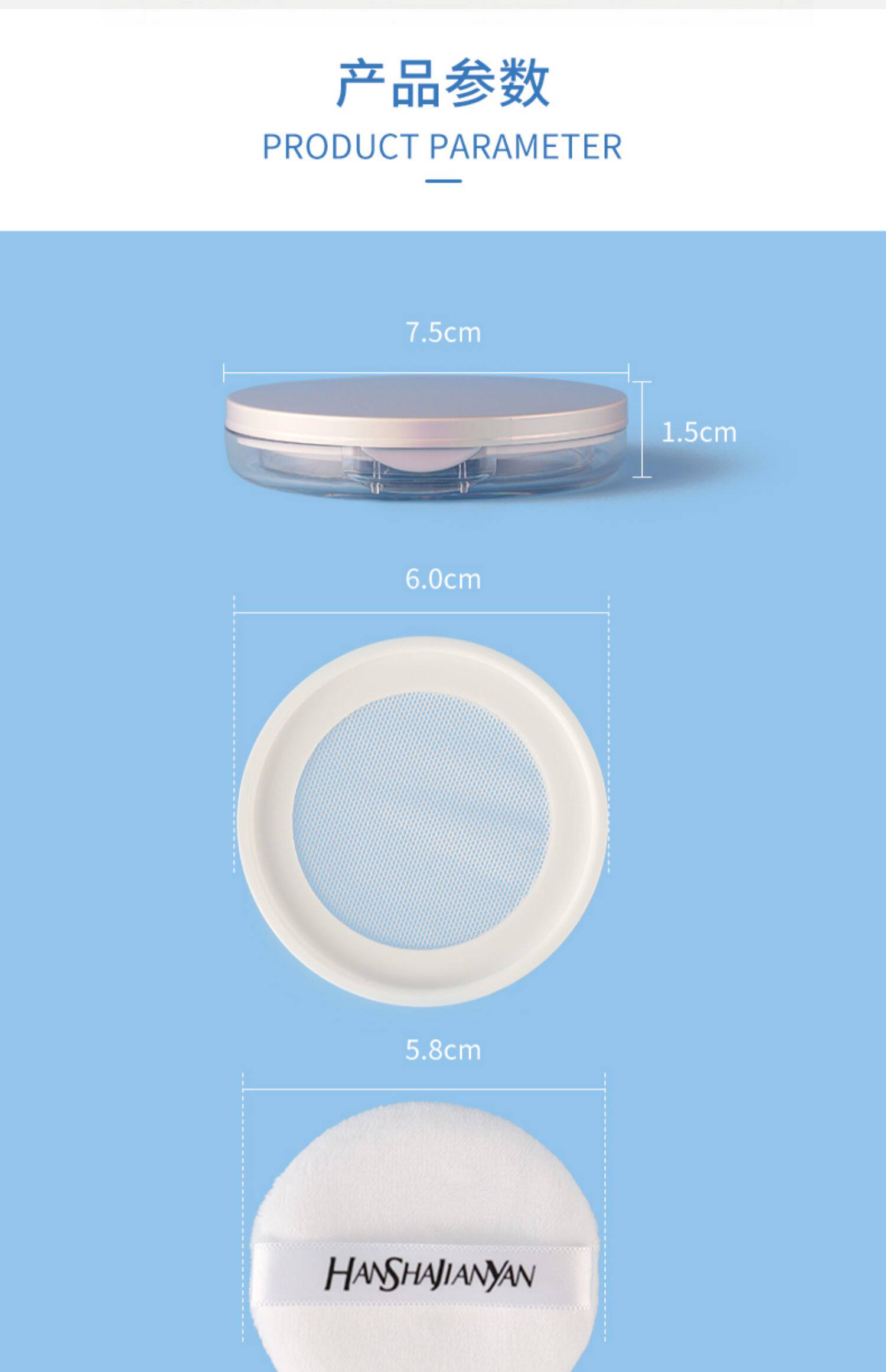Рассыпчатая пудра, тонкая портативная тара, спонж, эластичная сетка, маленькая банка для хранения