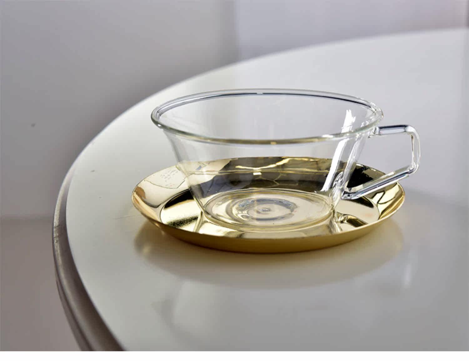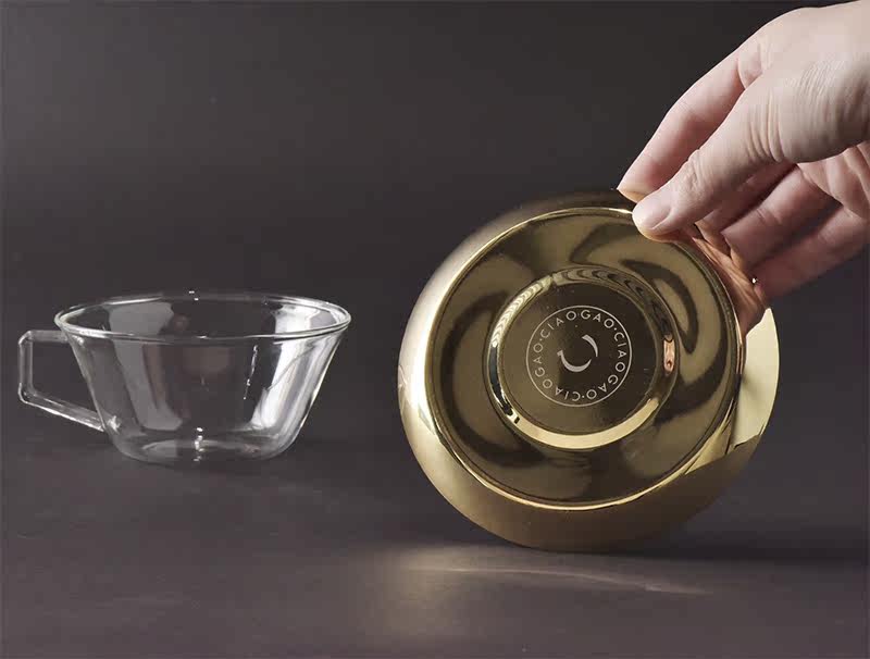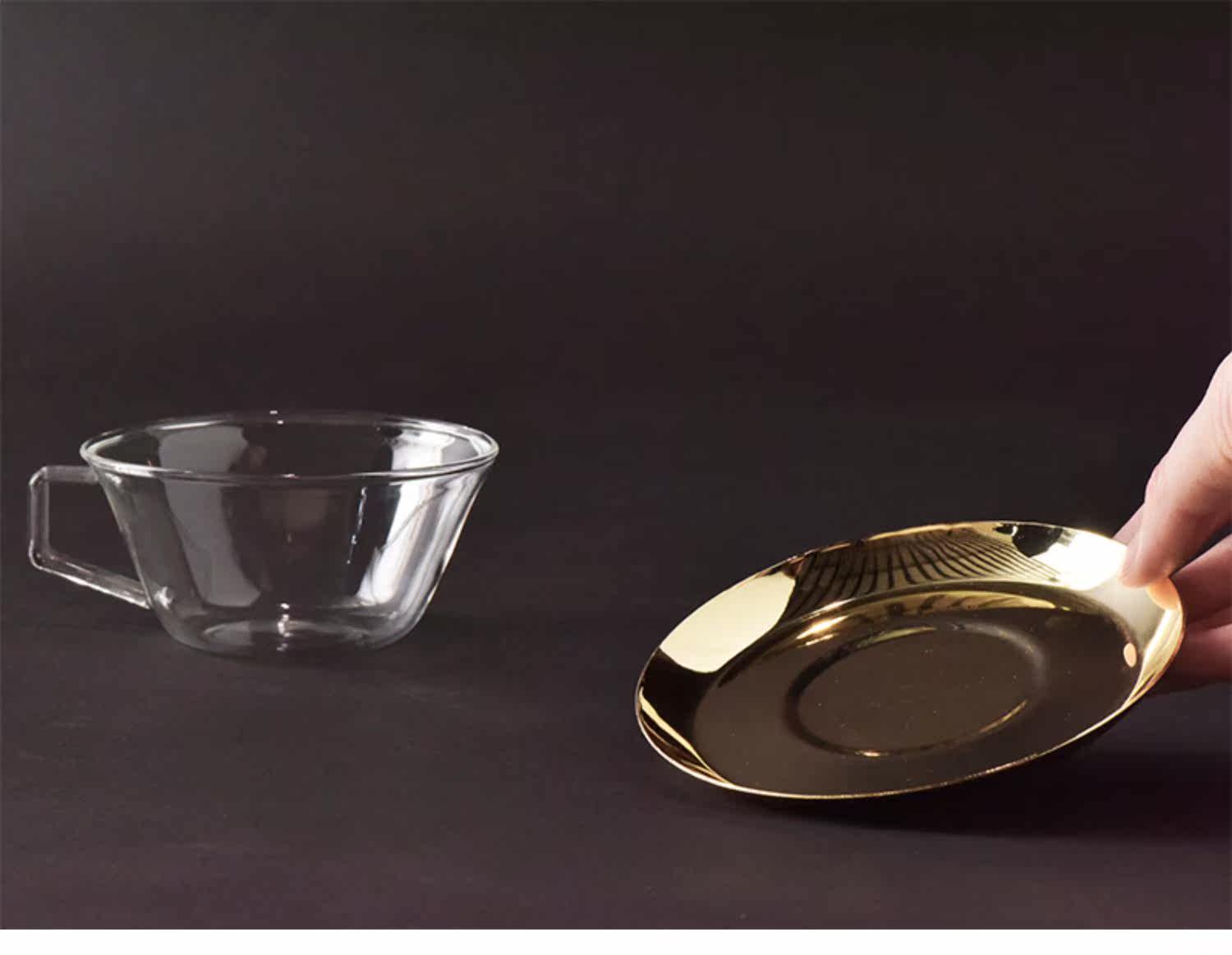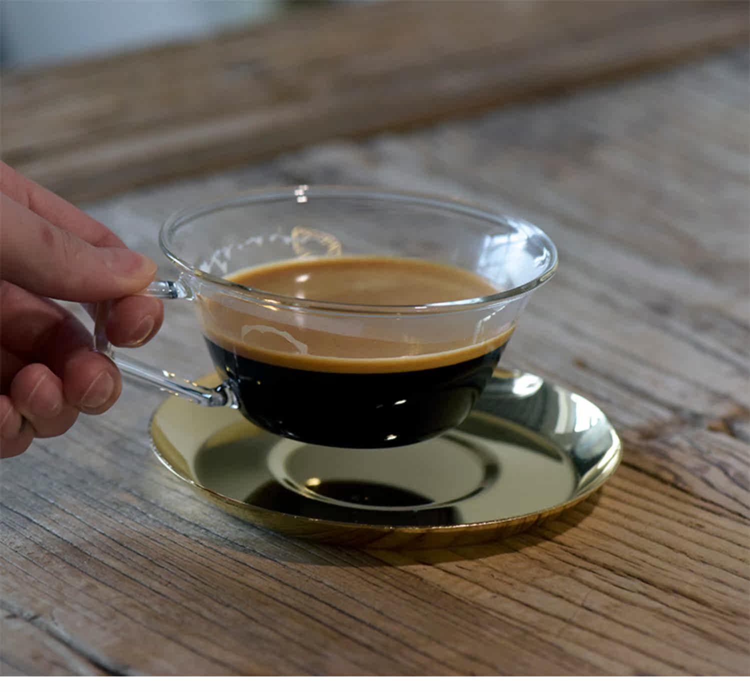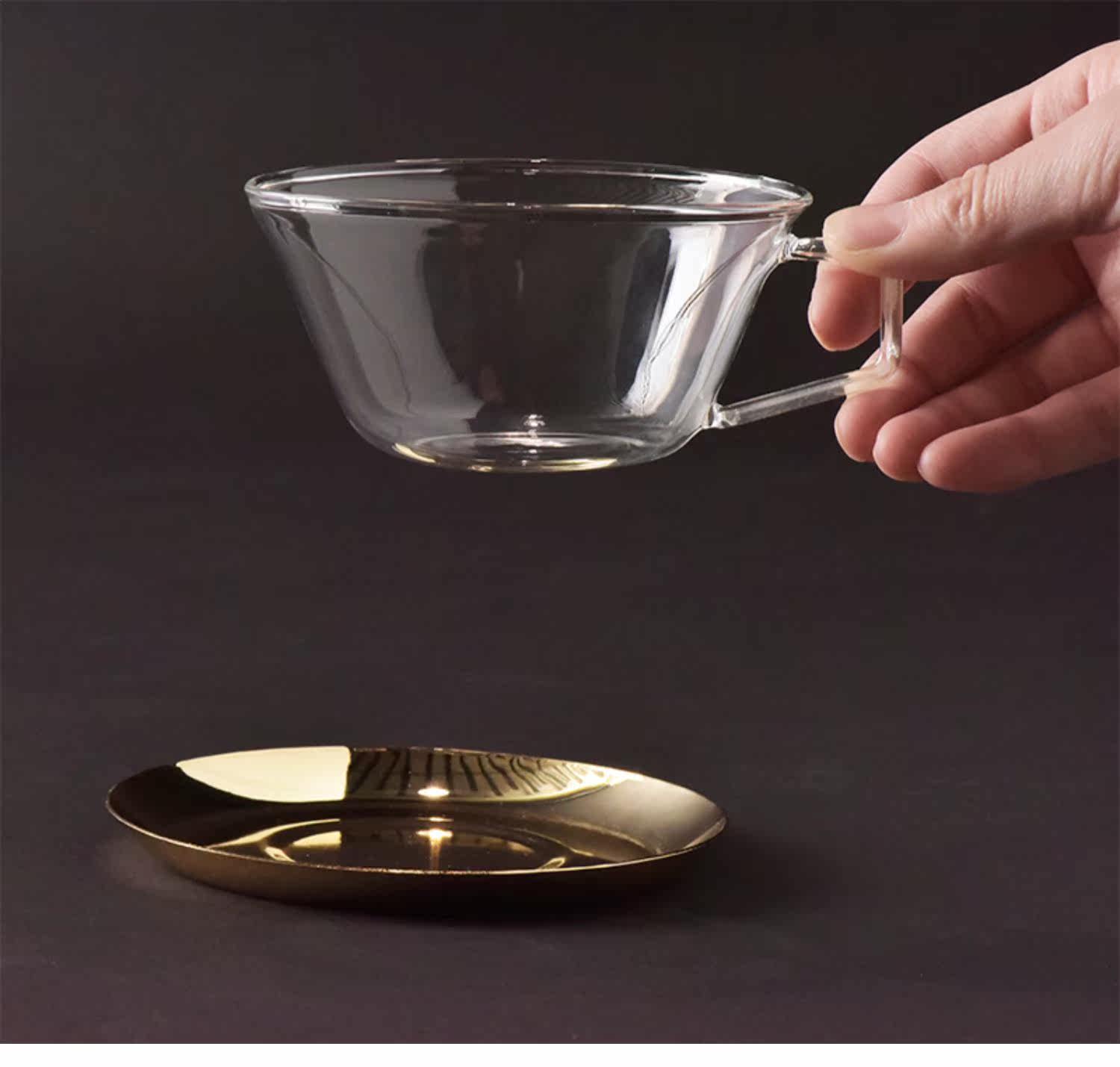 Японская кофейная стеклянная золотая чайная чашка из нержавеющей стали