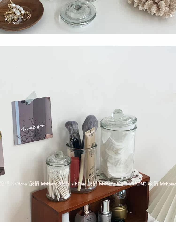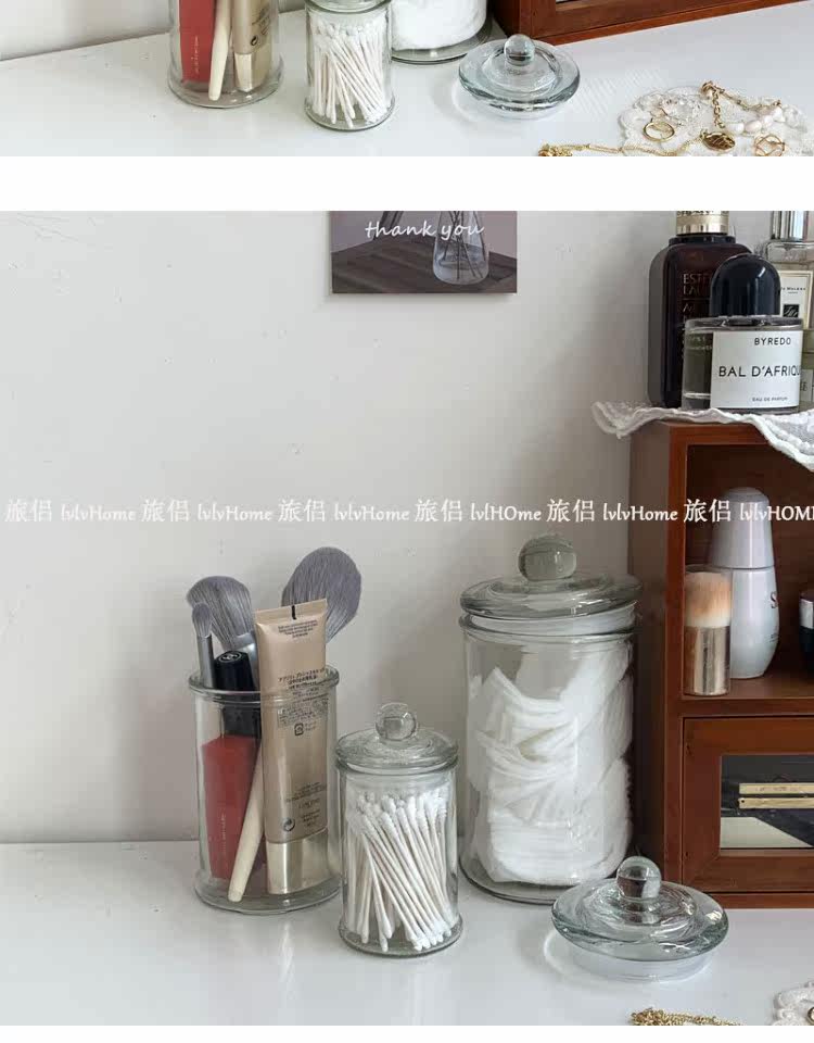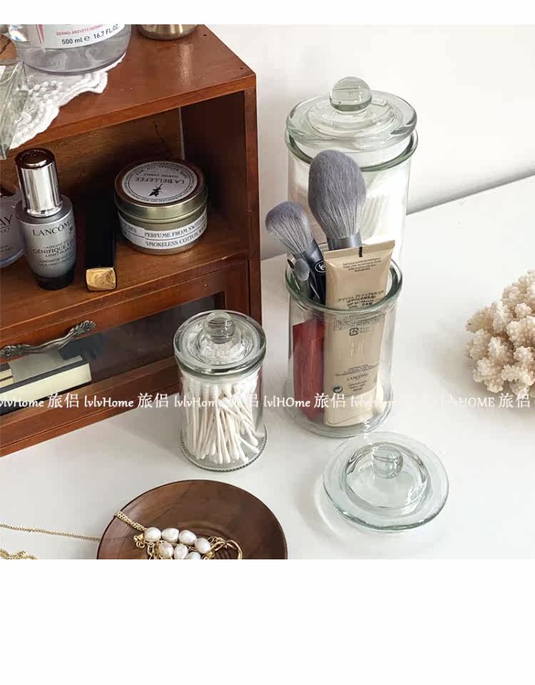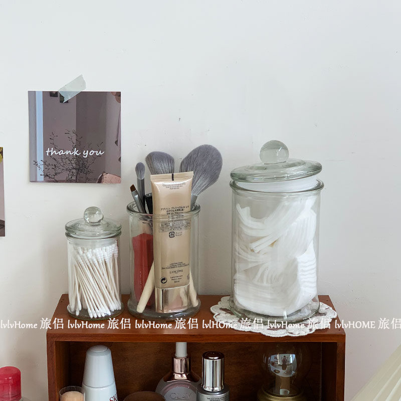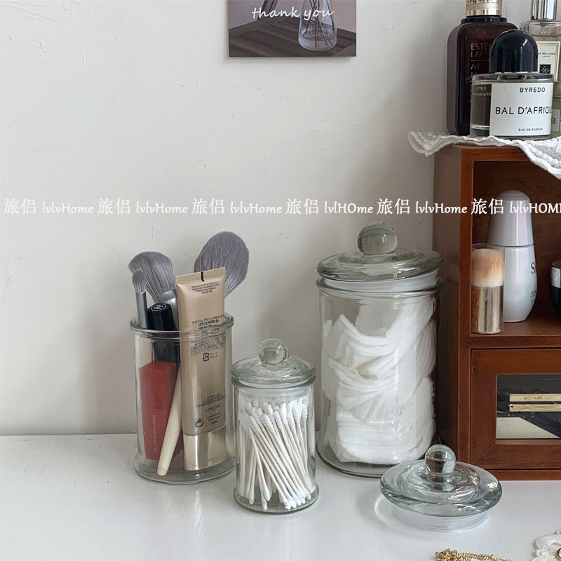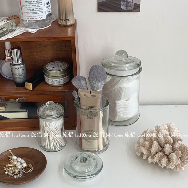 Ретро прозрачная стеклянная коробочка для хранения с уплотнителем, помада, система хранения, настольные ватные палочки, Южная Корея