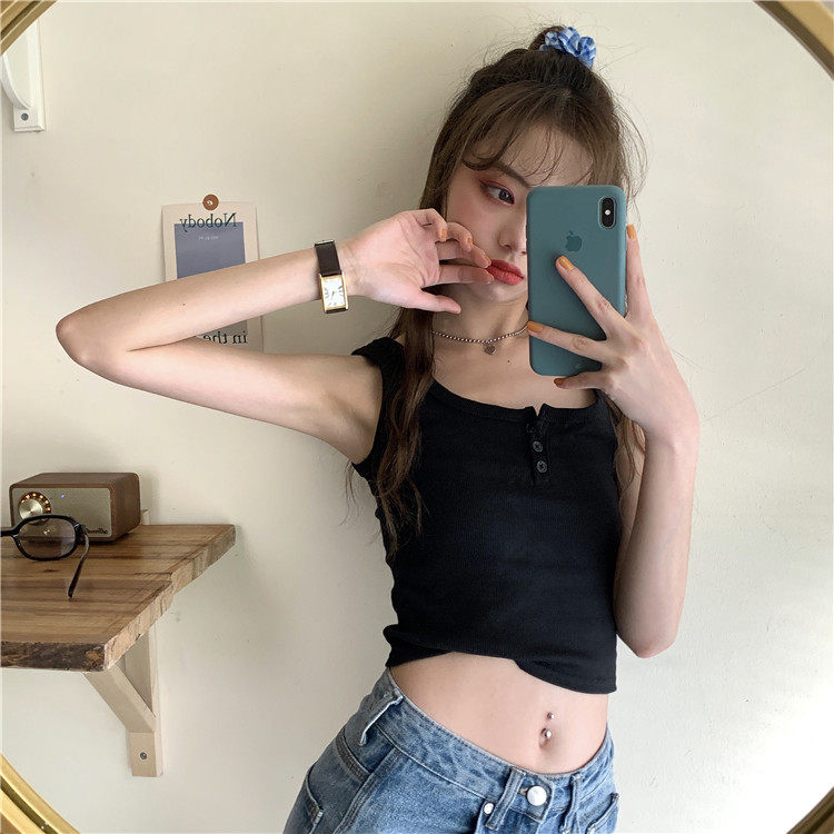 Белая приятная телу летняя короткая приталенная майка без рукавов, по фигуре, в корейском стиле