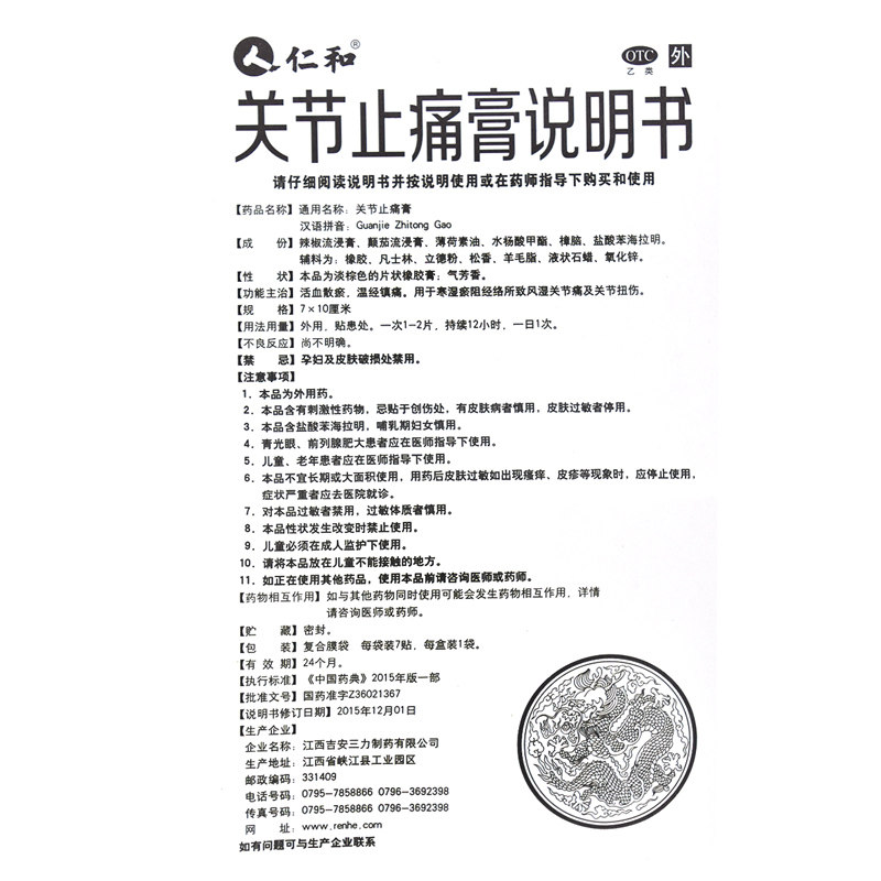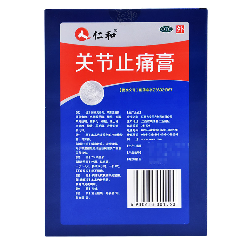 仁和 Обезболивающие сливки суставов 7 таблеток/коробка с ревматоидными артропластиками.