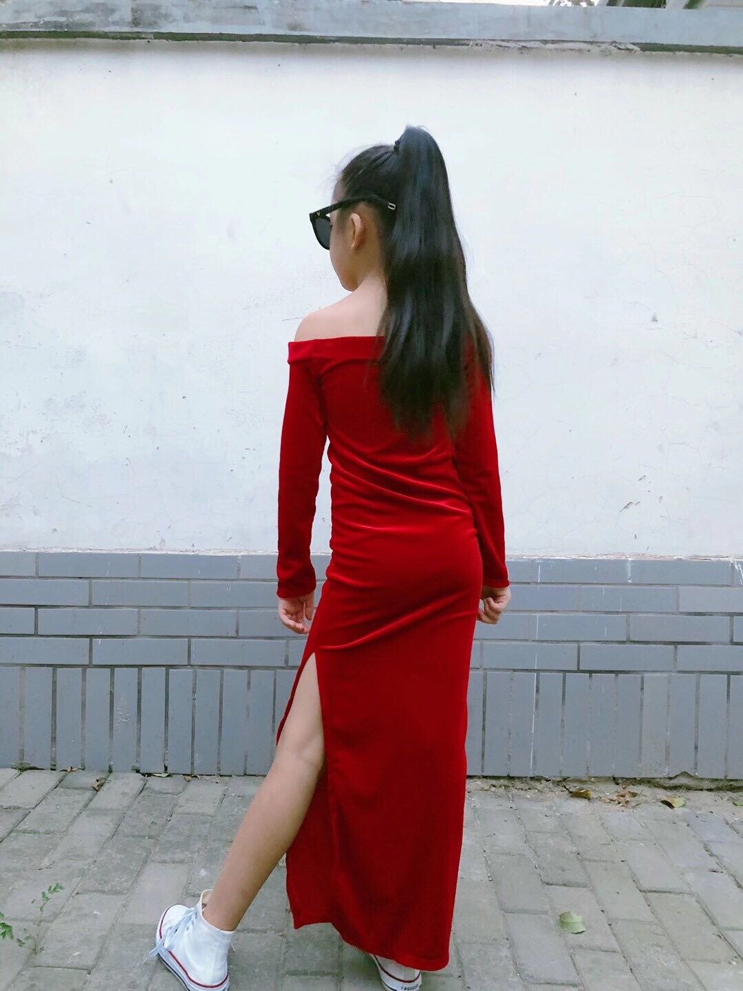 Демисезонное бархатное приталенное ретро платье, длинная юбка, делается под заказ, семейный стиль, 2023, открытые плечи