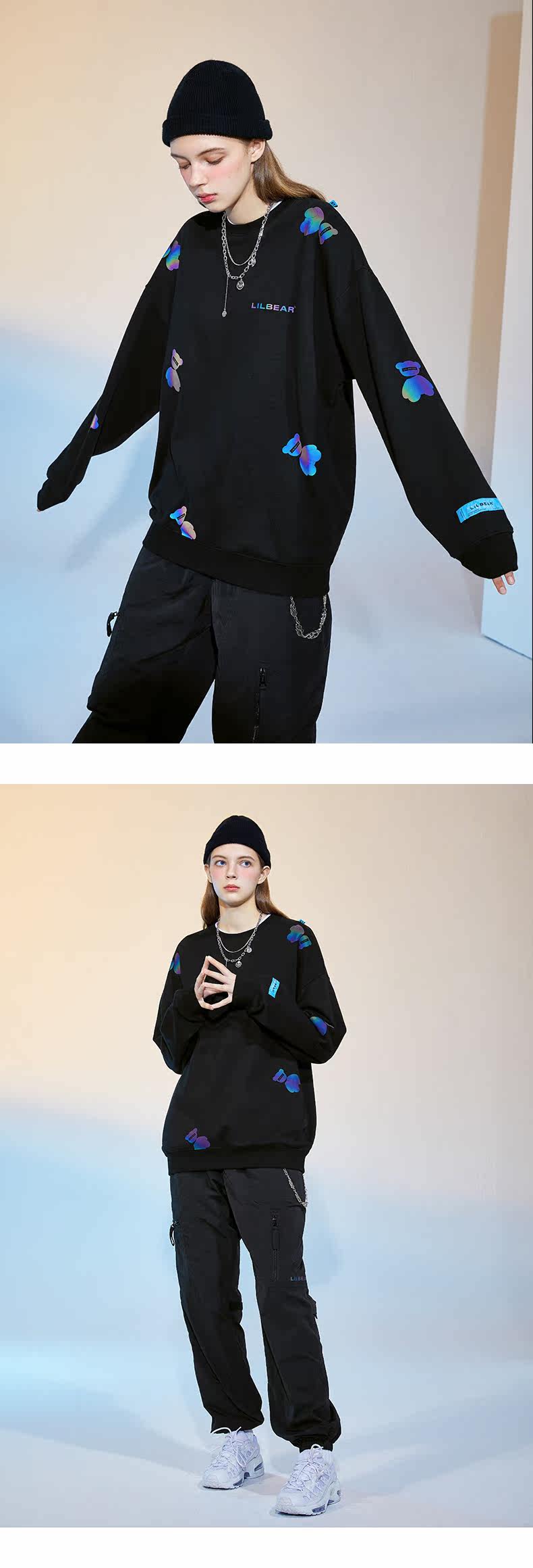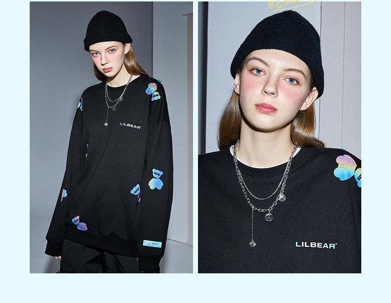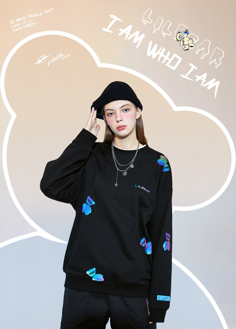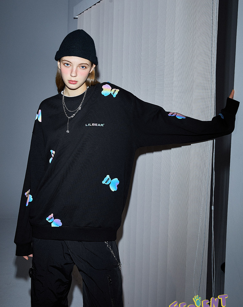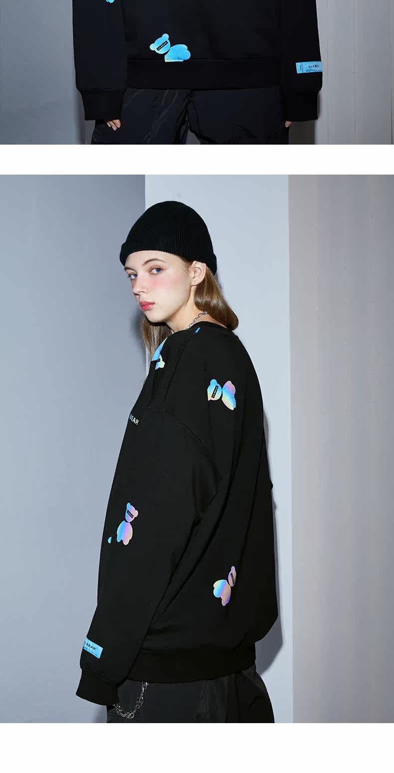 Толстовка подходит для мужчин и женщин, светоотражающий лонгслив с круглым воротником, свитшот, с медвежатами, коллекция 2021