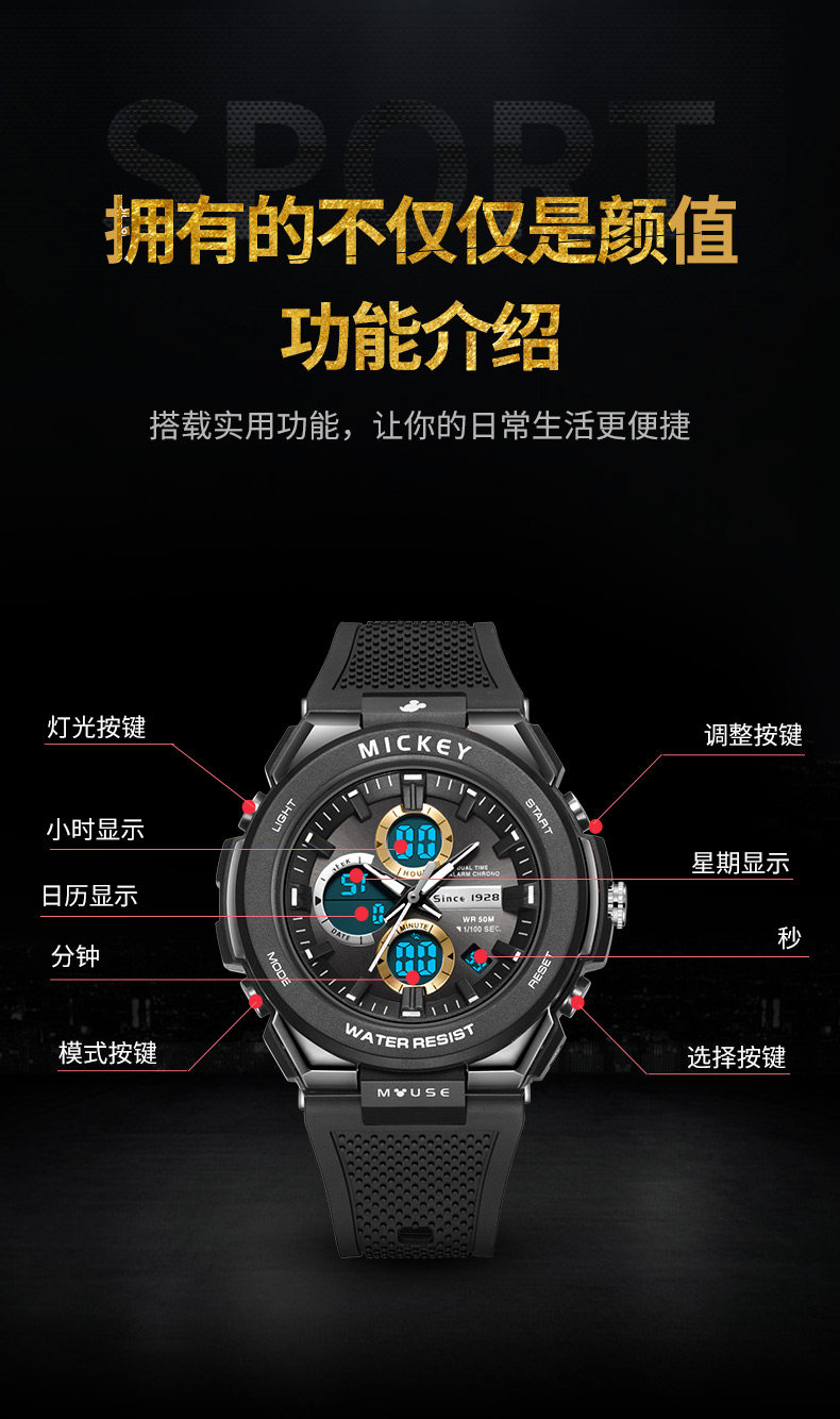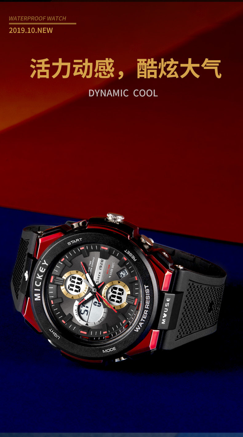 Дисней, детские часы для мальчиков, трендовые водонепроницаемые мужские часы, цифровые часы, для средней школы, подходит для подростков, 10-12 лет