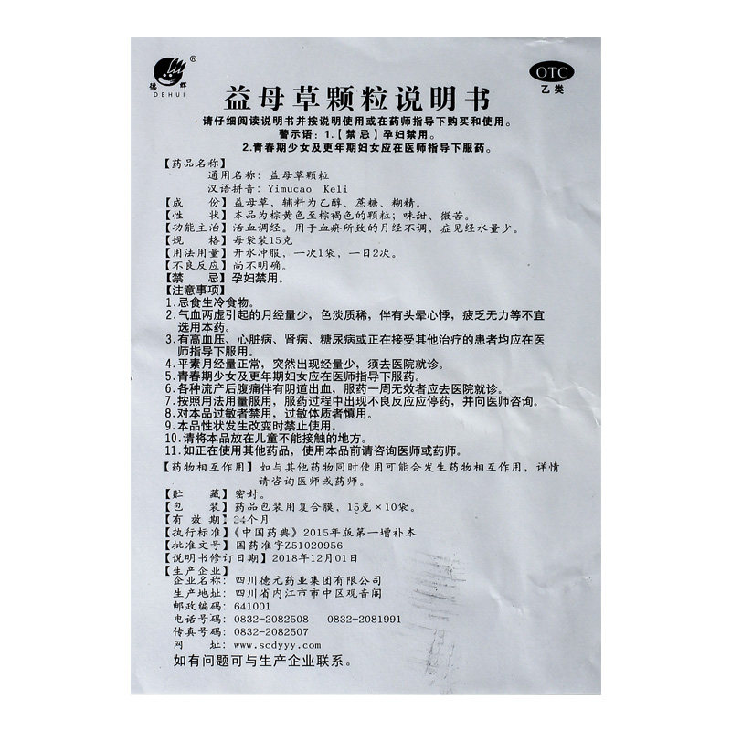 德辉 Гранулы Motherwort 15G*10 мешков/ящик для груди вздутие живота и боль Менструальная менструация не корректирует менструальную боль в крови.