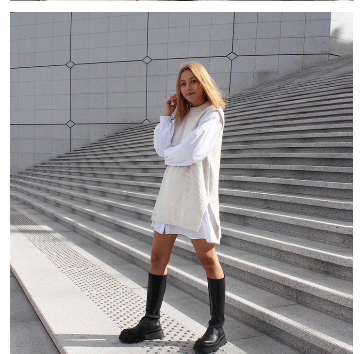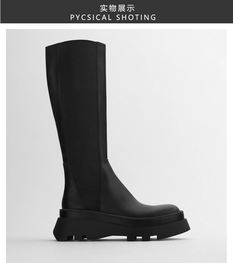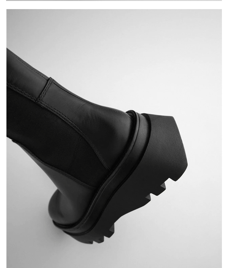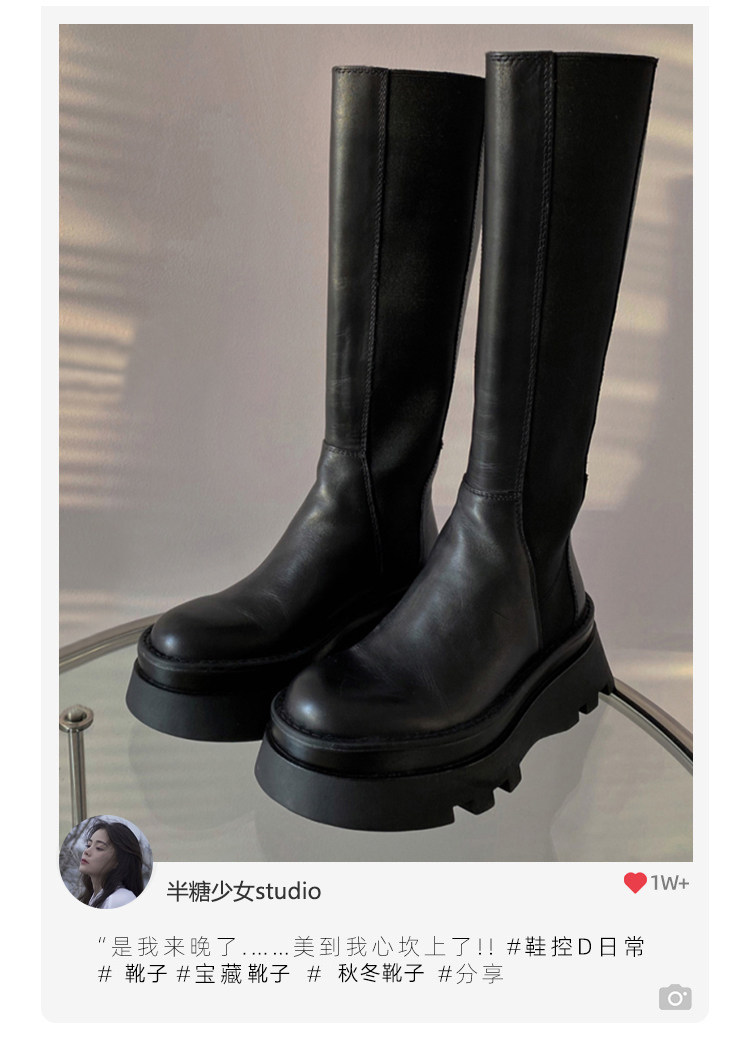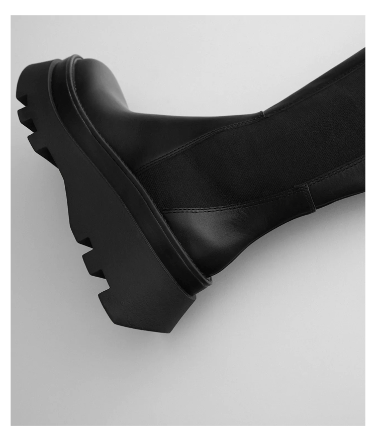 Демисезонные высокие сапоги на платформе в английском стиле, черные ботинки, подходит для подростков, из натуральной кожи