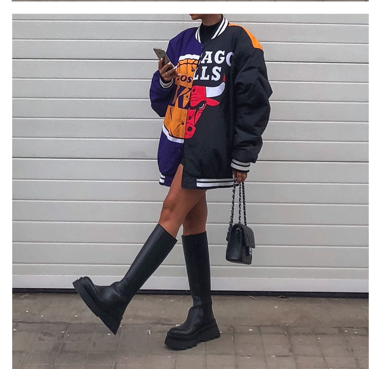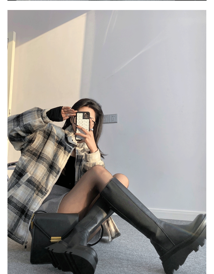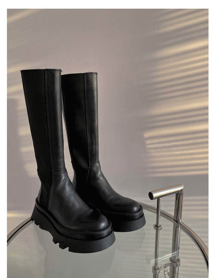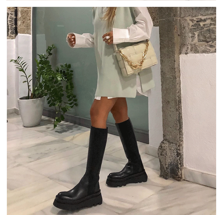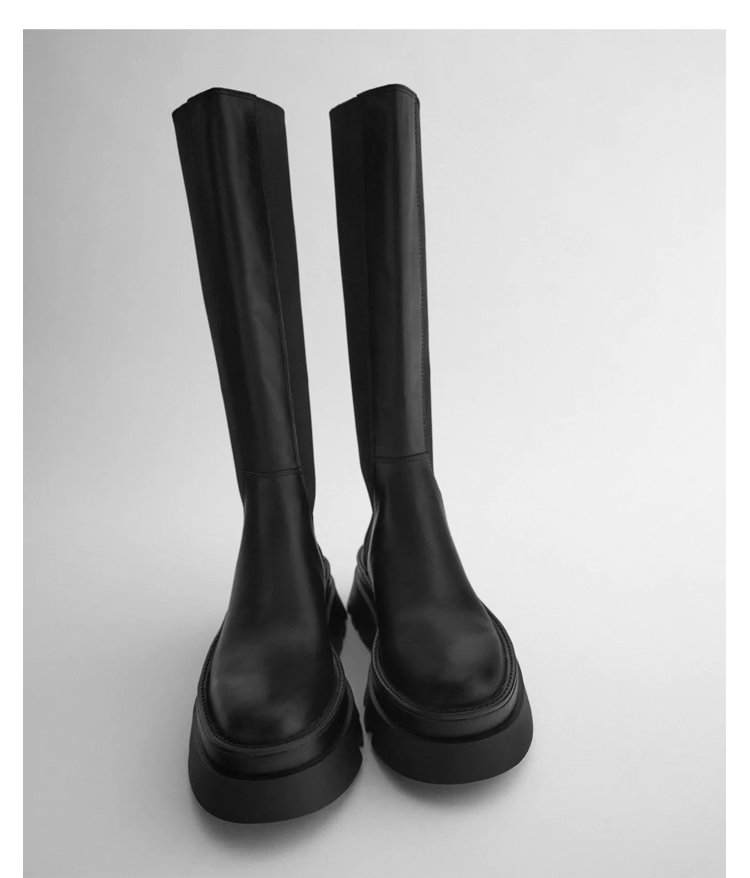 Демисезонные высокие сапоги на платформе в английском стиле, черные ботинки, подходит для подростков, из натуральной кожи