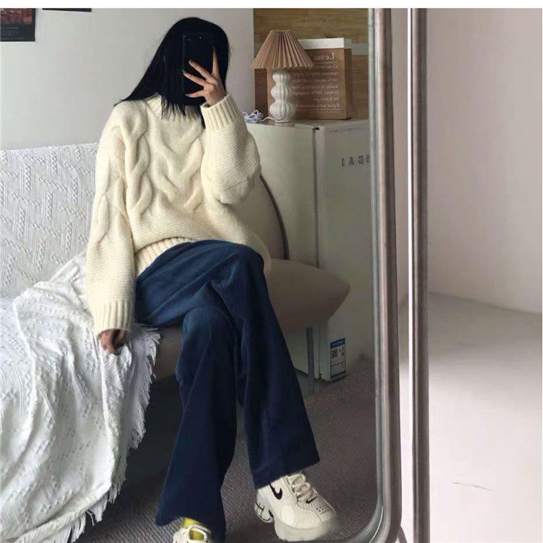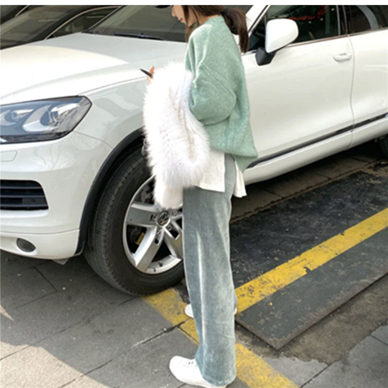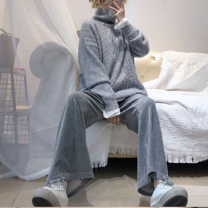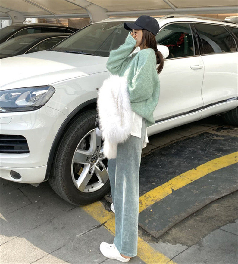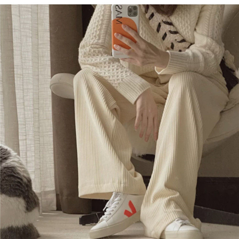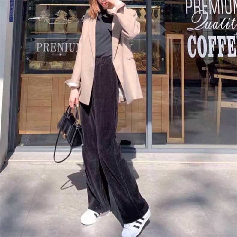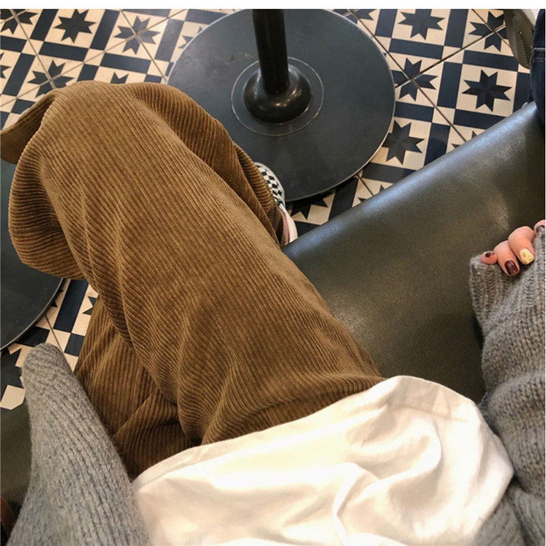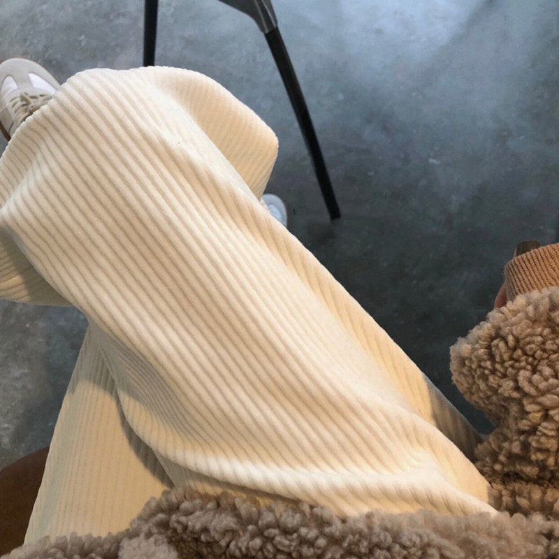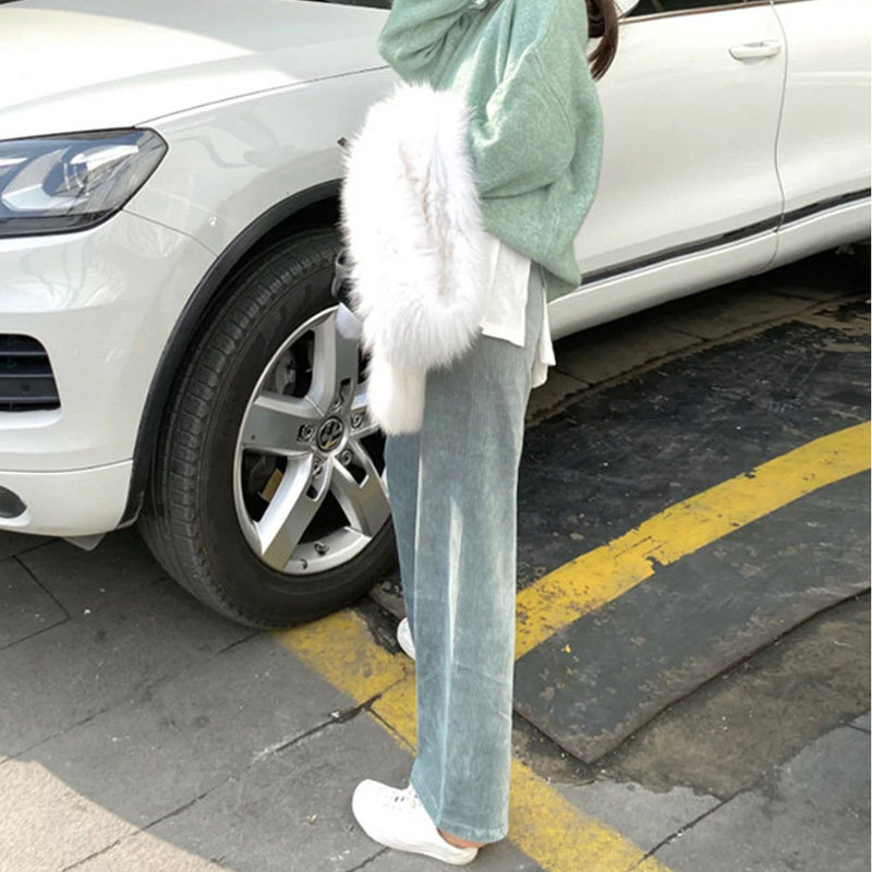 Осенние вельветовые штаны для отдыха, высокая талия, свободный прямой крой, в корейском стиле