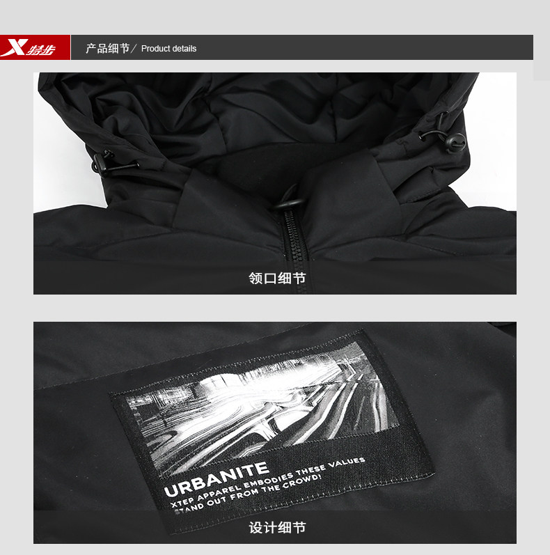 Xtep, пуховик, демисезонная утепленная спортивная куртка с капюшоном для отдыха, 2020