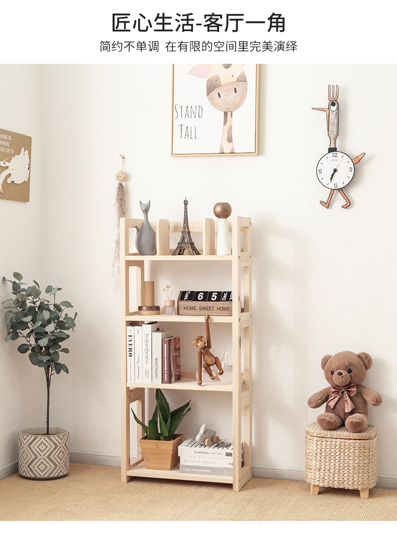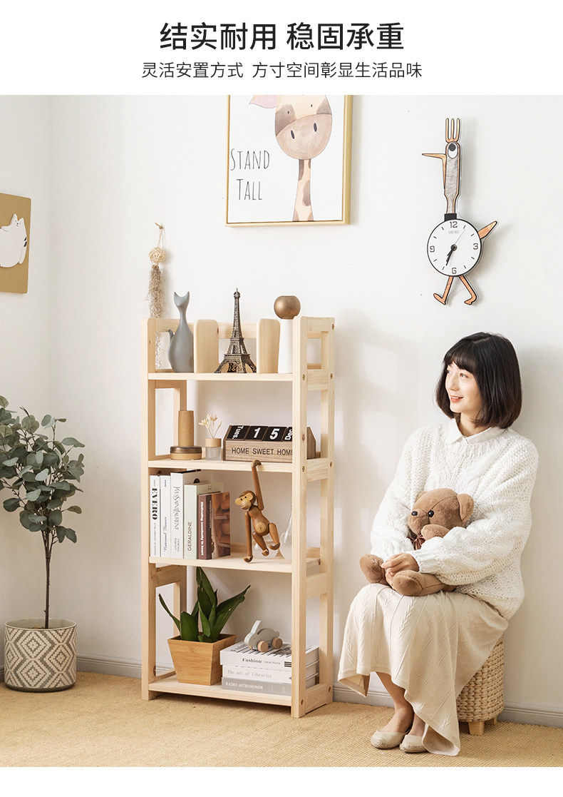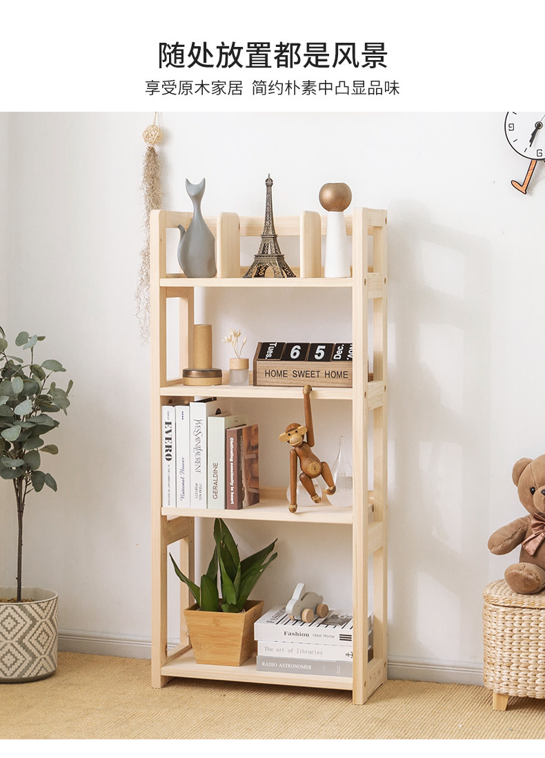 Книжная полка из натурального дерева, простой многослойный книжный шкаф