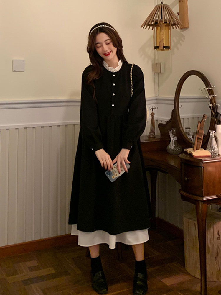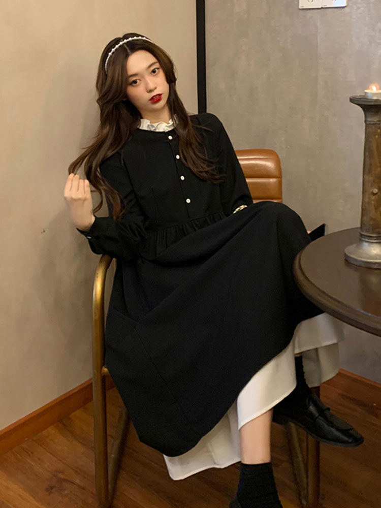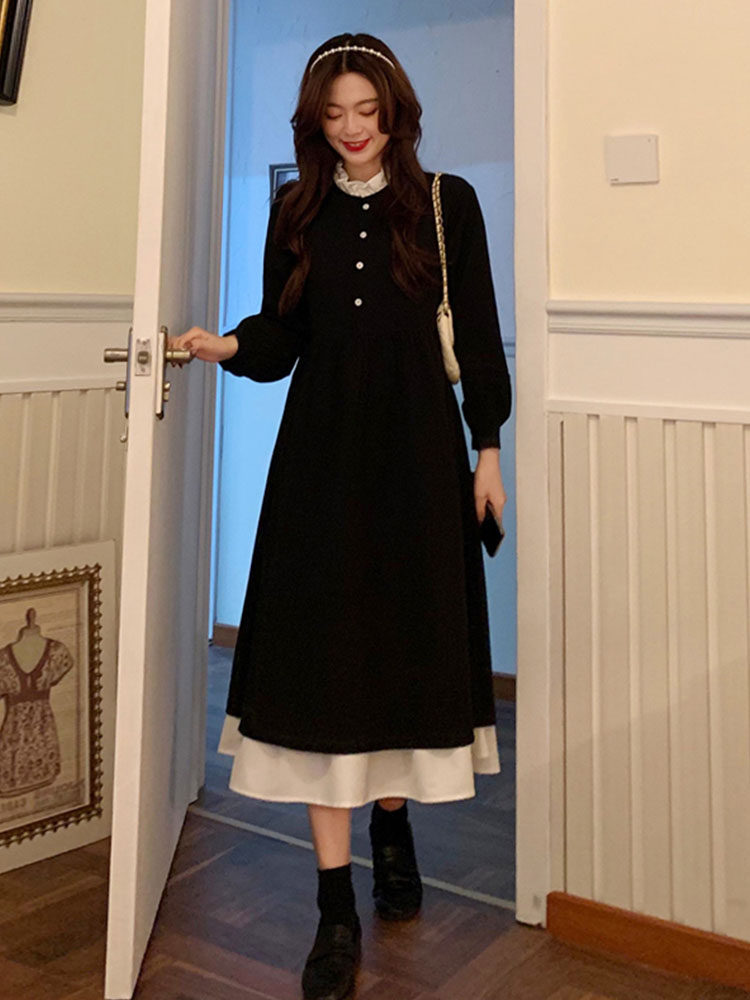 Осеннее платье, длинная юбка, коллекция 2022, подходит для подростков, французский стиль, изысканный стиль