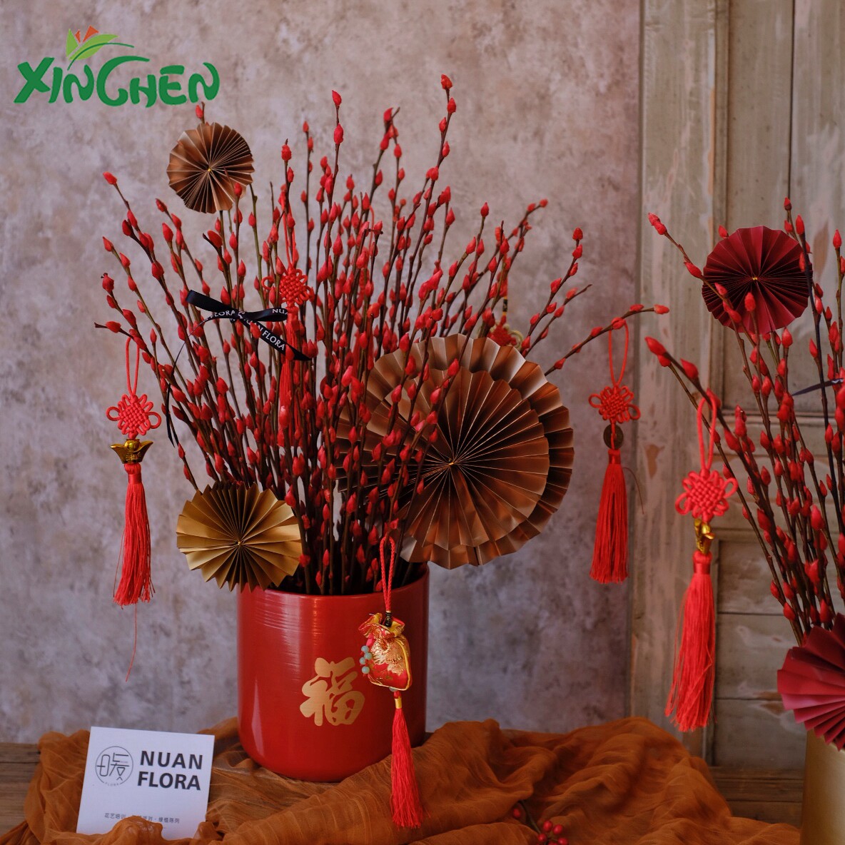 Xinchen 2020 Металлический Железный Цветочный Горшок Новогодняя Серебряная Цветочная Композиция Ивы Благословение Ведро Новогодний Цветочный Подарок Большой Красный Новогодний Цветочный Подарок