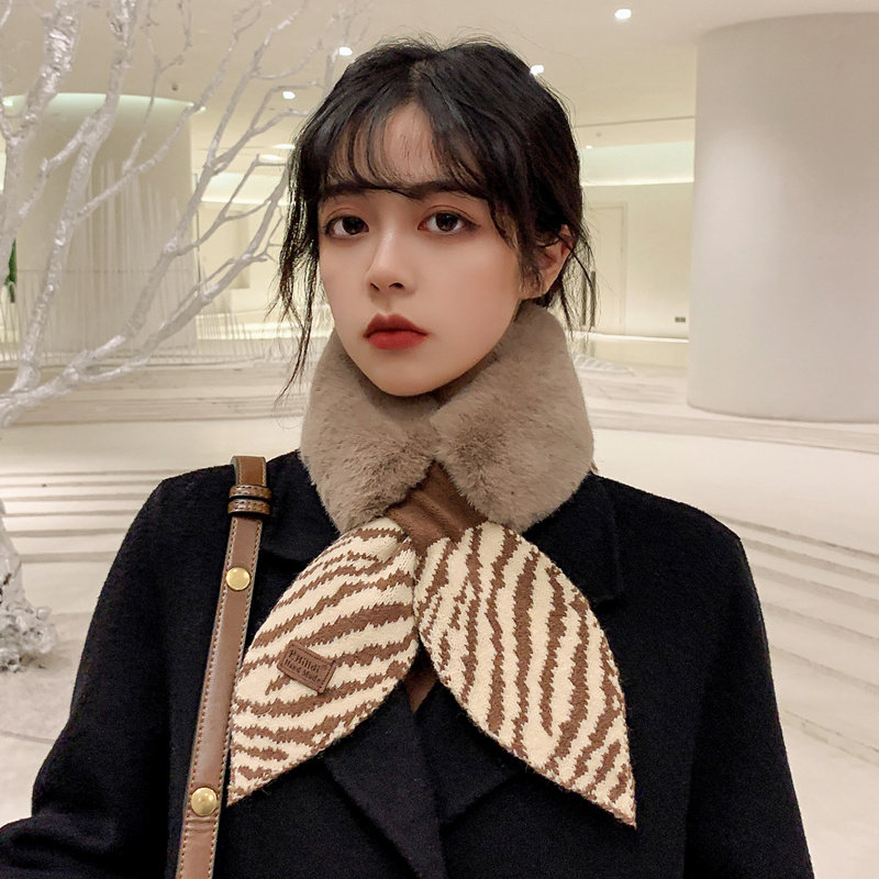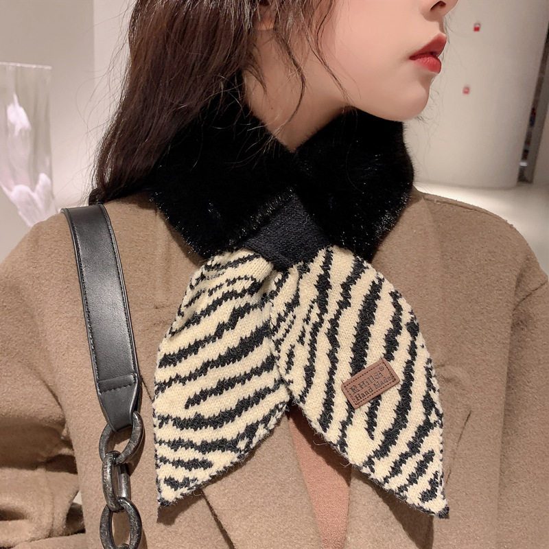 Универсальный удерживающий тепло шарф, плюшевая зимняя зебра, Южная Корея, новая коллекция, в корейском стиле