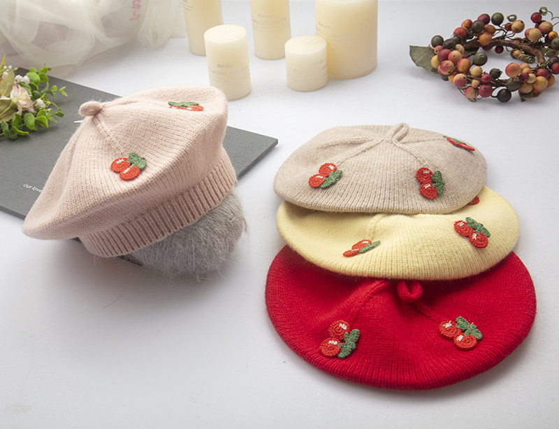 Оригинальный демисезонный милый модный берет для девочек, детская трикотажная клубника, 2023
