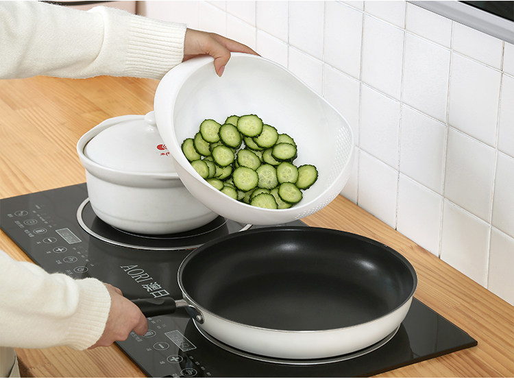 Многофункциональный дом, рисовая посуда, промытое рисовое сито, промыть пластиковый кухонный слив, голубая вода с фруктами с утолщенным рисовым рисовым артефактом
