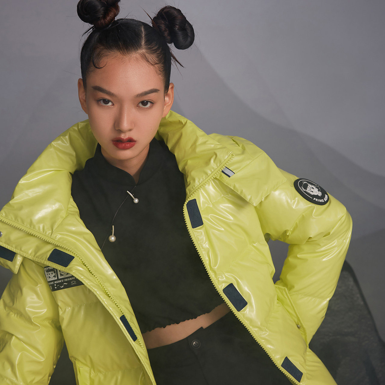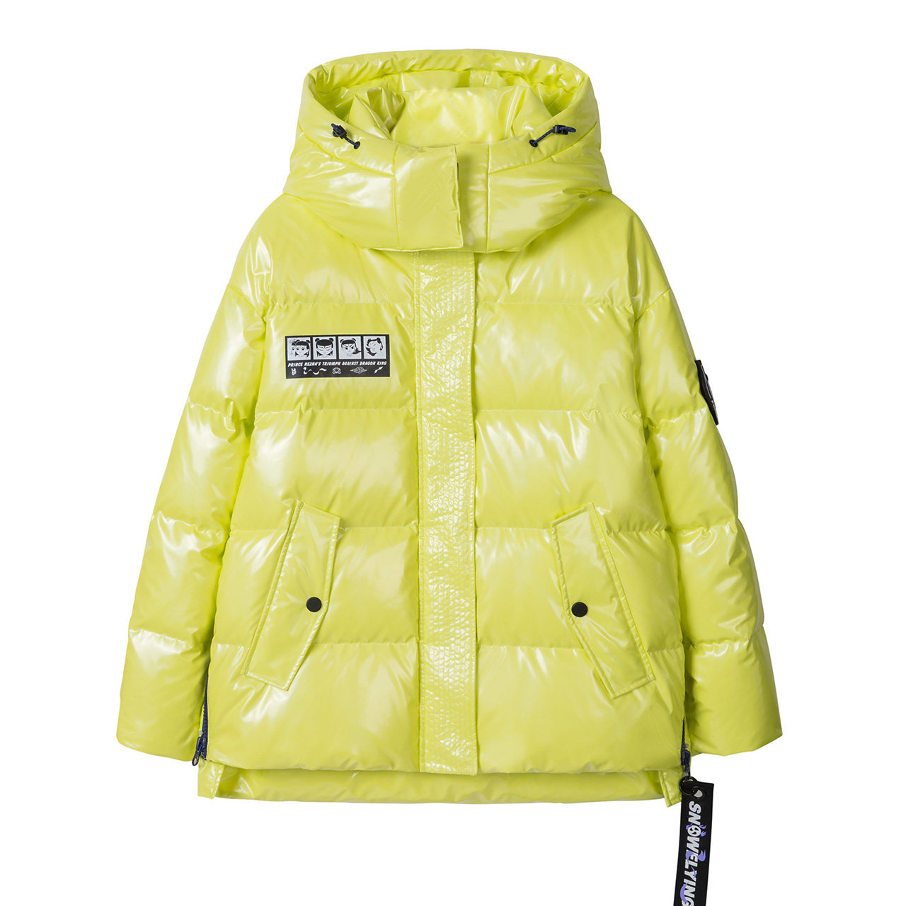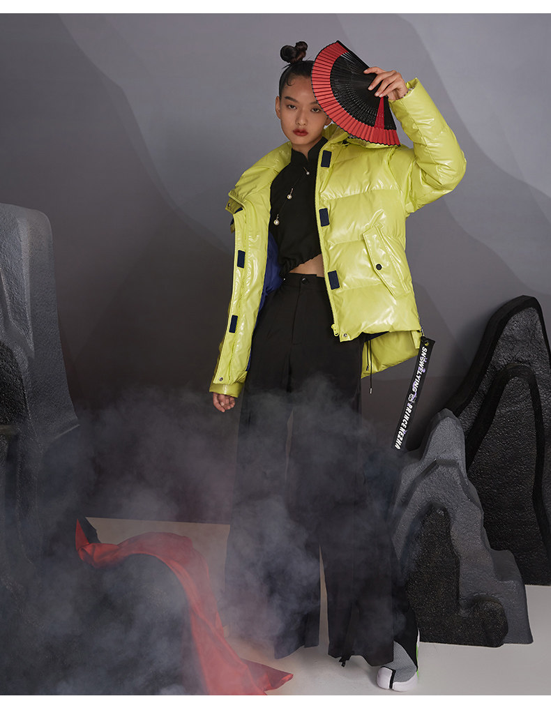 Демисезонный глянцевый короткий дизайнерский пуховик, куртка, коллекция 2021, материал