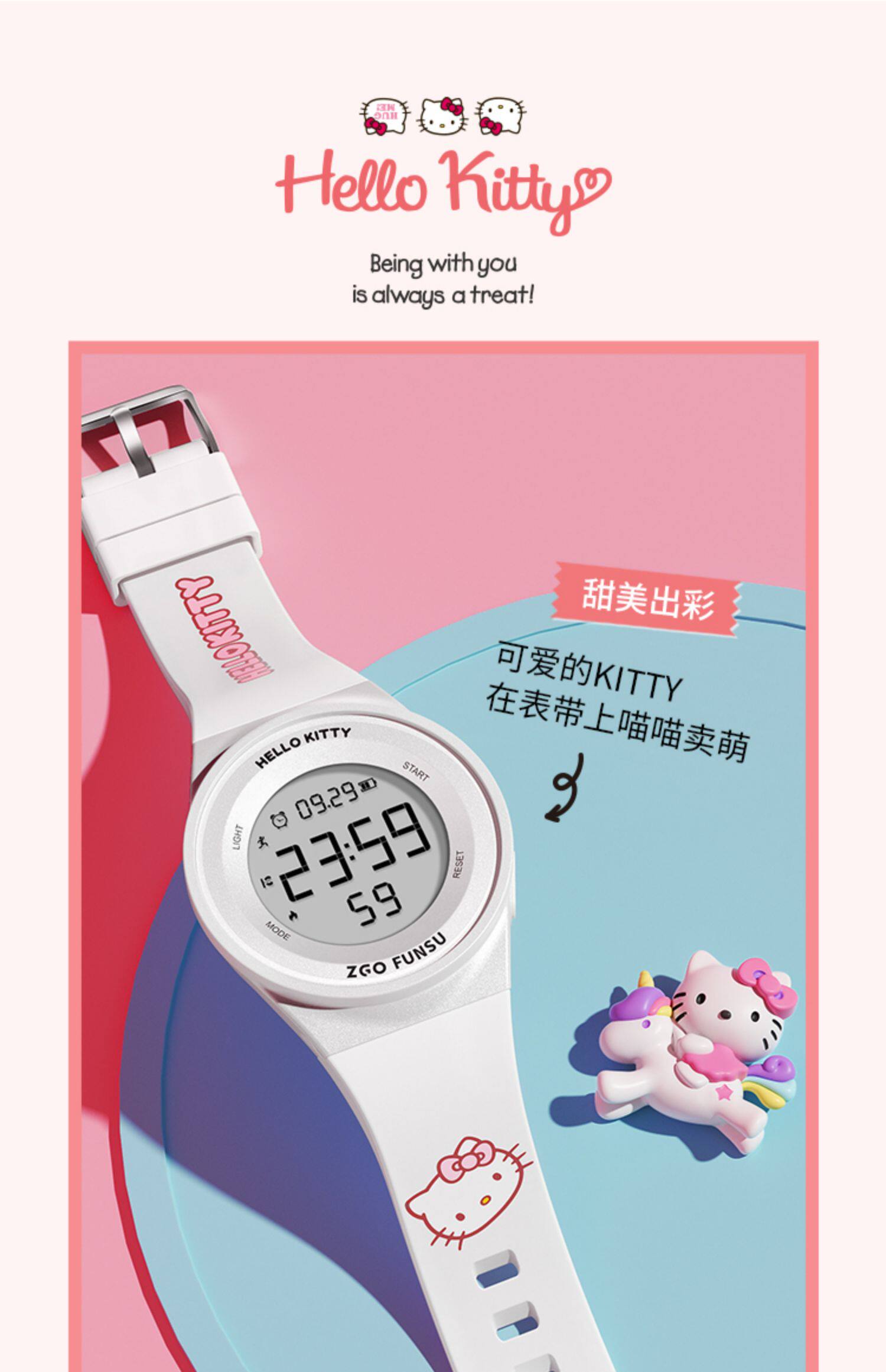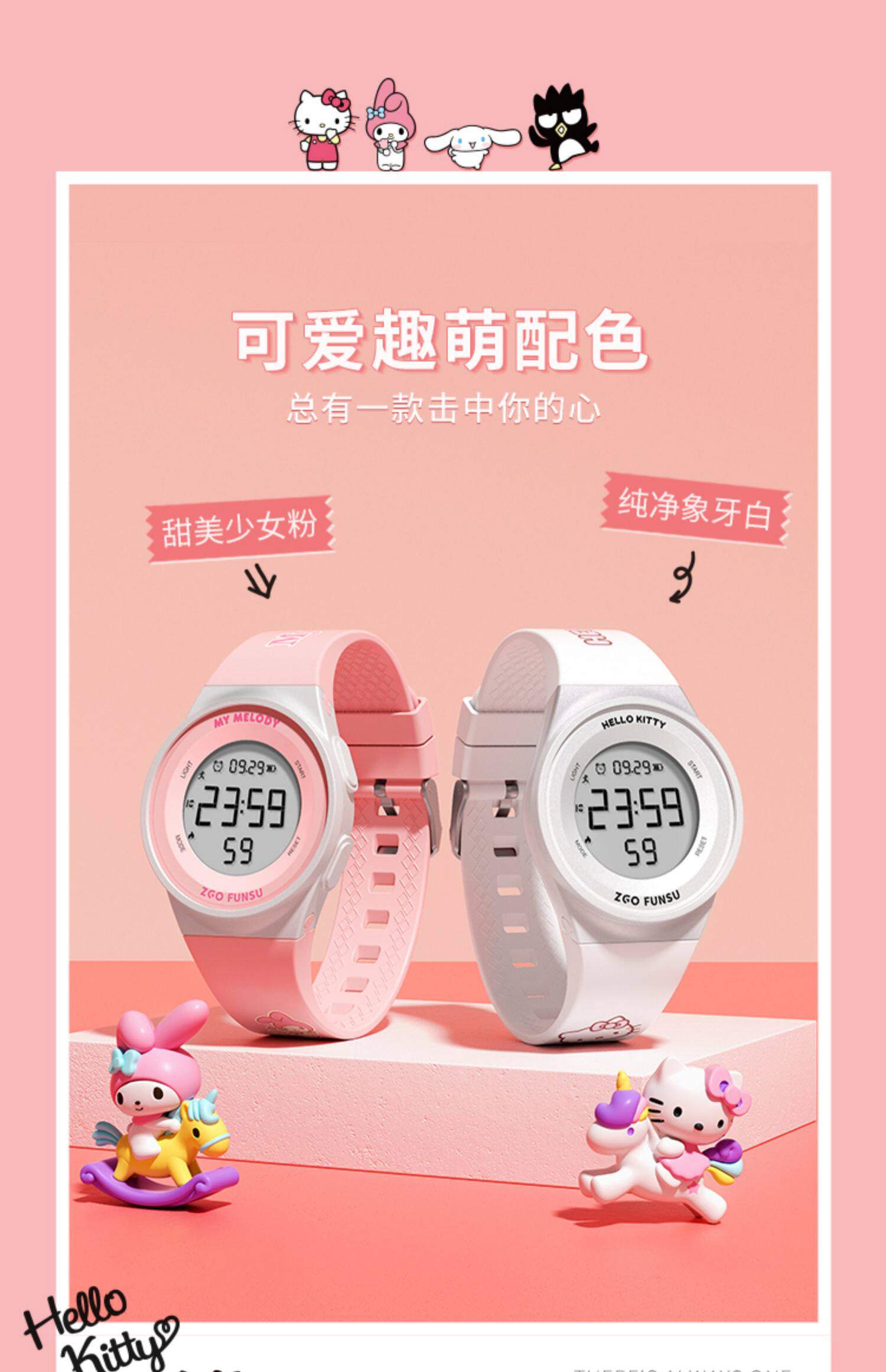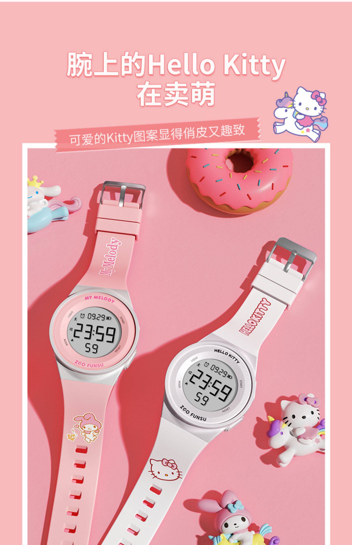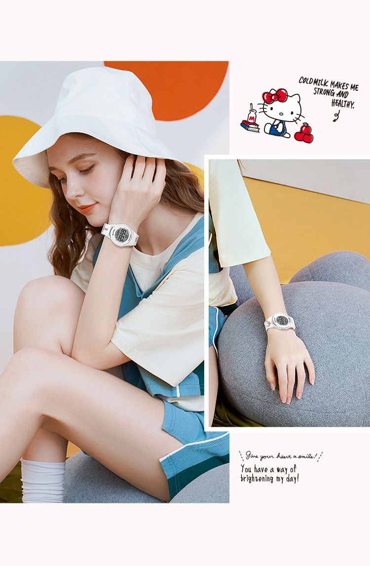 正港 Hello Kitty, водонепроницаемый детский мультяшный универсальный браслет, цифровые часы, простой и элегантный дизайн