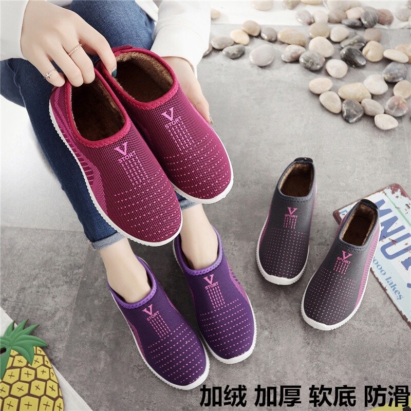 Анти -скользящие и бархатные, пронзительные женские туфли для женской туфли с мягкой дном мягкие дно женские туфли зима теплые хлопковые туфли пожилая материнская обувь