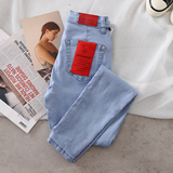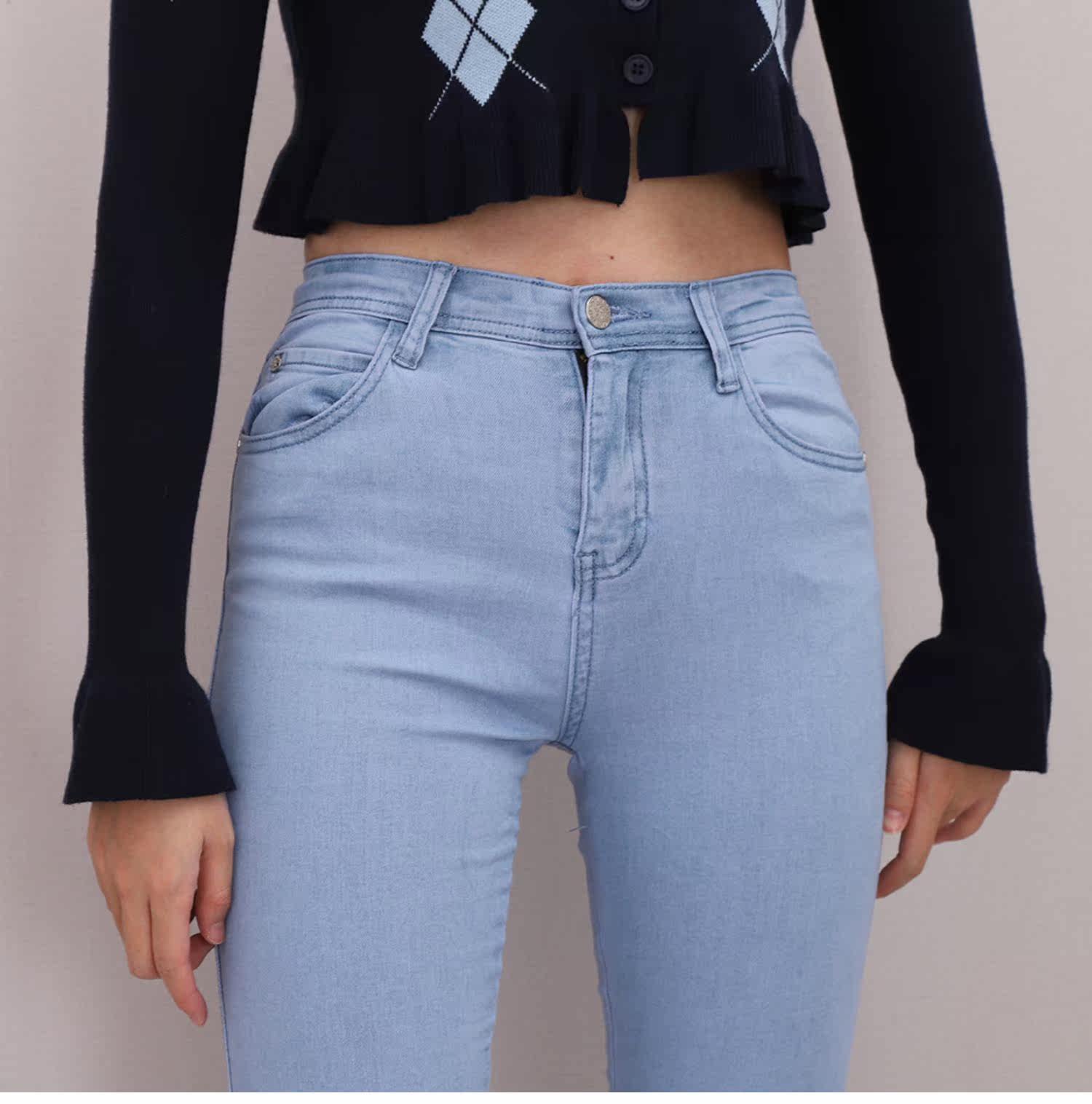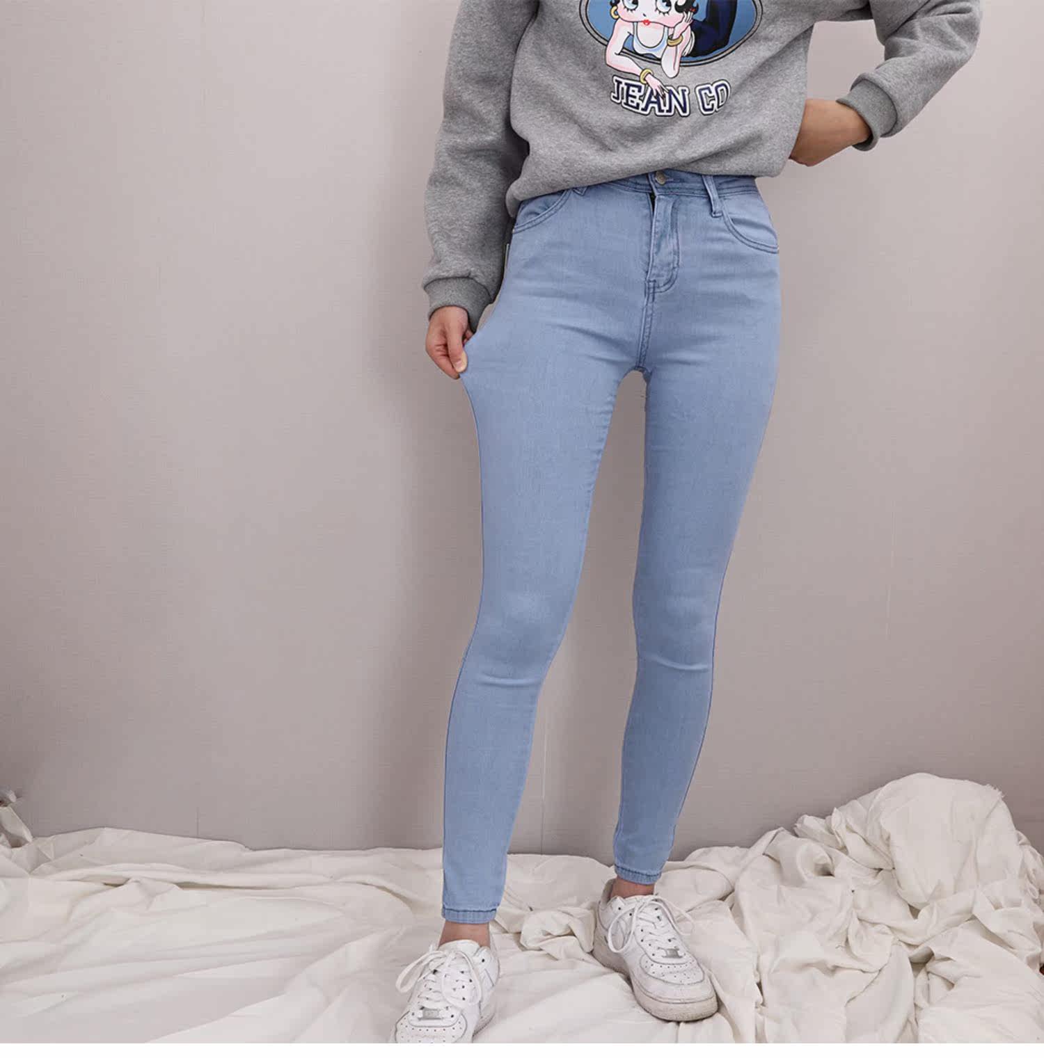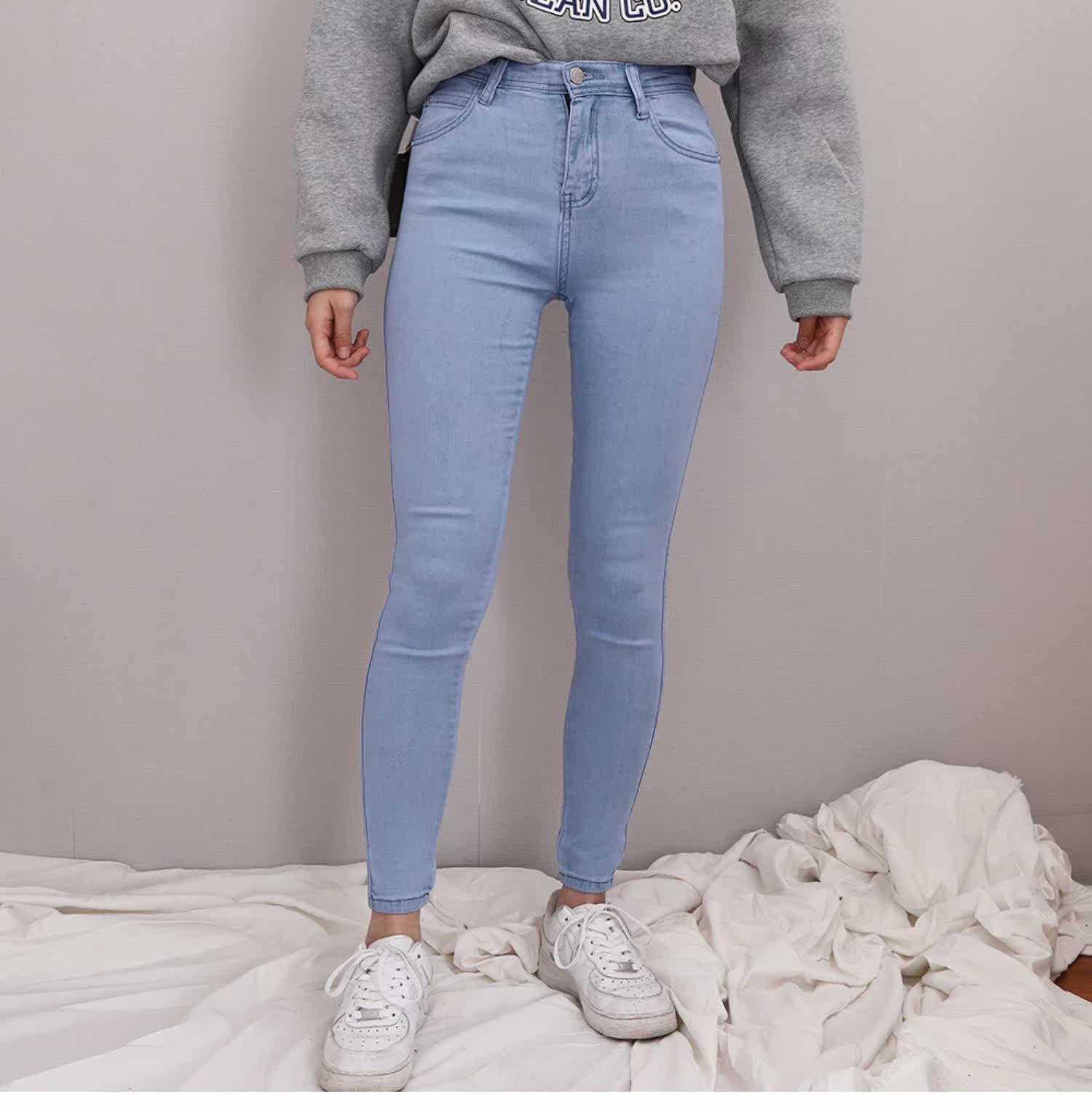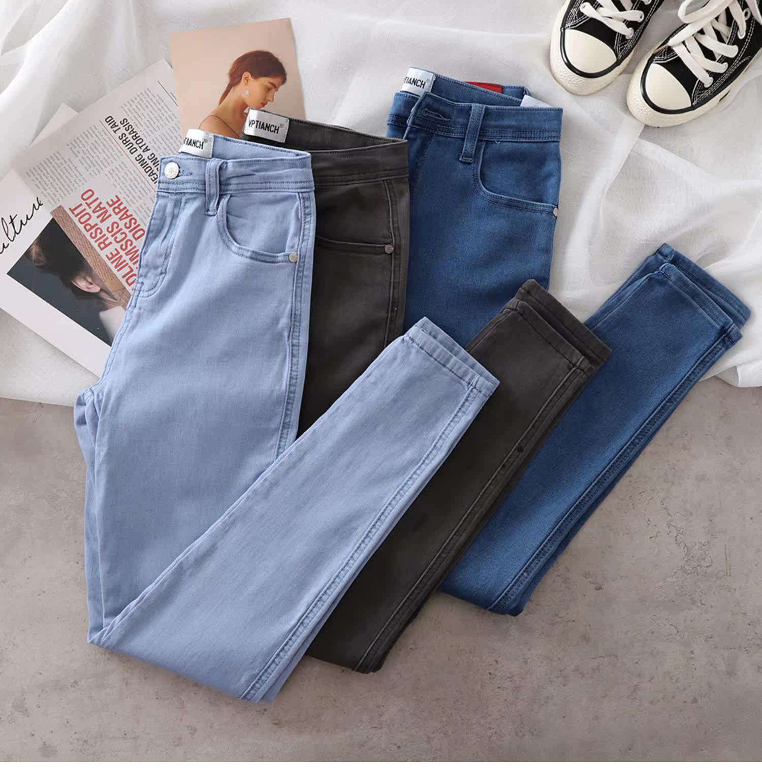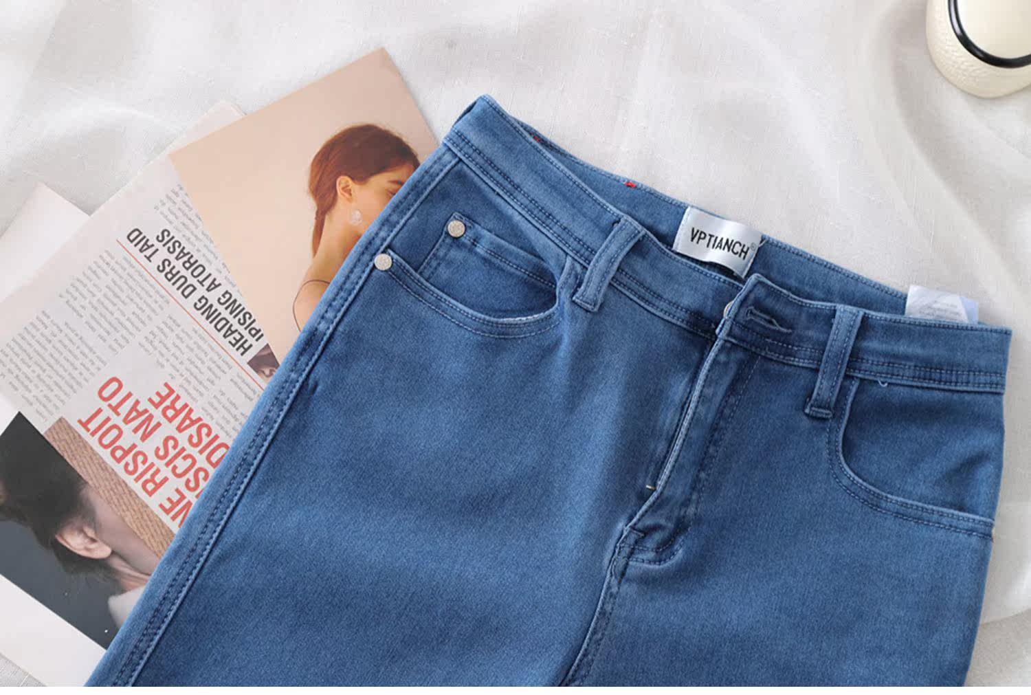Эластичные джинсы, приталенные базовые джинсовые штаны, высокая талия, большой размер, в обтяжку, с акцентом на бедрах