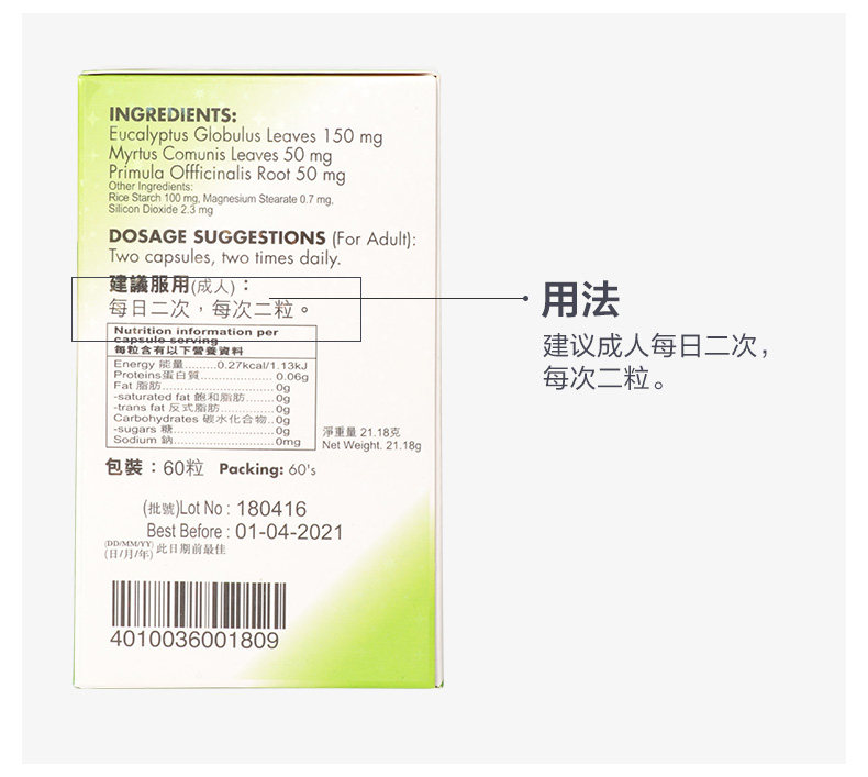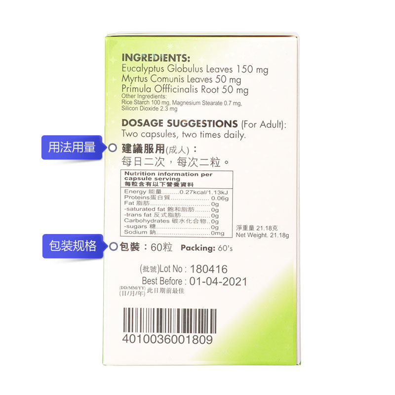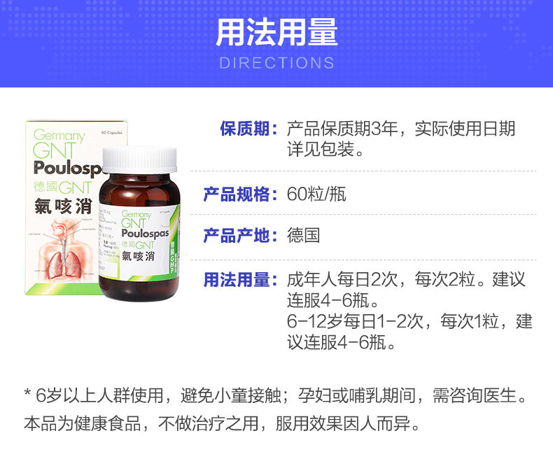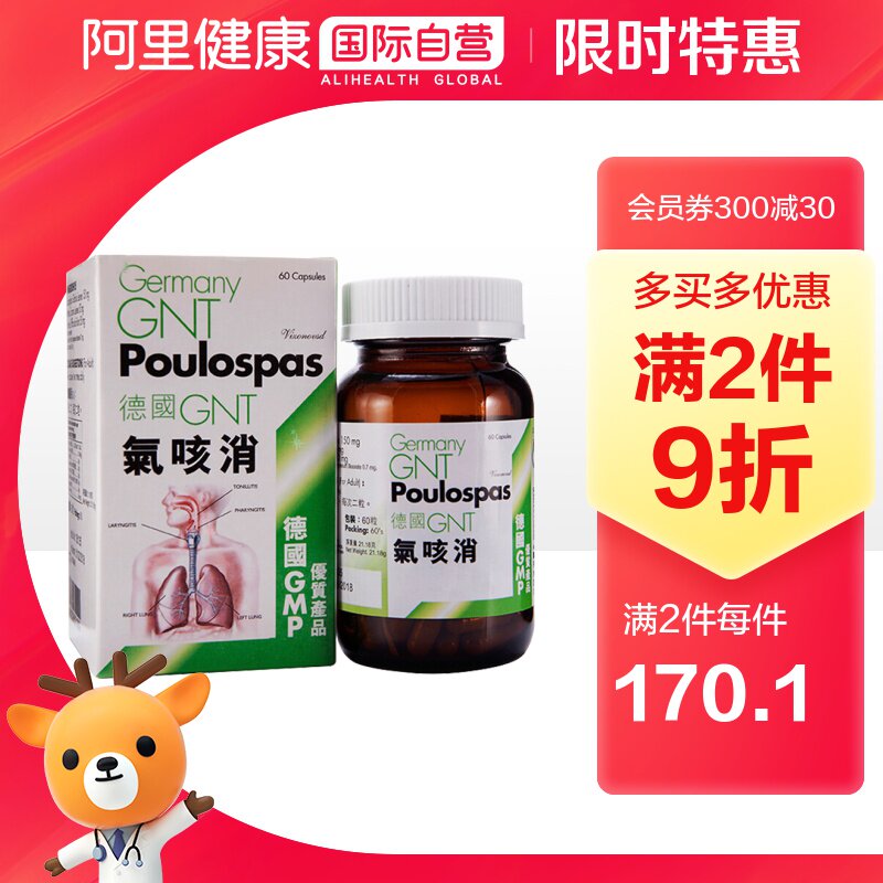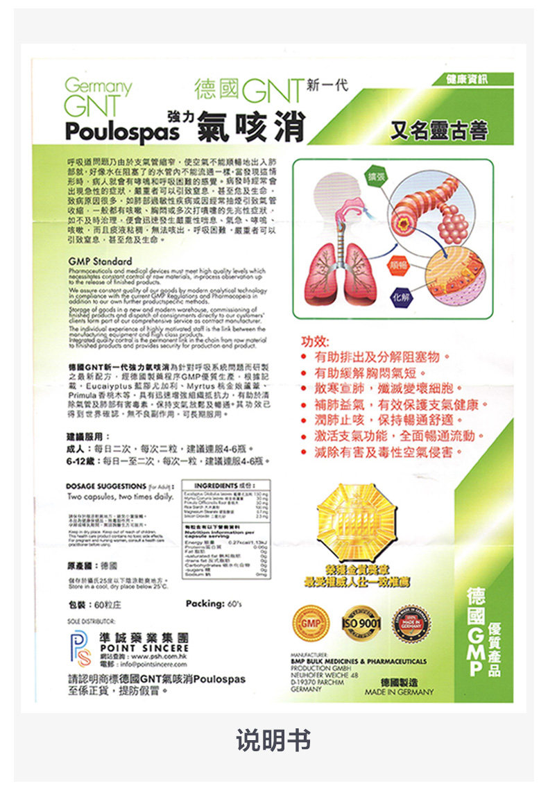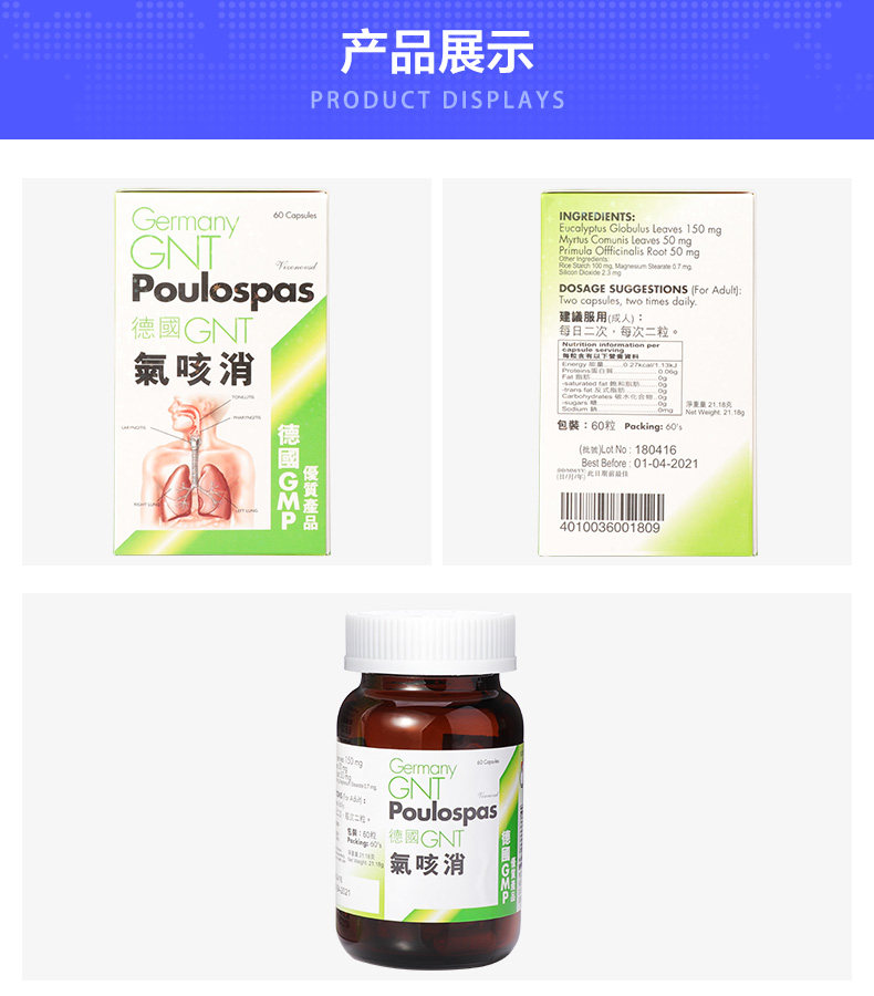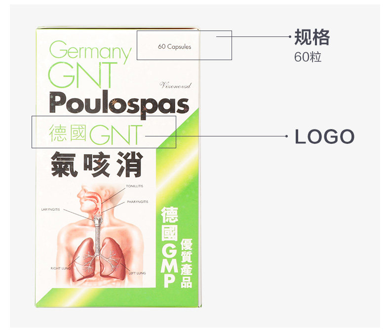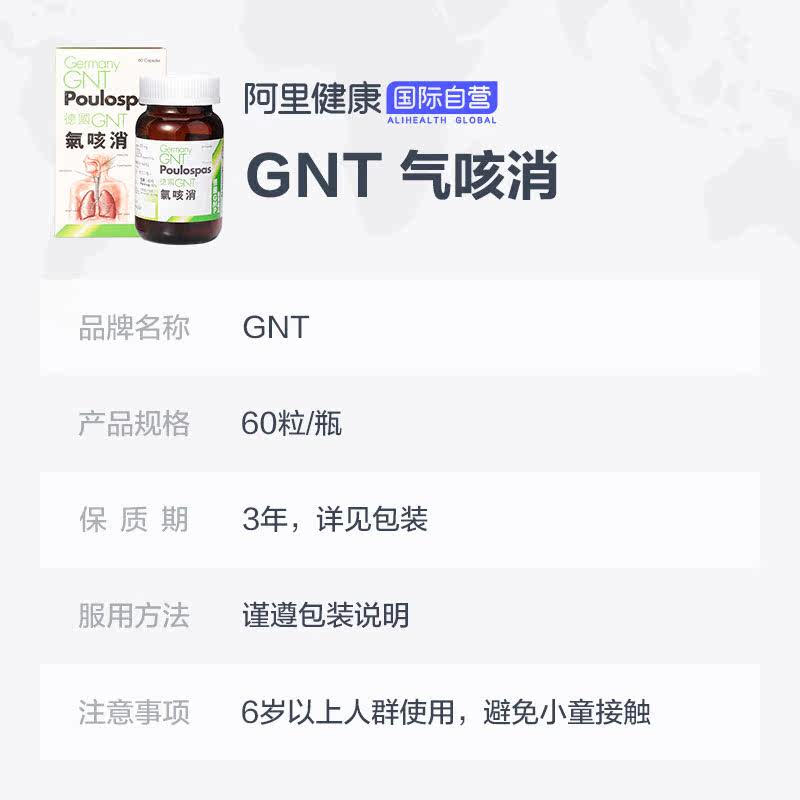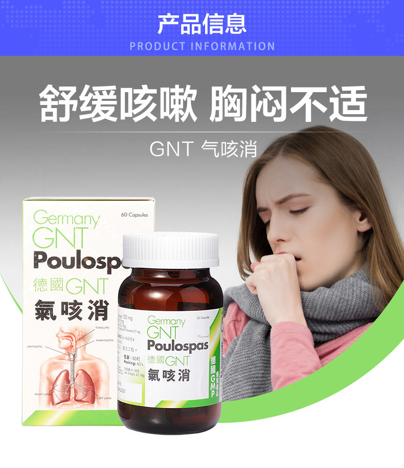 Германия GNT Газовый кашель Элиминация 60 капсул/коробку Оригинальный подлинный питательный релаксационный бронхиальный бронхиальный бронхиальный кашель питает легкие