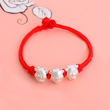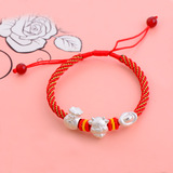 Плетеный браслет из красной нити ручной работы, аксессуар, аксессуары, серебро 999 пробы, жемчужное серебро, DIY